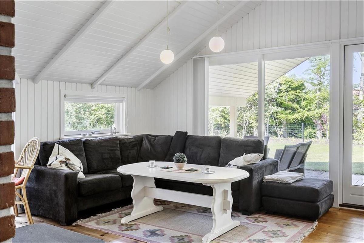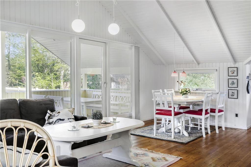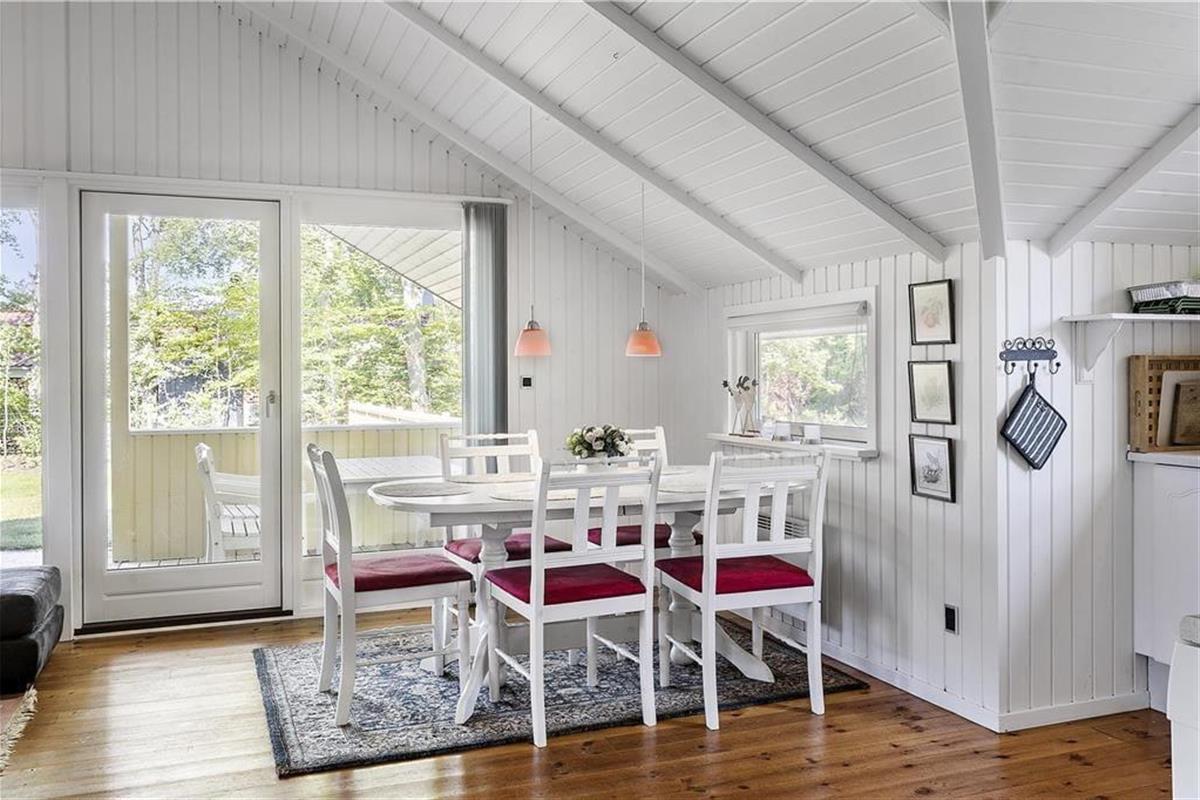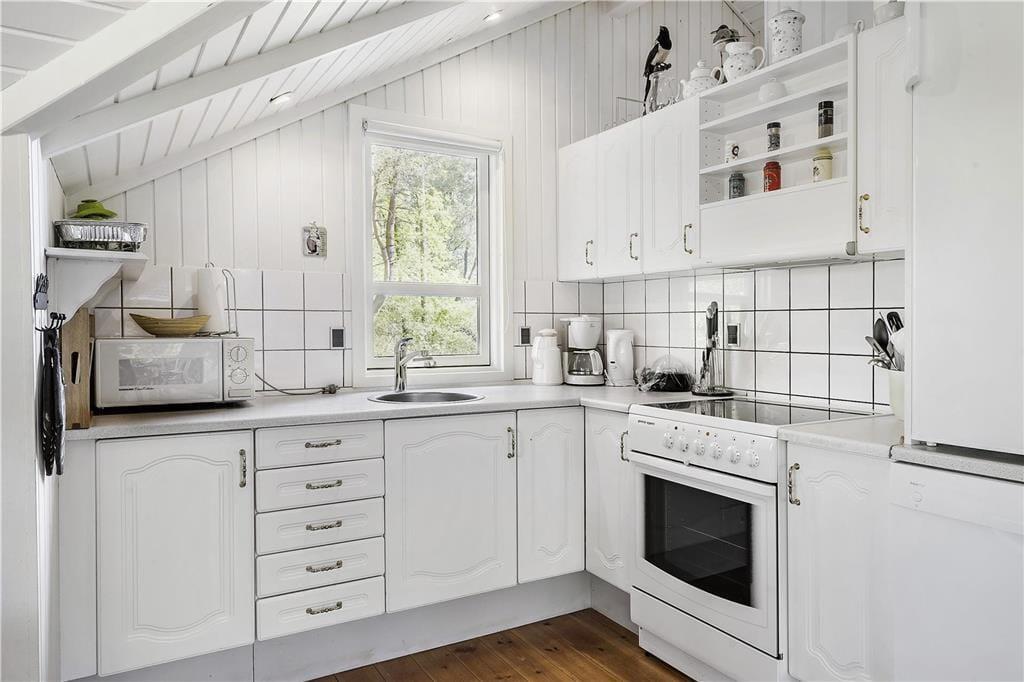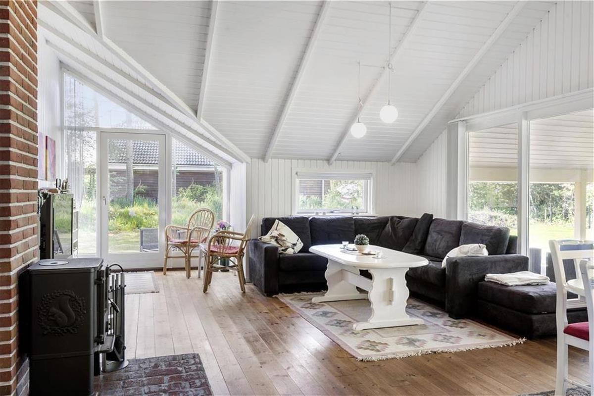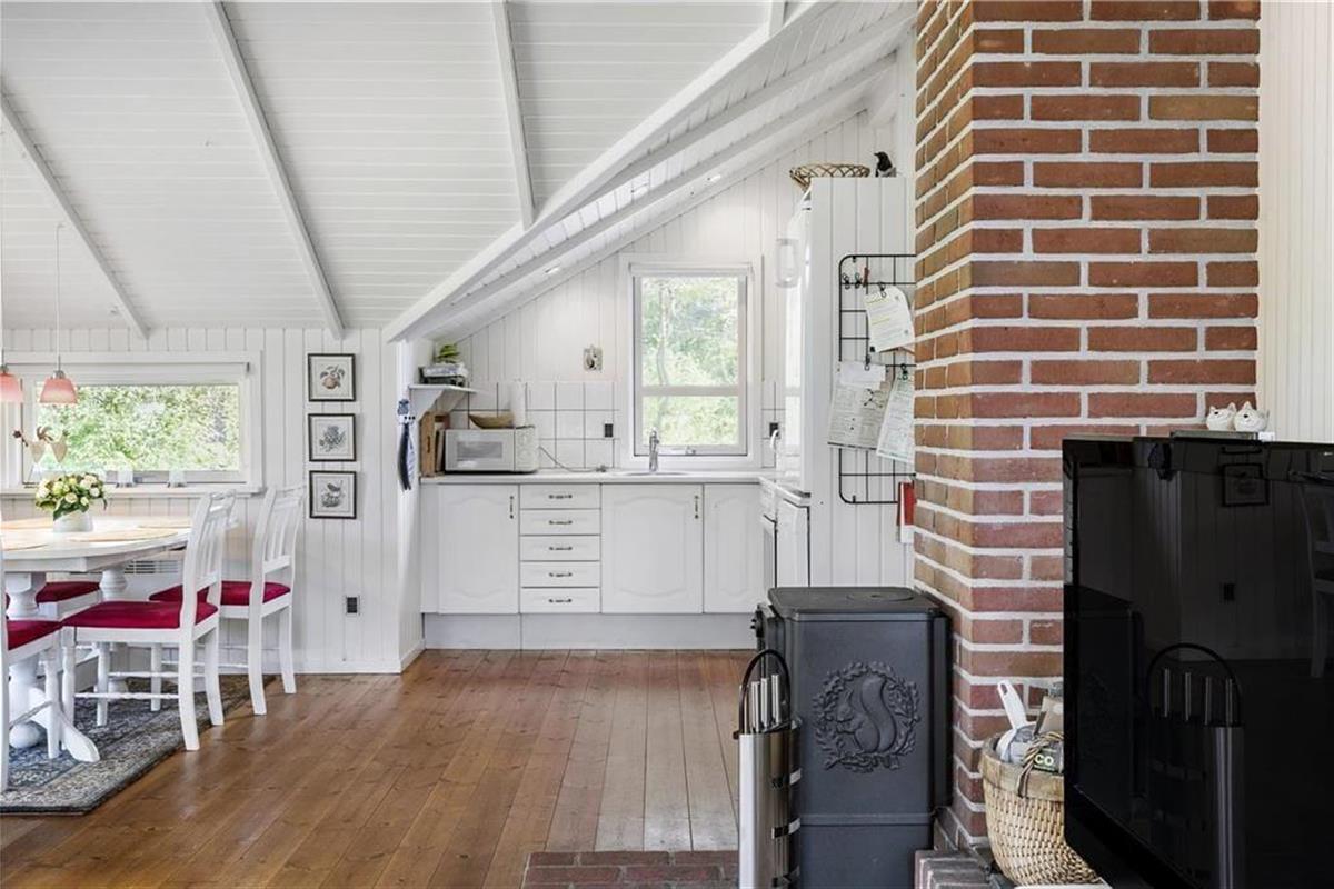 Dieses helle und charmante Ferienhaus aus Holz bietet dir die Möglichkeit drinnen und draußen gemütliche Stunden zu verbringen. Das gut eingerichtete Haus verfügt über einen Aufenthaltsraum mit einer offen integrierten Küche und einem Kaminofen. Hier könnt ihr Spiele spielen, einen guten Film schauen oder einfach nur entspannen. Das Haus hat hohe und helle Decken, die eine offene und luftige Atmosphäre schaffen. Die kleine, aber einladende und helle Küche lädt zum Kochen ein. Dank der großen Fenster zu den Terrassen fühlt es sich an, als wäret ihr mitten in der Natur.