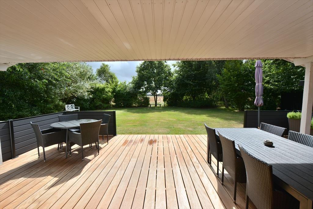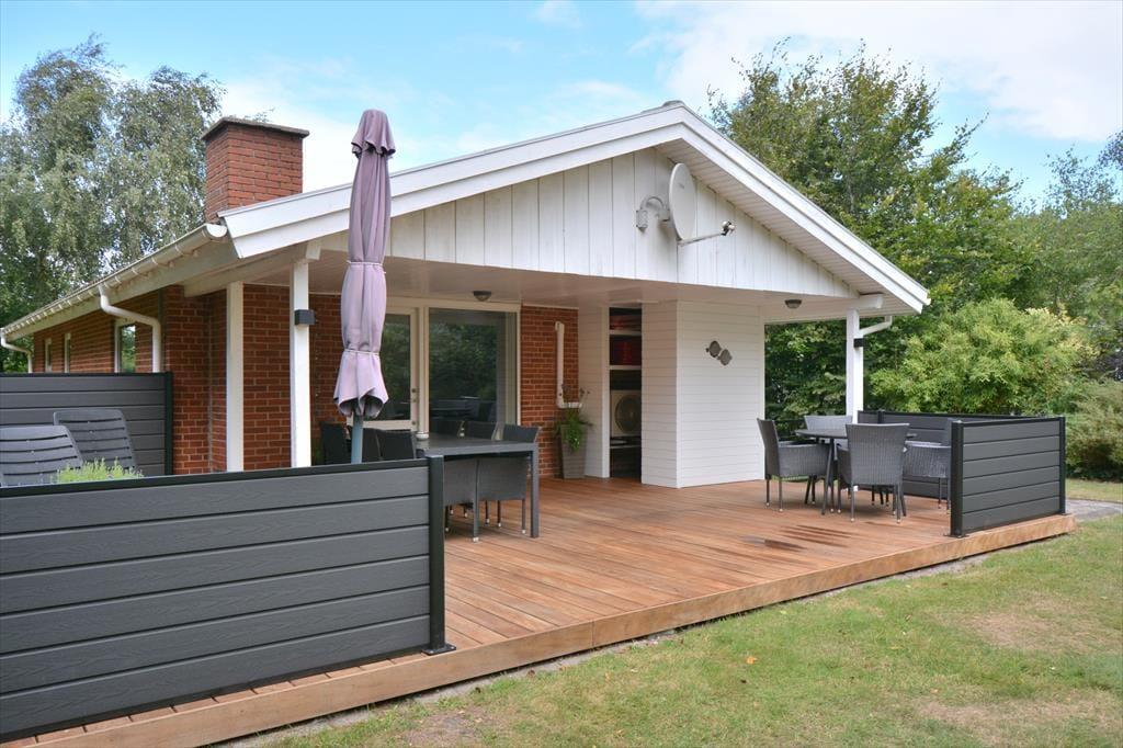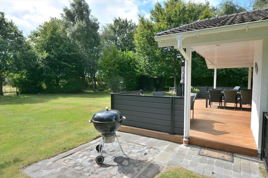 Nimm die Urlaubsstimmung mit auf die Terrasse, wo ihr nicht nur an einem schönen Sommertag, sondern auch bei Regen und Wind sitzen könnt. Zündet den Grill an und nehmt die gute Stimmung mit hinaus, wo während der Essenszubereitung alle eure Sinne angesprochen werden, während der Duft sich im Garten verbreitet. Das Haus ist umgeben von Natur, die euch die Möglichkeit bietet, in der Sonne oder im (Wind-)Schatten zu finden.