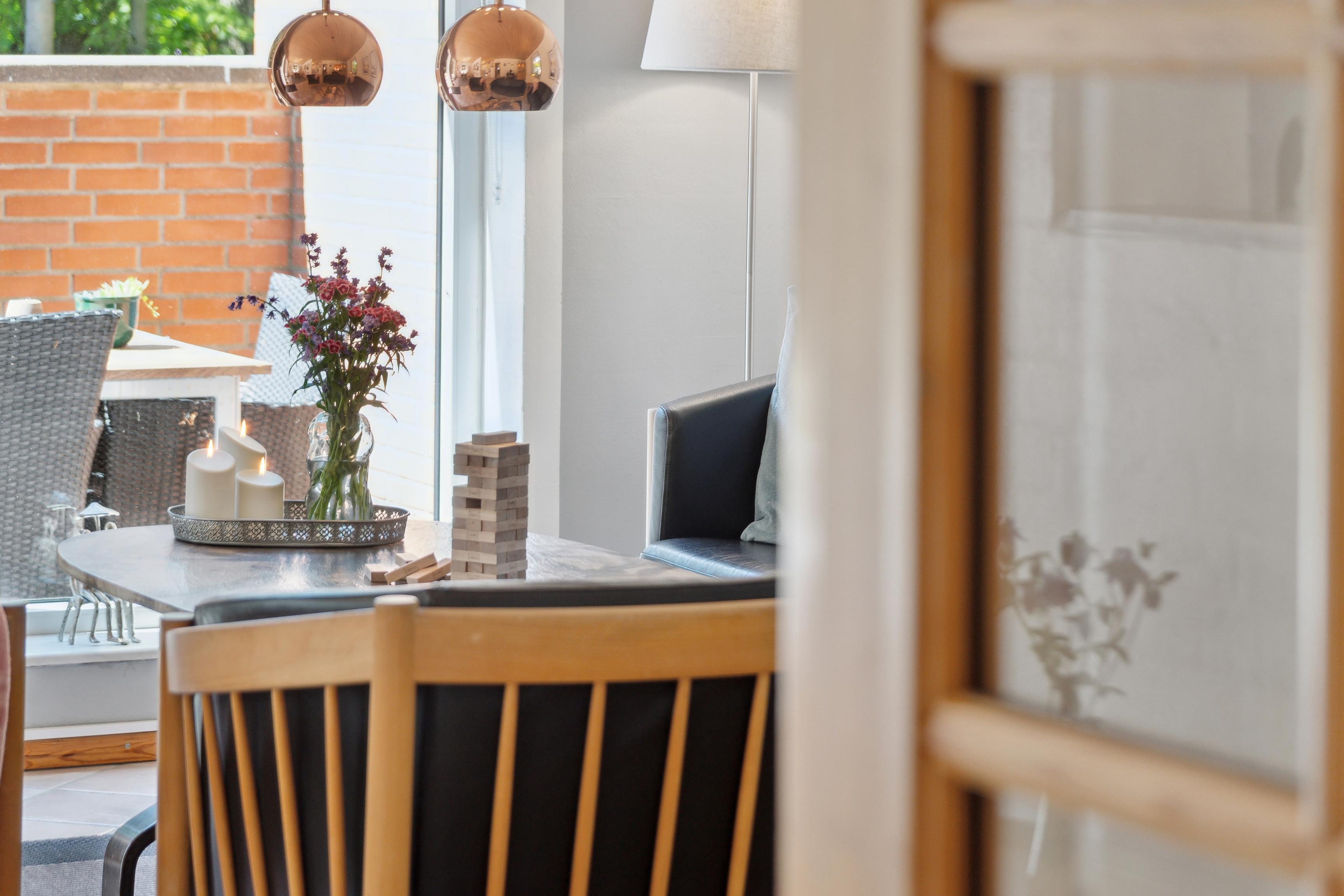 A large table, barbecue and sun loungers are available for you on the beautiful terrace. While you soak up the sun, the children can play in the garden and swing in the sun. Just a short walk from the house is a small harbour in Sandholm, where you can go windsurfing or swimming. The water there is shallow and suitable for small children.