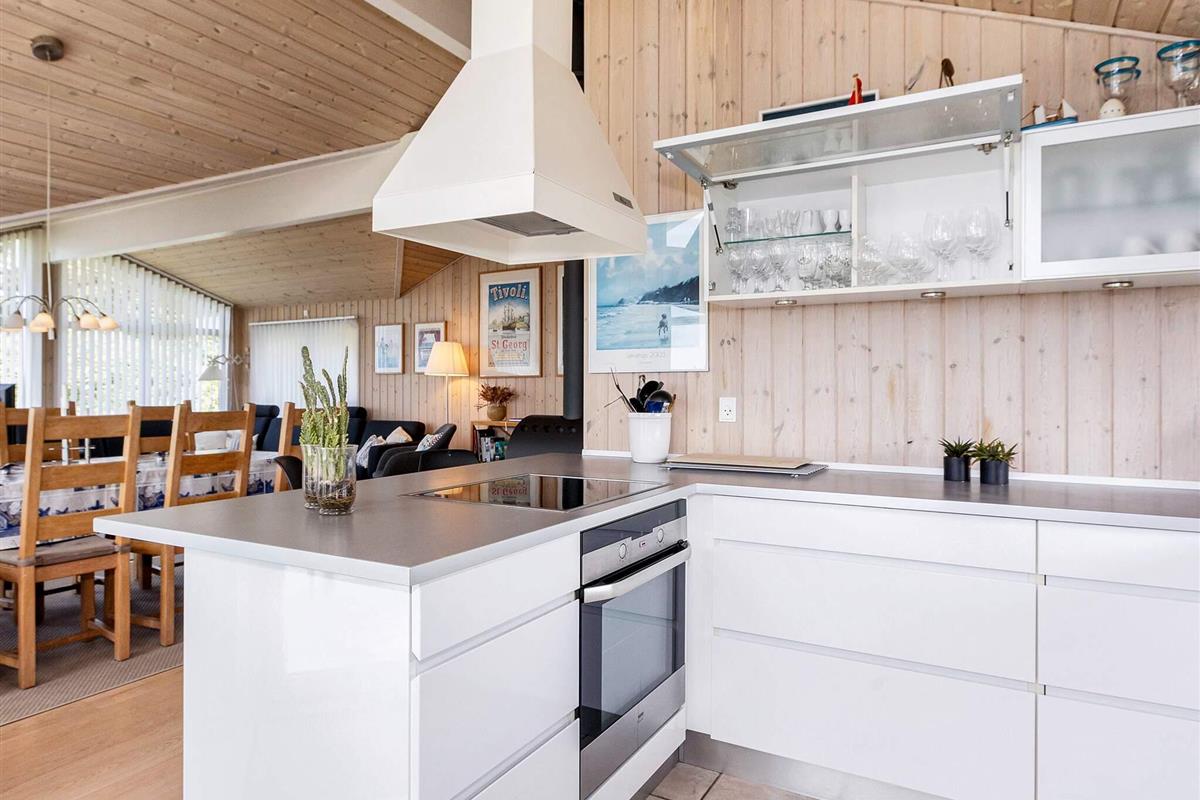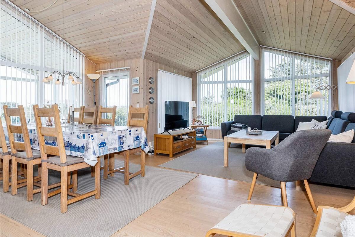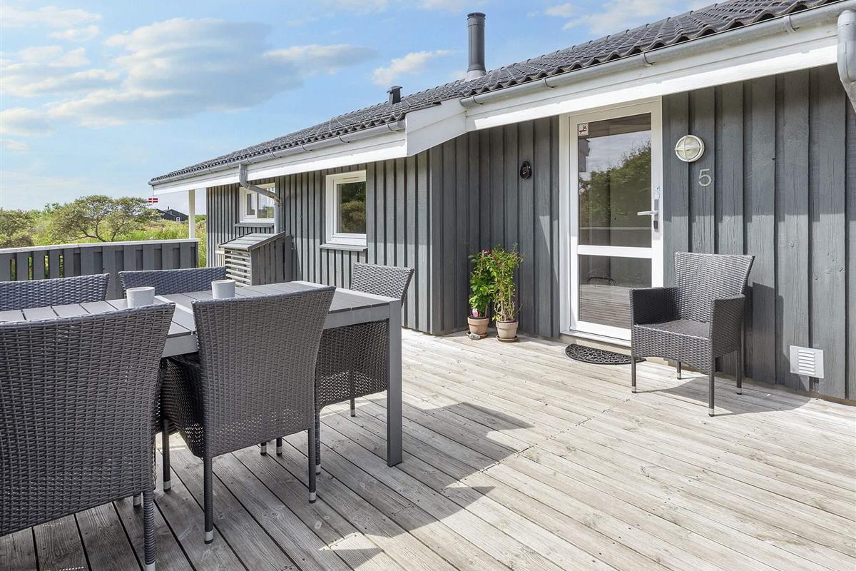Schönes Ferienhaus, das an einem der besten Badestrände Europas liegt. Moderne Einrichtung mit DVD, TV mit Satellitenempfang und heller, moderner und gut ausgestatteter Küche. Genießen Sie den Abend im Wohnzimmer am Holzofen oder entspannen Sie in der Sauna oder im Whirlpool. Eine Holzterrasse führt um das Haus und ein Teil der Terrasse ist überdacht.