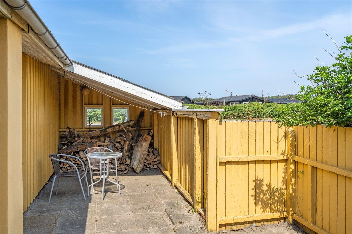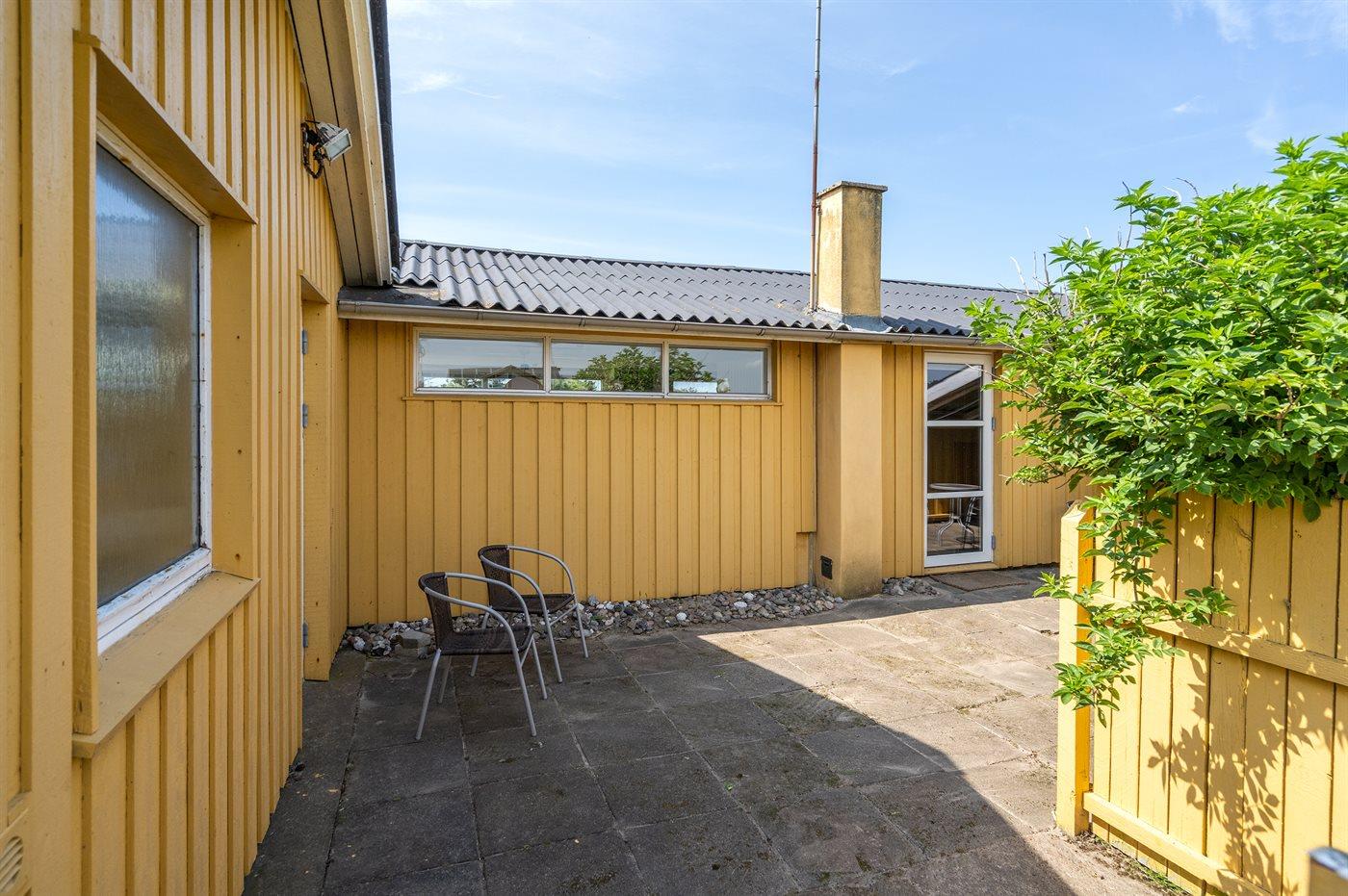 De vakantiewoning is gelegen op een 1300 m² groot natuural grond. Afstand tot de zee 300 m. Dichtstbijzijnde winkel 1500 m. Bij de vakantiewoning hoort 30 m² terras. Daarnaast is er een 12 m² groot overdekt terras. Waarvan in totaal 30 m² beschut terras. Gereedschapsruimte. Schommel. Zandbak. Glijbaan. Barbecue.