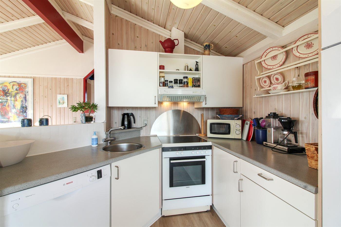 De keuken is uitgerust met koelkast Er is 4 inductiekookplaten, heteluchtoven, magnetron en vaatwasser.