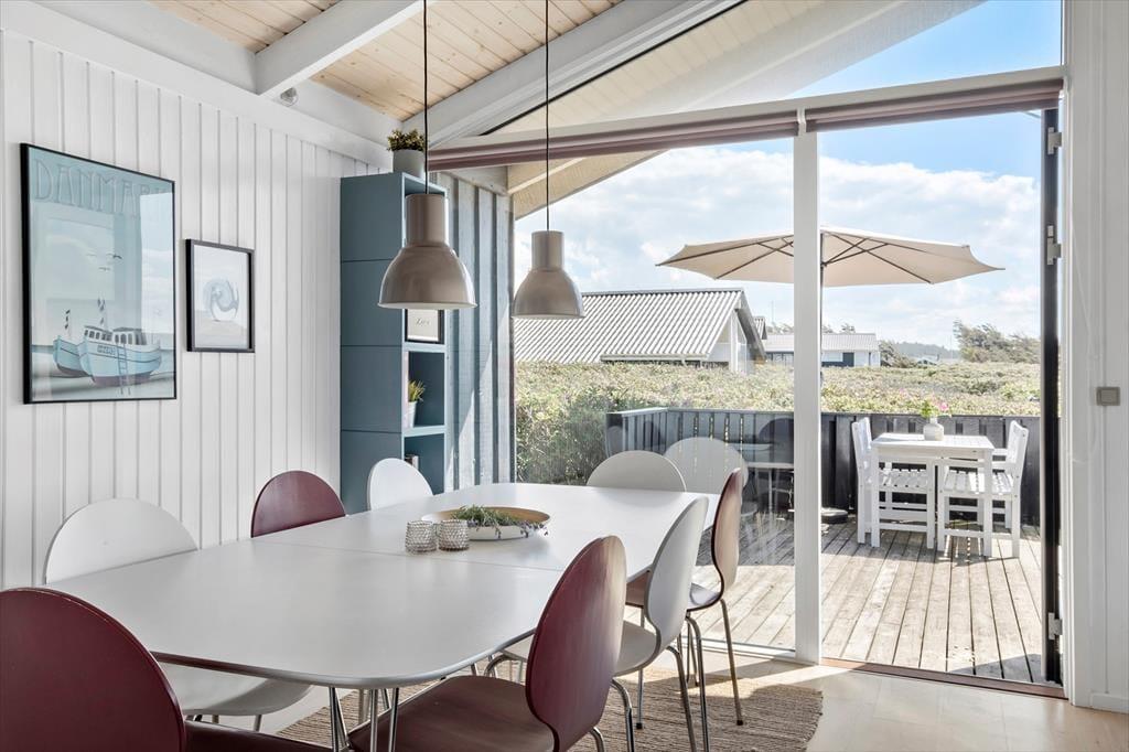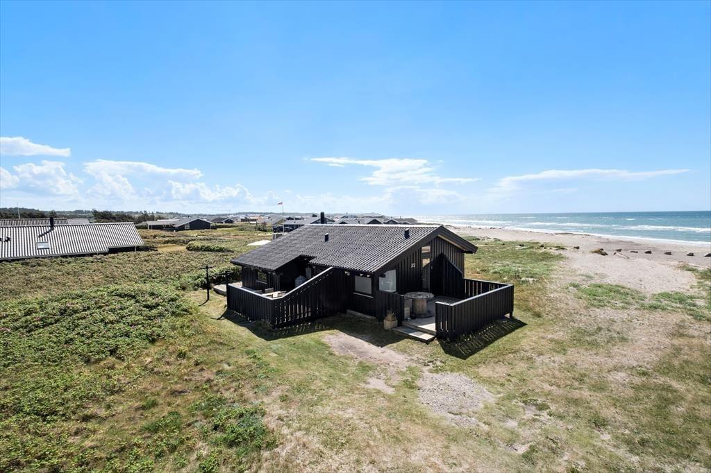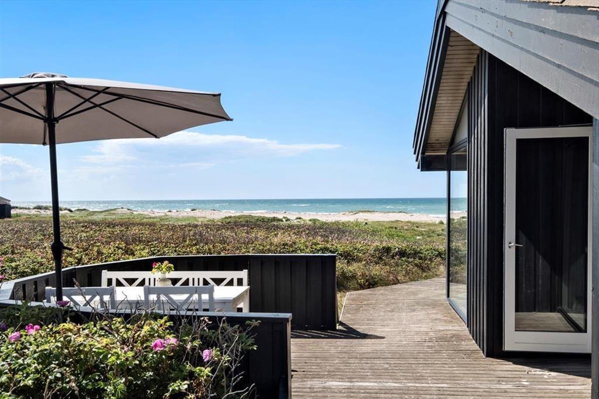 Das Ferienhaus liegt auf einem hügeligen Naturgrundstück in unmittelbarer Nähe zum Strand, damit Sie schnell in die blauen Wellen springen oder den Tag mit einem herrlichen erfrischenden Spaziergang beginnen können. Überall vom Grundstück haben Sie einen fantastischen Blick über die Nordsee. Es gibt zahlreiche Möglichkeiten den dänischen Sommer und die Sonne tagsüber auf den tollen Terrassen zu genießen, auf denen Sie auch windgeschützt sitzen können, falls es mal wieder zu windig sein sollte.