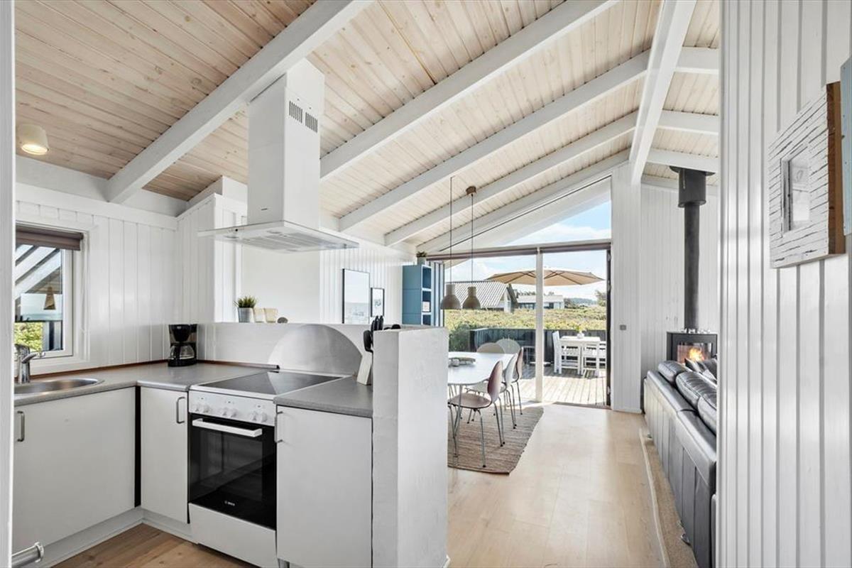 In diesem Ferienhaus treffen Sie auf eine moderne und stilsichere Einrichtung mit geschmackvollen Möbeln und ganz besonderen fantastischen Lichtverhältnissen aufgrund der großen Fensterpartien. Hier bekommen Sie das Optimale geboten, um so nah am Wasser zu wohnen. Falls Sie kretaiv veranlagt sind, ist es kaum vermeidbar neue Inspirationen während Ihres Aufenthalts zu erhalten. Die Küche ist offen mit dem Wohnzimmer kombiniert, von dem der wunderbare Blick über die Nordsee genossen werden kann. Insbesondere die Ecke mit dem Kamin und den hochwertigen Sesseln lädt zu gemütlichen Stunden mit einem Buch ein oder lassen Sie einfach nur Ihre Gedanken fliegen und denken nicht an hektische Zeitpläne. Außerdem sind drei Schlafzimmer vorhanden, zwei mit jeweils einem Doppelbett und das dritte mit einem Einzelbett und Etagenbett, sowie ein Badezimmermit Sauna und Whirlpool, das mit einem Hauch von Luxus dazubeiträgt. Schließlich gibt es noch einen schönen Dachboden mit Matratzen, ein hervorragender Ort für Ihre Kinder zum Spielen oder Entspannen mit den eigenen Tablets. Im Ferienhaus ist WLAN verfügbar. Ausgezeichnete, gemütliche und funktionale Vorraussetzungen für einen gelungenen Urlaub in Nordjütland!