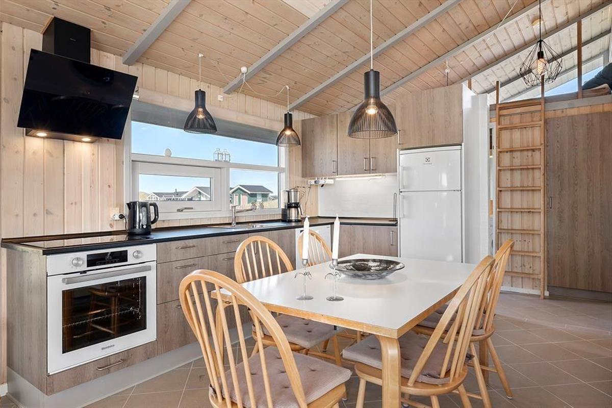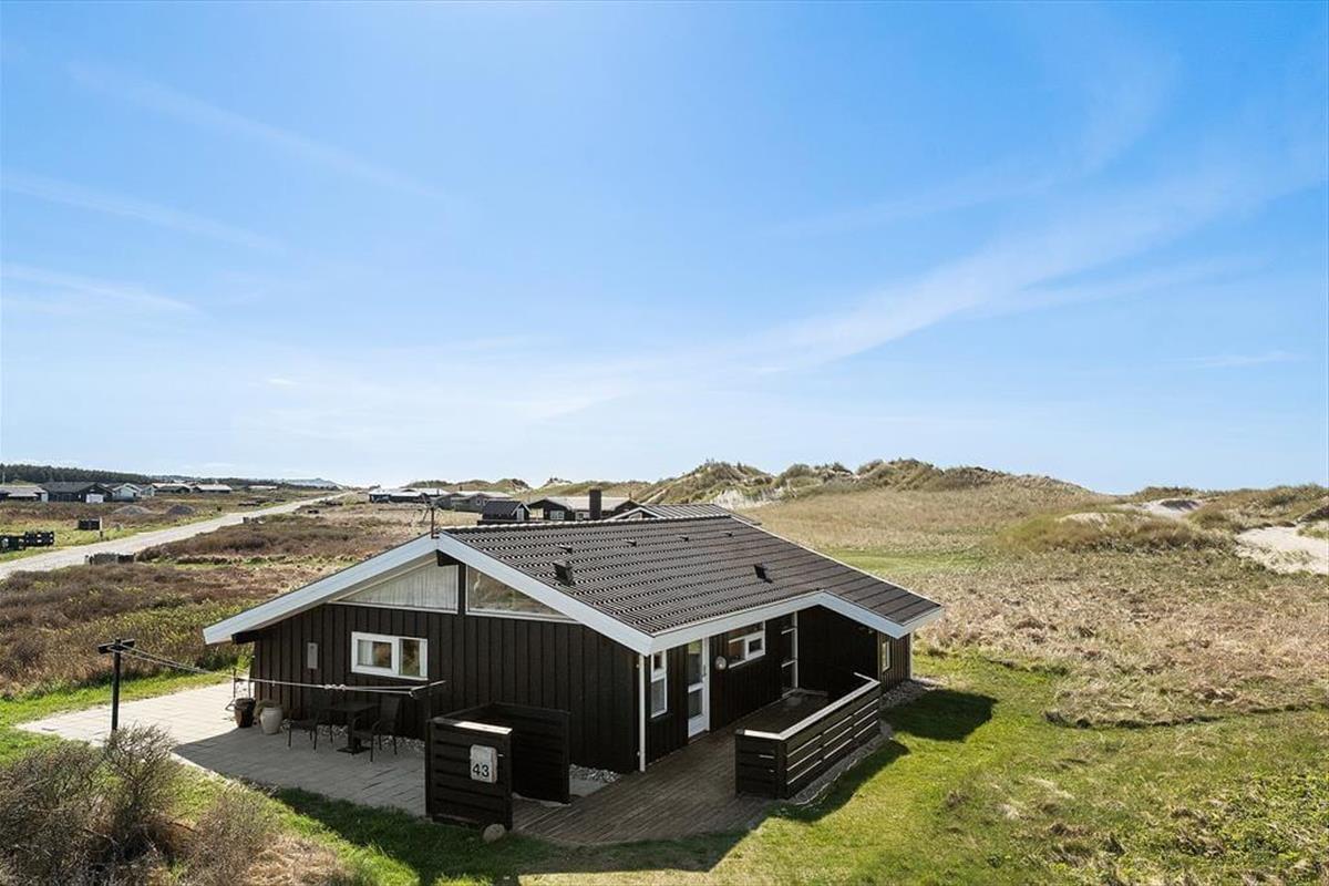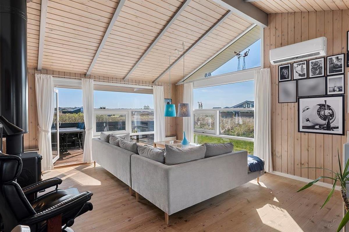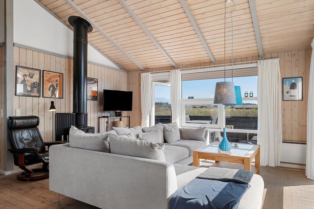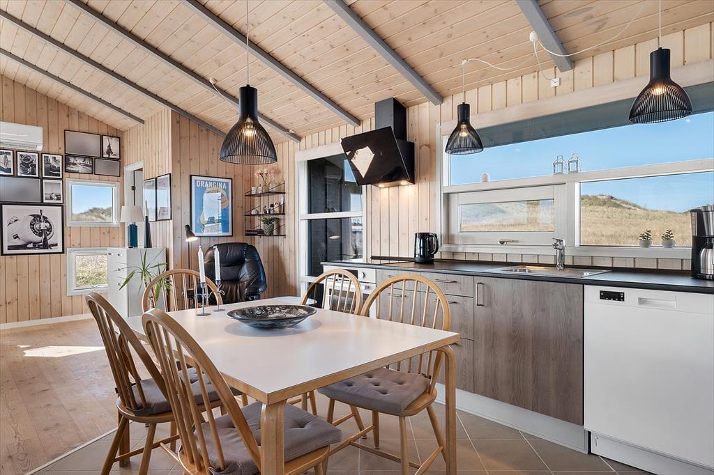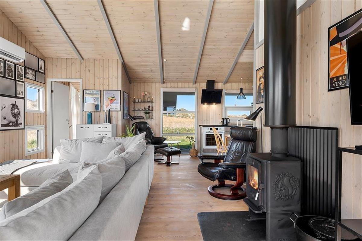 Das Mietobjekt aus dem Jahr 1987 wurde zuletzt in 2015 einer Renovierung unterzogen. Die klassische Einrichtung besticht mit hellen Holzwänden und hohen Decken. Das gesamte Objekt empfängt Sie mit einer schönen, komfortablen und gepflegten Möblierung. Die einladende Wohnatmosphäre ist zudem den großen Fenstern zu verdanken, die viel Sonnenlicht durch das Haus strömen lassen und Sie außerdem mit einem attraktiven Blick in die herrliche Küstenlandschaft mit hohen Dünen und offener Weite verwöhnen. Zur Wohnfläche zählen ein Badezimmer und drei Schlafräume, die insgesamt Platz für bis zu acht übernachtenden Gästen bieten. Das Herzstück des Hauses bildet der aus Küche und Wohnzimmer kombinierte Wohnbereich, in dem Sie sich im Kreise Ihrer Lieben versammeln können. An kühlen Abenden sorgt der behaglich knisternde Kaminofen für ein Maximum an echter dänischer Ferienhausgemütlichkeit. An sonnenreichen Tagen stellen Sie einfach die Terrassentüren weit auf und lassen die herrlich frische Seeluft durch das Haus strömen.