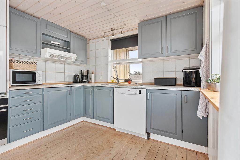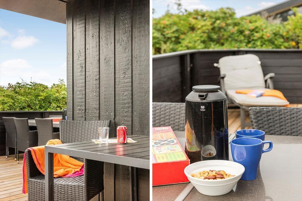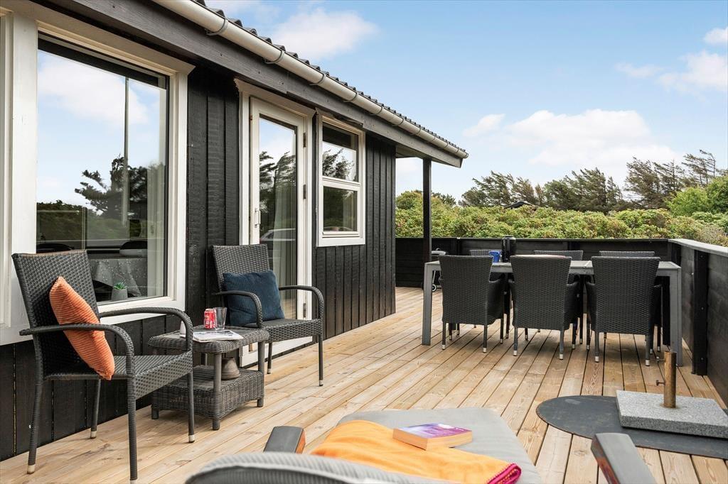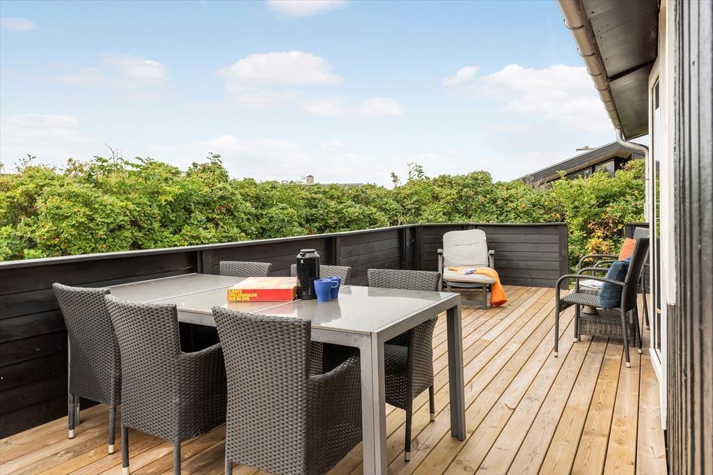 Wenn Sonnenbäder und Gartenspiele für dich zum Ferienhausurlaub dazugehören, wirst du dich über die guten Terrassen und das große Grundstück deines Hauses freuen. Im Sommervej 14 umgeben mehrere schöne Terrassenbereiche das Ferienhaus. Duftende Heckenrosen rahmen die Grasfläche ein. Der größte Terrassenbereich ist komplett geschlossen und bietet so einen sicheren Rahmen für die jüngsten Familienmitglieder und den Familienhund. Gemeinsam könnt ihr nach Herzenslust auf der Grasfläche umhertollen und mit dem Frisbee oder dem Ball spielen. Einen gelungenen Urlaubstag lasst ihr mit einem Essen vom Grill ausklingen. Während ihr in gemütlicher Runde beisammensitzt genießt ihr die friedvolle Atmosphäre - untermalt vom Rauschen der Wellen im Hintergrund.