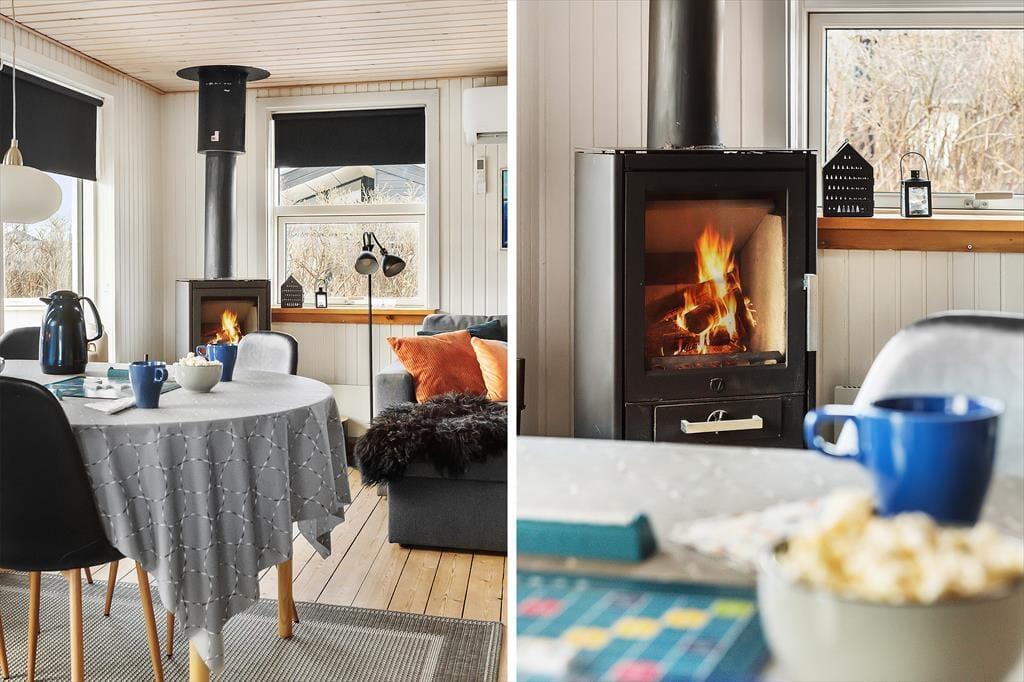 Wenn du dich nach ruhigen, erholsamen Urlaubstagen sehnst, kannst du dich bereits jetzt auf entspannte Stunden in gemütlichem Ambiente freuen. Die Sauna des Badezimmers verwöhnt mit wohltuenden Momenten. In den drei Schlafräumen werdet ihr gut und lange schlafen. Die meiste Zeit des Tages verbringst du mit deinen Lieben im Wohnraum, in dem du es dir mit einem spannenden Buch auf dem Sofa gemütlich machen kannst oder mit deiner Familie vergnügt Karten- und Gesellschaftsspiele spielst. An kühlen Tagen sorgt der Kaminofen für Stimmung und behagliche Wärme. Die Mahlzeiten, die in der gut ausgestatteten Küche zubereitet werden, genießt ihr alle gemeinsam am Esstisch des Wohnraums.