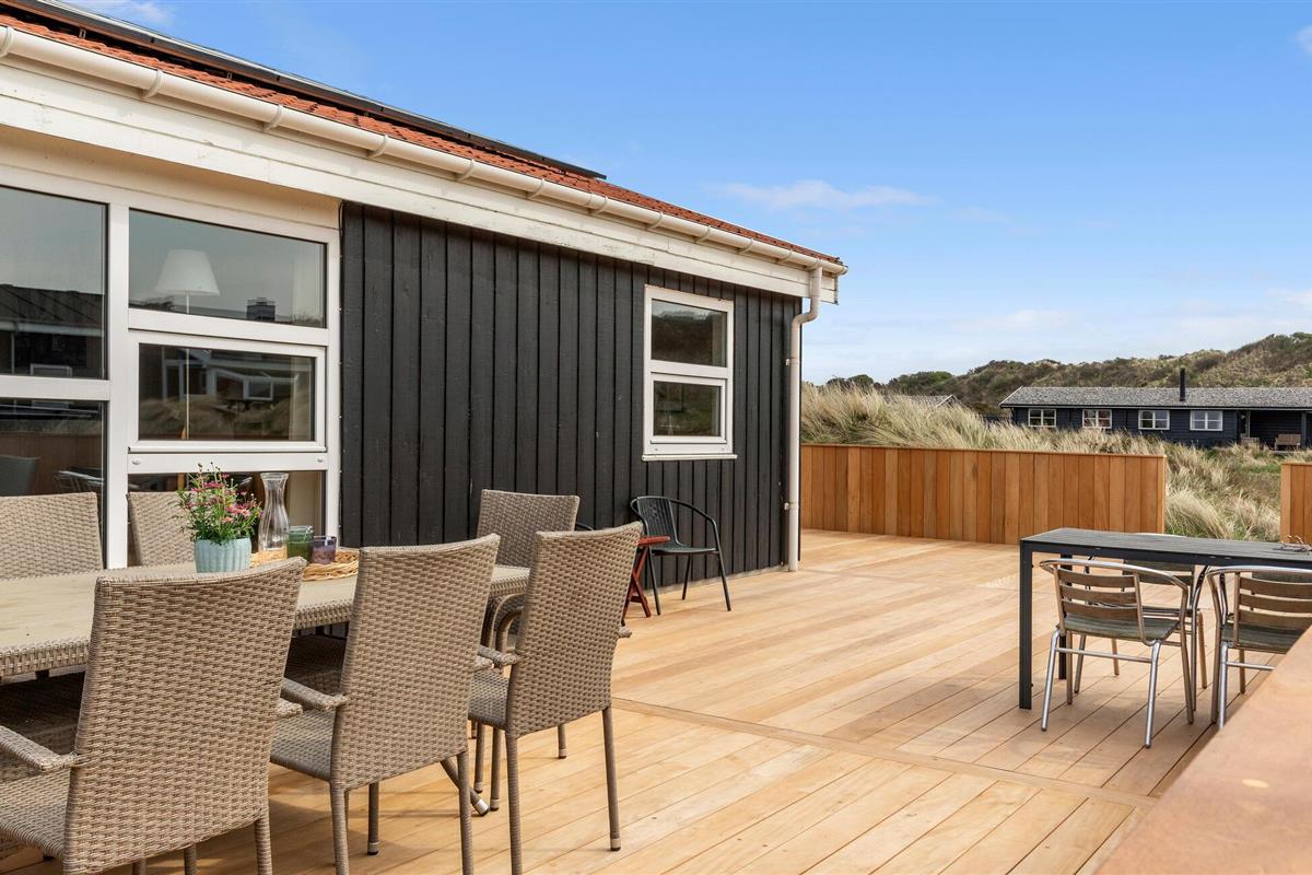 Op je uitnodigende terras kun je genieten van de frisse zeelucht terwijl je ontbijt in de buitenlucht. Laat je kinderen spelen op het heuvelachtige duinterrein en verheug je op gezellige barbecue-avonden met een grote groep.
