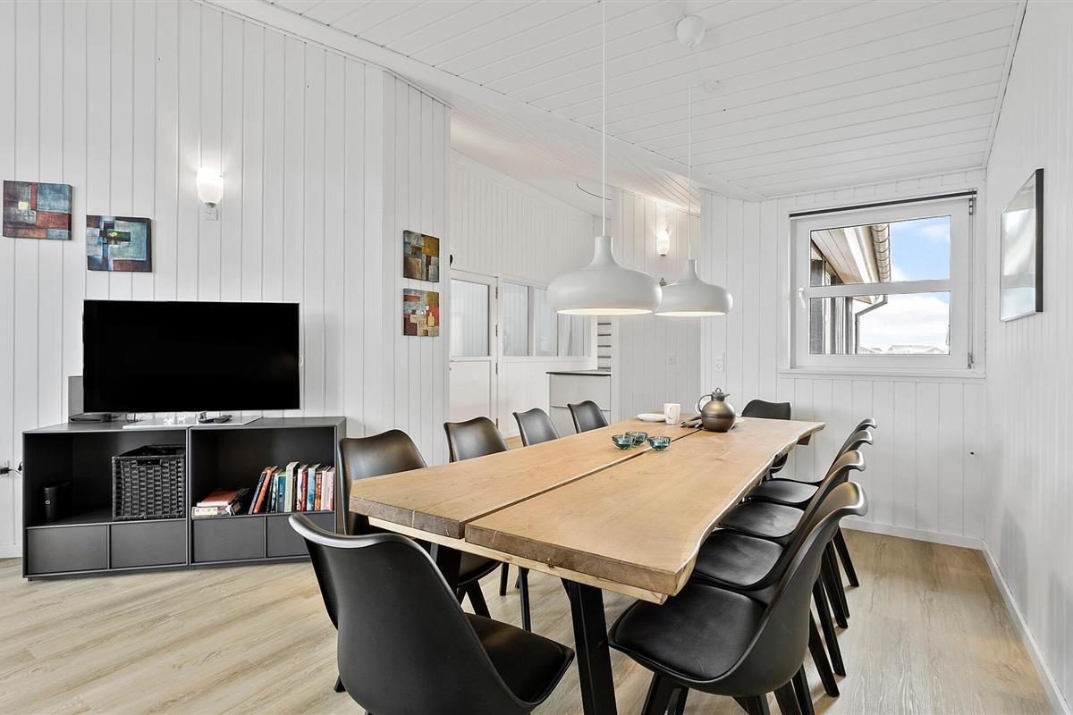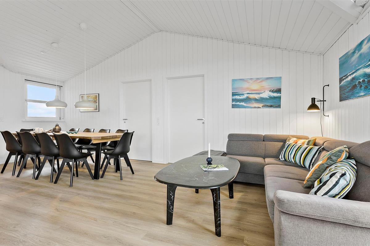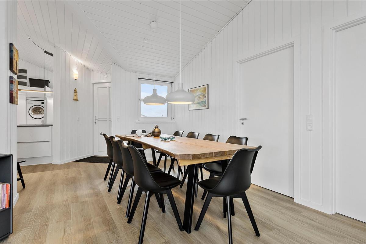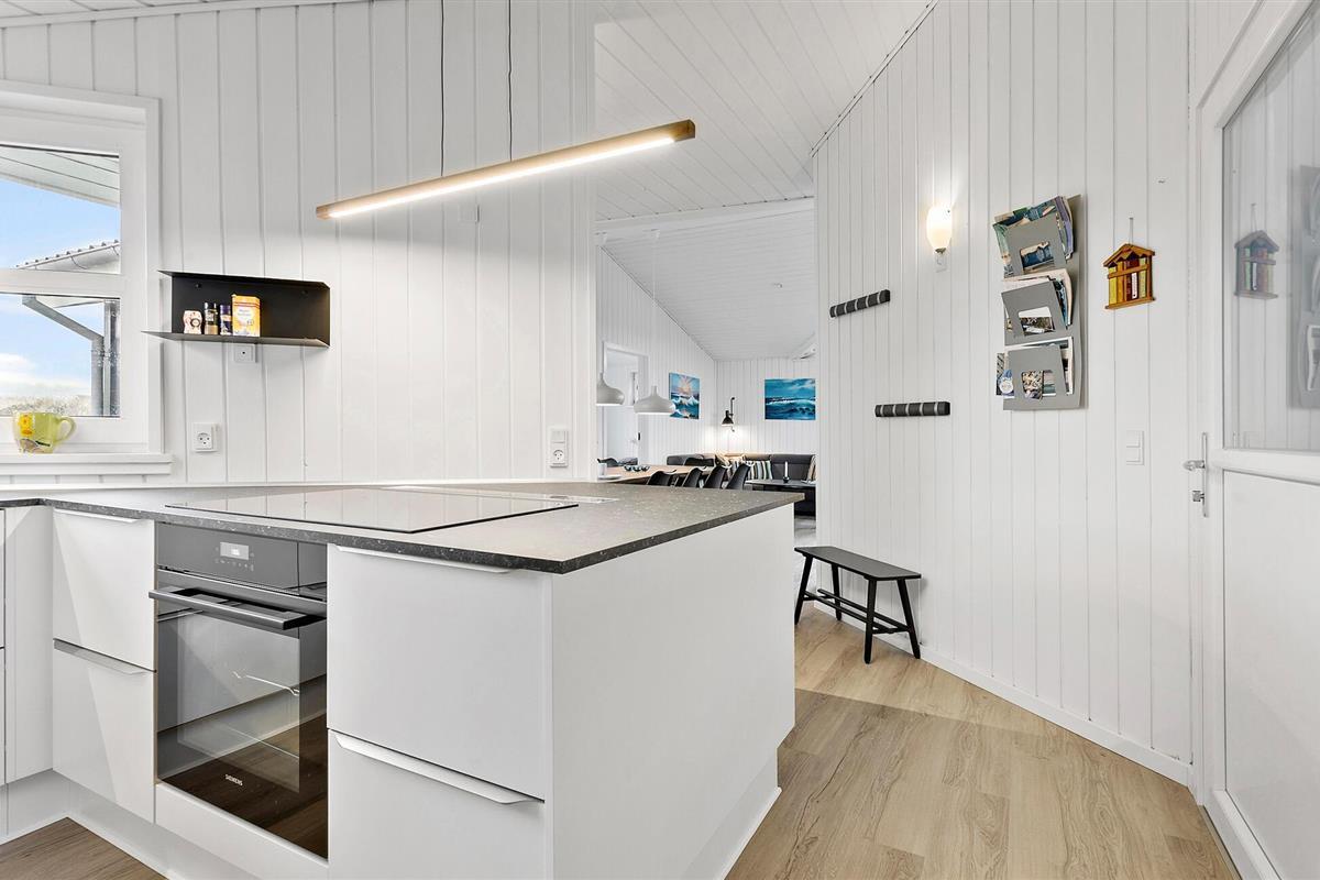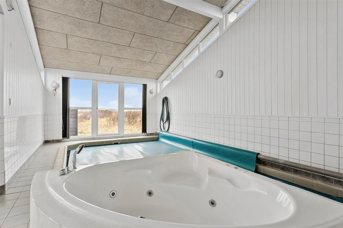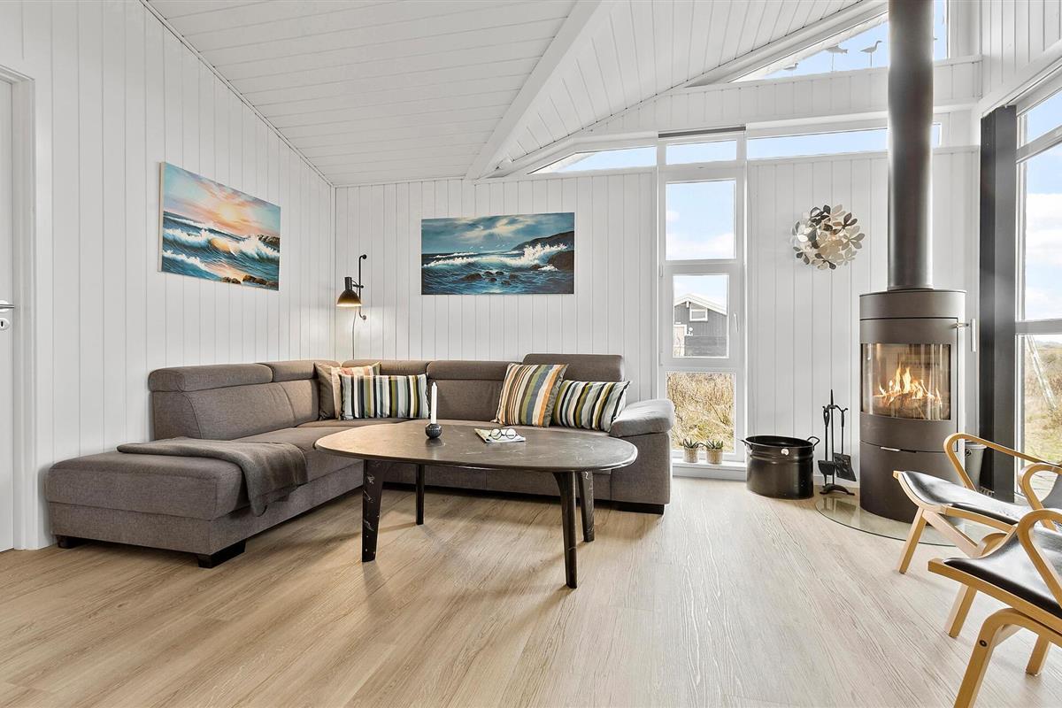 Dit vakantiehuis wacht op u in de buurt van Skallerup Klit Feriecenter met zijn avonturenzwembad en vele sportfaciliteiten. De architect heeft een goed doordacht domicilie gecreëerd met uitzicht op de duinen en de open natuur. Het vakantiehuis is goed geïsoleerd en milieuvriendelijk. Twee badkamers en 4 slaapkamers maken het geschikt voor 2 gezinnen. In de badkamers heeft u vloerverwarming en aangrenzend bevindt zich de sauna voor 2 en de zwembadruimte. Er zijn ramen tussen de zwembadruimte en de keuken. Wanneer u voor uw kinderen kookt, heeft u zicht op hun leuke activiteiten in het water. Direct naast de keuken ligt de gezellige woonkamer, waarvan het plafond tot onder de nok open is. De klinkervloer is hier ook verwarmd. Een aantrekkelijk vakantiehuis op een goede locatie.