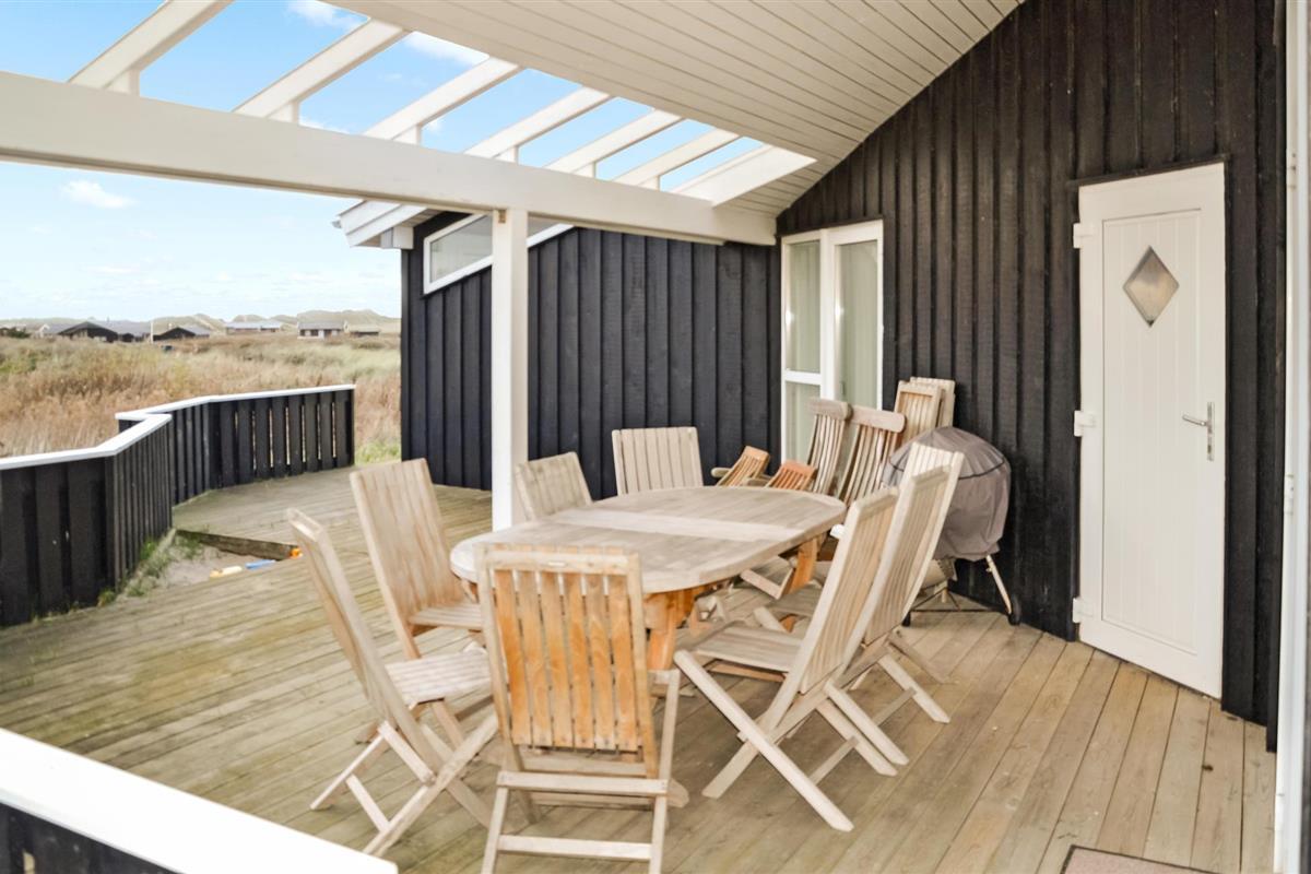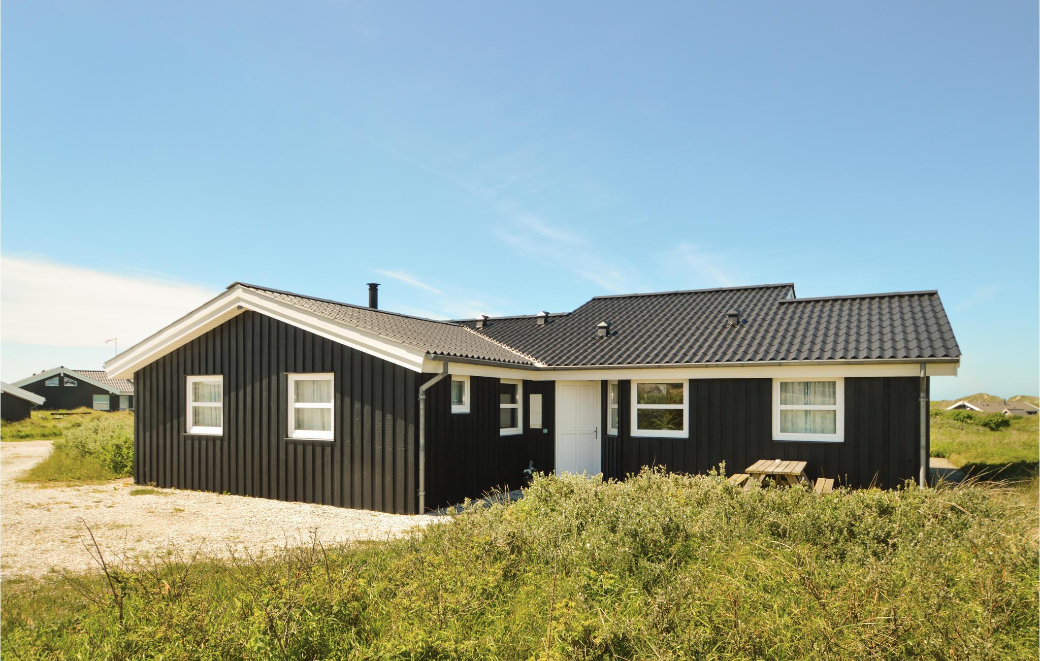 Modern vakantiehuis nabij Skallerup Klit met sauna, zwembad en uitzicht op duinen.