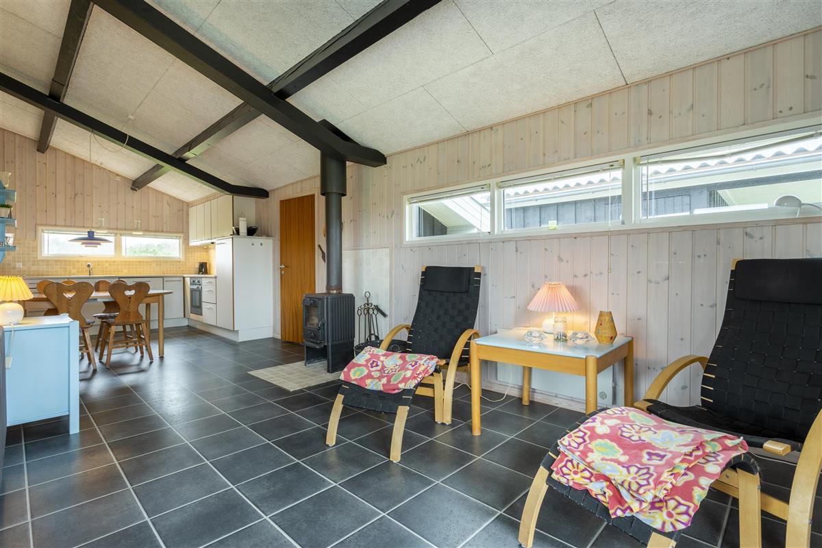 This charming and practical holiday home is ideal for families seeking quality time together. The open-plan kitchen connects to the inviting living room, where you can warm up by the wood-burning stove after a long walk on the beach. The living room serves as the heart of the home, offering a cozy space to relax and enjoy each other's company. The house features three spacious bedrooms, ensuring comfort and room for everyone. Additionally, there is a well-appointed bathroom with a shower, making this the perfect setting for memorable holiday moments.