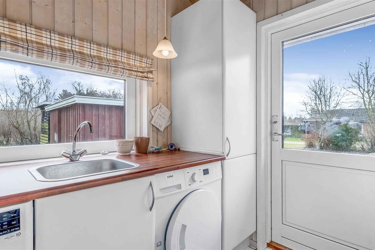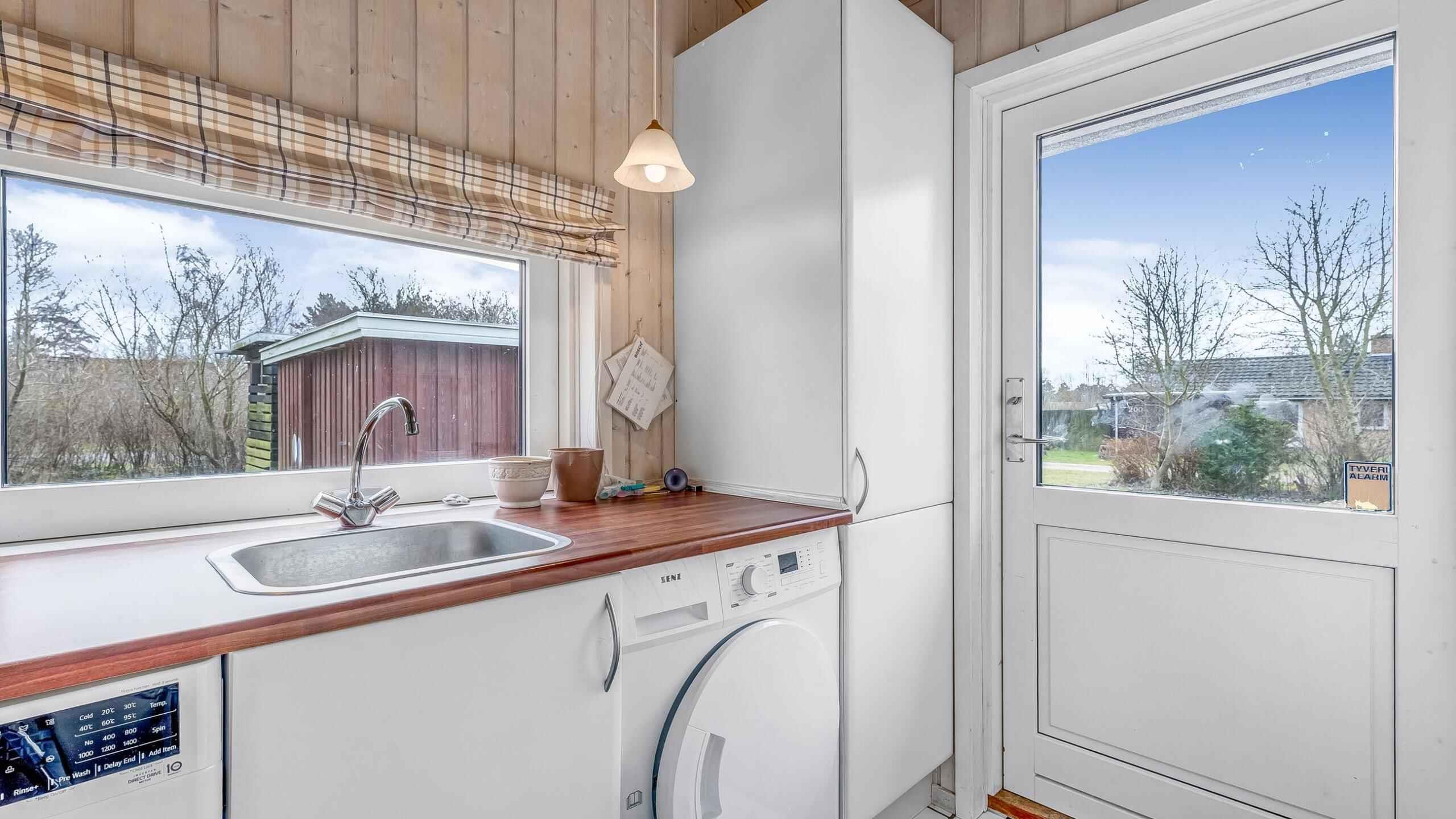 Ruim en functioneel zomerhuis van 88 m² met plaats voor maximaal 9 personen. Het huis beschikt over drie slaapkamers en twee badkamers – waarvan één met zowel een sauna als een bubbelbad. Ideaal om samen van de vakantie te genieten, zowel binnen als buiten. De woning ligt rustig op een dubbel perceel, wat zorgt voor extra tuinruimte voor spel, barbecue en ontspanning. De tuin omringt het huis en zorgt voor voldoende afstand tot de buren. Op slechts 400 meter ligt het strand – perfect voor een ochtendduik, zonnebaden of lange wandelingen. De omgeving biedt rust en natuur dicht bij het water, en is geschikt voor zowel gezinnen als vriendengroepen. In de nabije omgeving kun je het natuurrijke West-Lolland ontdekken, met volop mogelijkheden voor fietstochten, vissen en vogelspotten. De fjord bij Nakskov biedt een bijzondere rust en een rijk dierenleven. Het historische centrum van Nakskov ligt op slechts een korte autorit en biedt winkelen, cafés en activiteiten voor jong en oud. Het huis heeft een grote, open woonkamer met keuken en eethoek in open verbinding – ideaal voor gezellige momenten samen. Vanuit de woonkamer is er directe toegang tot het terras en de tuin. Een perfecte uitvalsbasis voor ontspannen vakantiedagen, dicht bij strand, natuur en charmante uitstapjes.