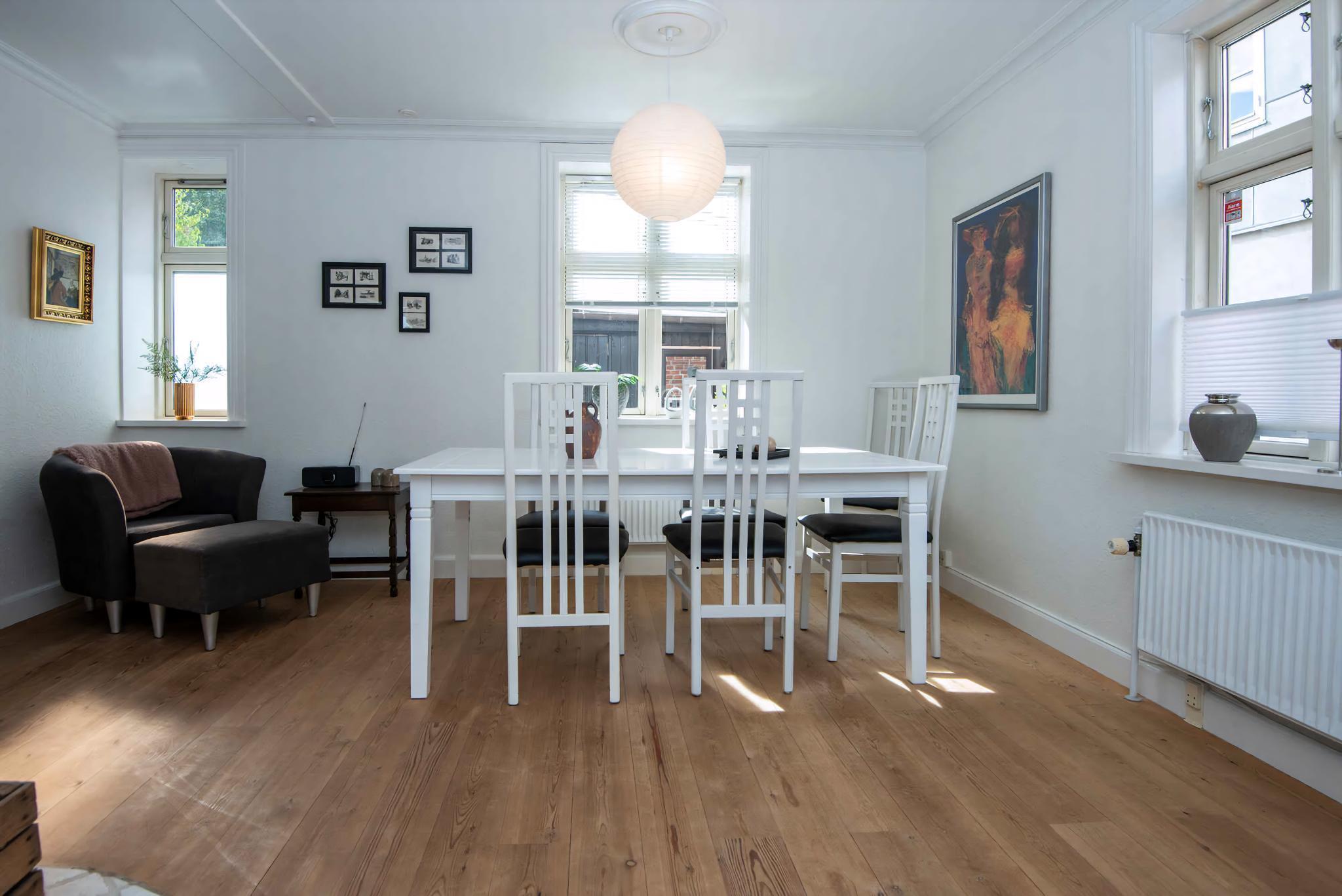 Charmant en gezellig herenhuis in het centrum van Nakskov, met tuin, barbecue en moderne voorzieningen.