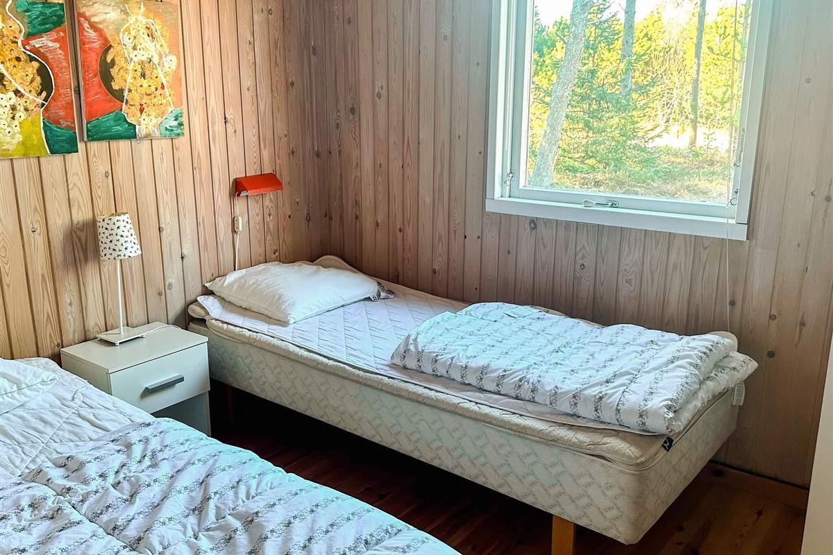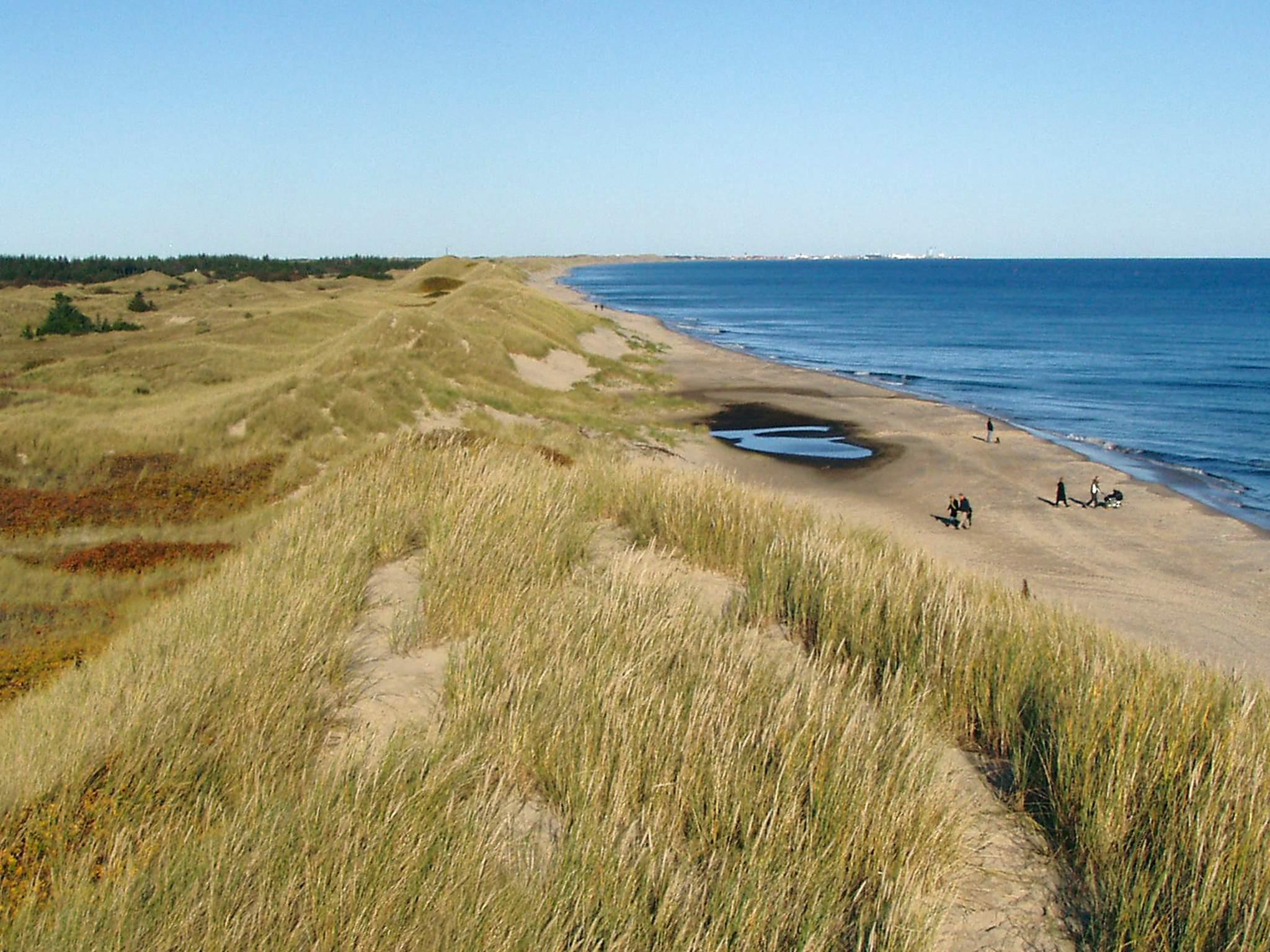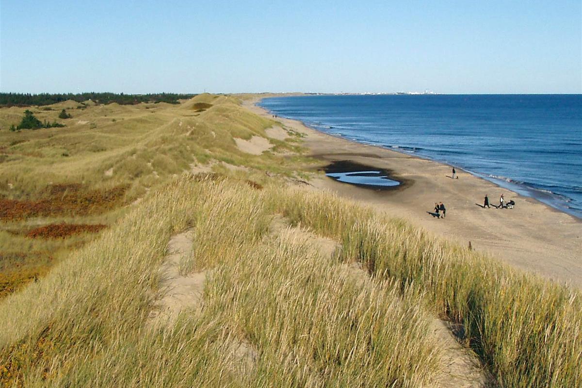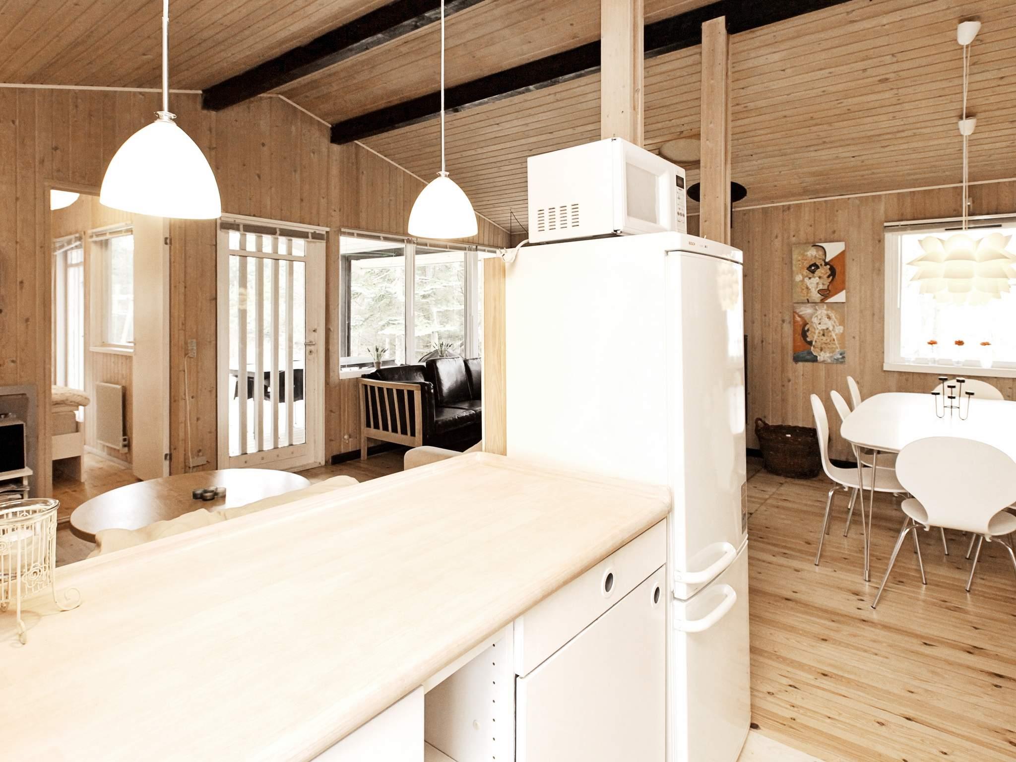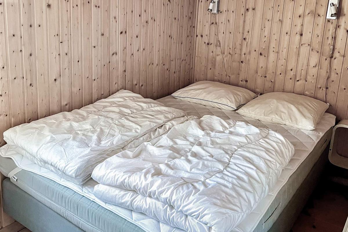 Ferienhaus in ruhiger Umgebung bei Napstjert Strand, zu dem Sie freien Zugangn über einen kleinen, gemeinschaftlichen Pfad haben. Das helle eingerichtete Haus hat ein geräumiges Bad mit Whirlpool und Sauna für Wellness und Erholung. Im offenen Küchen-/Wohnbereich gibt es eine Sitzecke mit TV und Holzofen für kühlere Abende. Vom Sofa aus können Sie die Aussicht auf die umliegende Natur durch die großen Fenster hindurch genießen. Das Naturgrundstück ist eingezäunt.