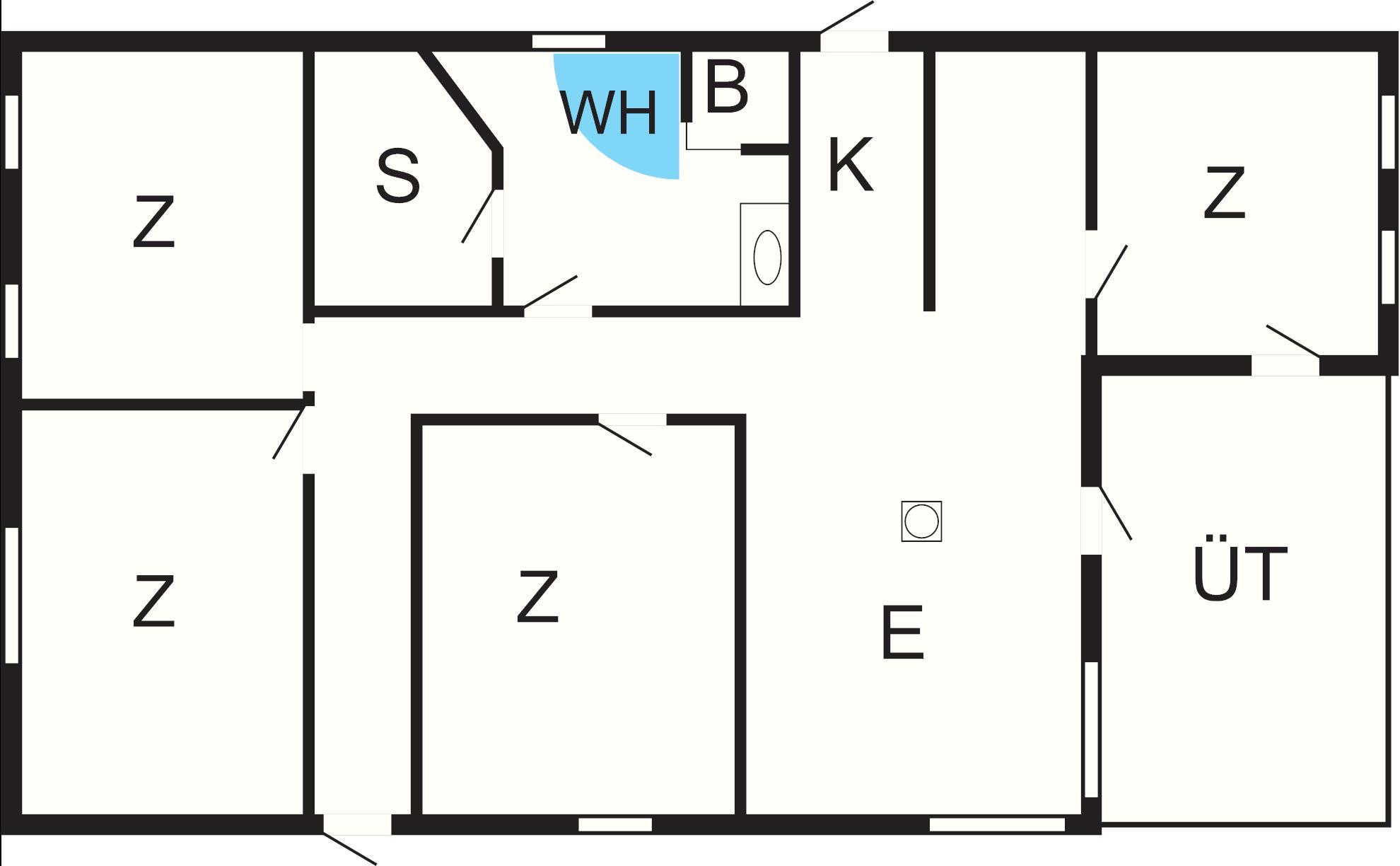 4 Schlafz.: (1DB)+(1DB)+(2B)+(2B), Kinderbett