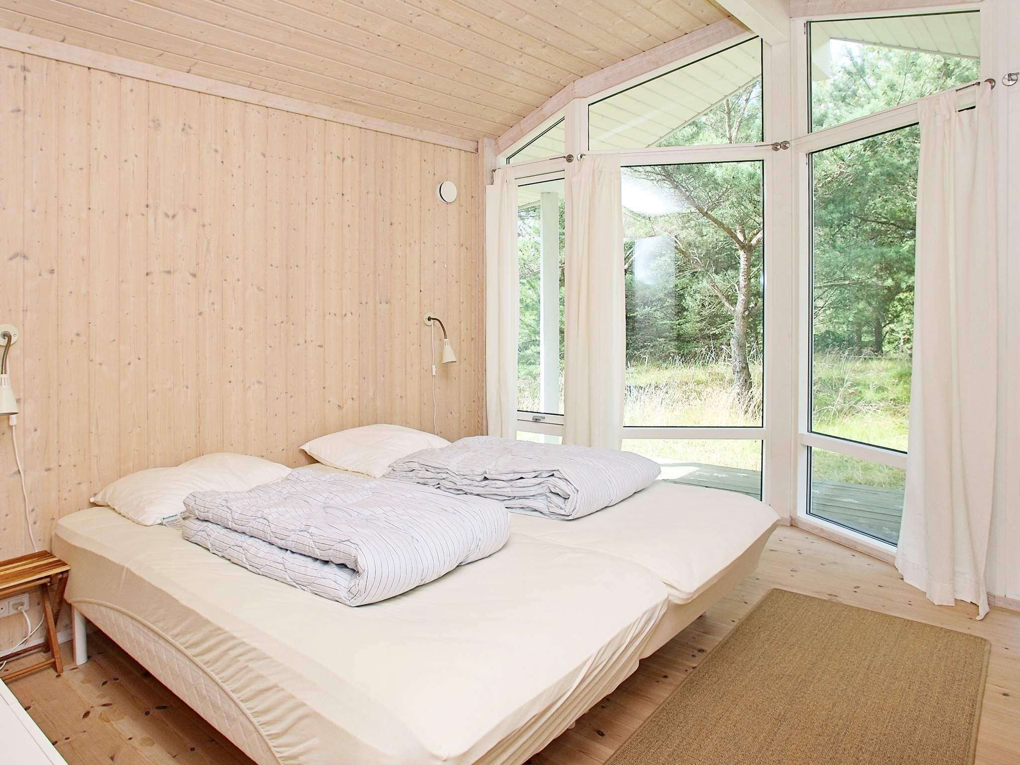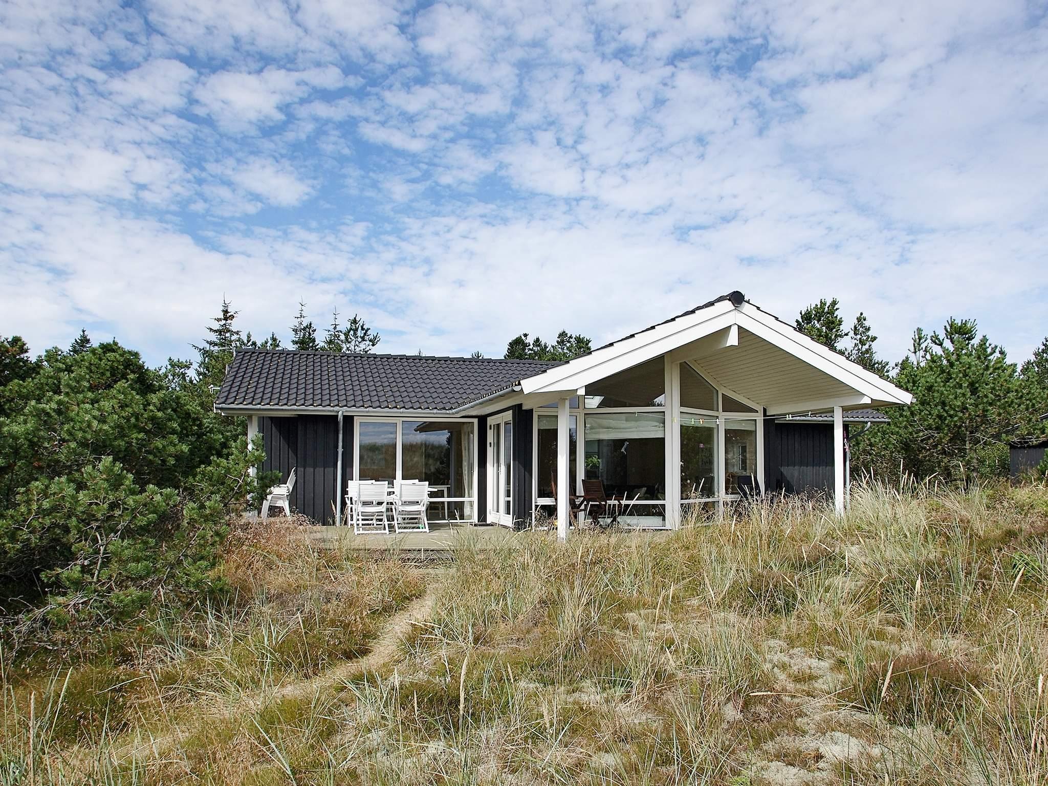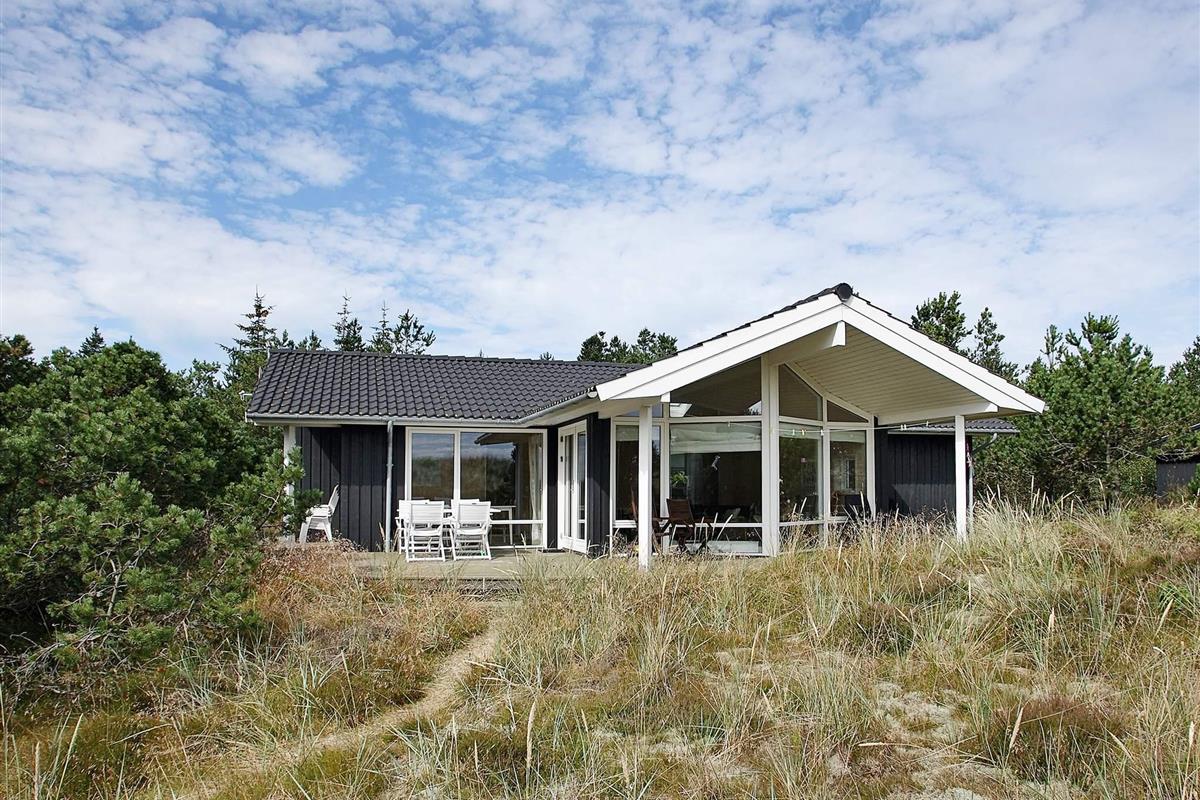 Dieses 2008 gebaute, helle Ferienhaus liegt nur ca. 50 m vom Badestrand entfernt und besitzt einen Eingangsbereich mit einer kleinen Waschküche, zwei Zimmer und ein Badezimmer. Außerdem gibt es einen Schlafboden mit zwei zusätzlichen Schlafplätzen für Kinder, ein Badezimmer mit Whirlpool und einen großen Küchen-/Aufenthaltsbereich mit Blick auf das Strandgrundstück und die Dünen. Die Fenster sorgen für einen guten Lichteinfall. Das Haus liegt in 1. Reihe auf einem 2700 m² großen, abgeschirmten Dünen-/Strandgrundstück, von wo aus ein eigener Weg direkt an den Strand führt. Eine Terrasse geht um das Haus herum und lädt zu gemütlichen Sonnenstunden ein.