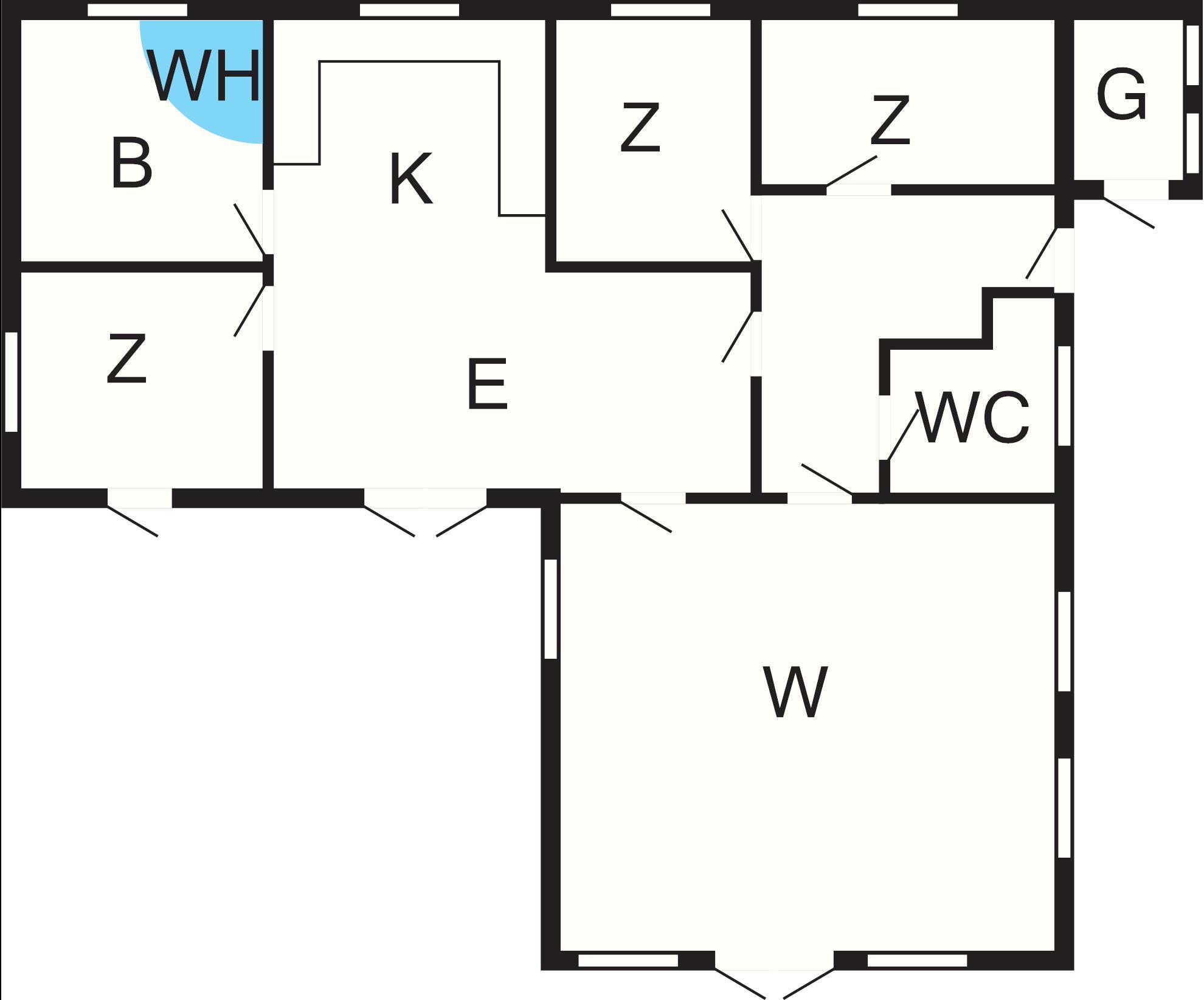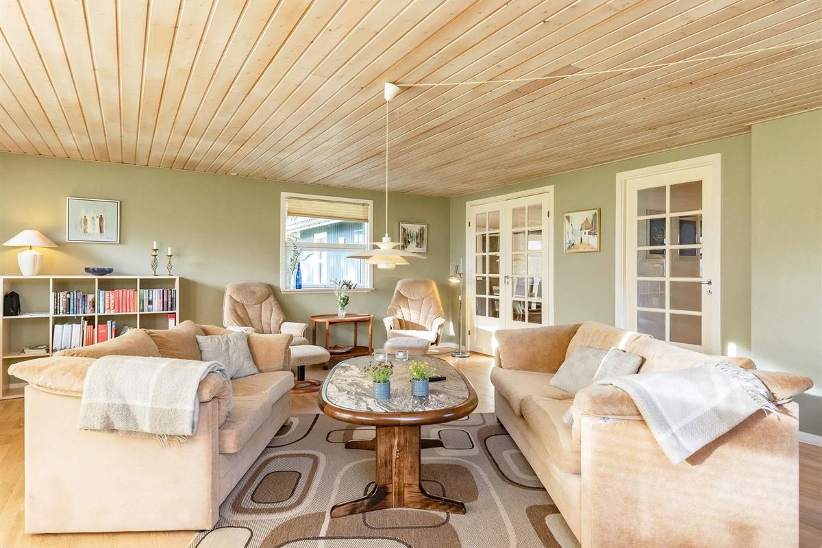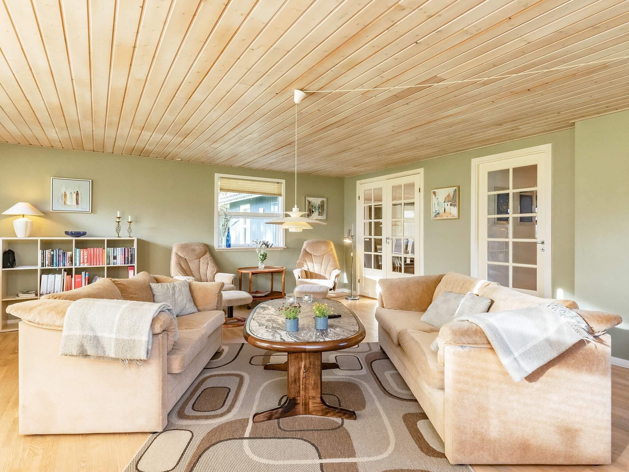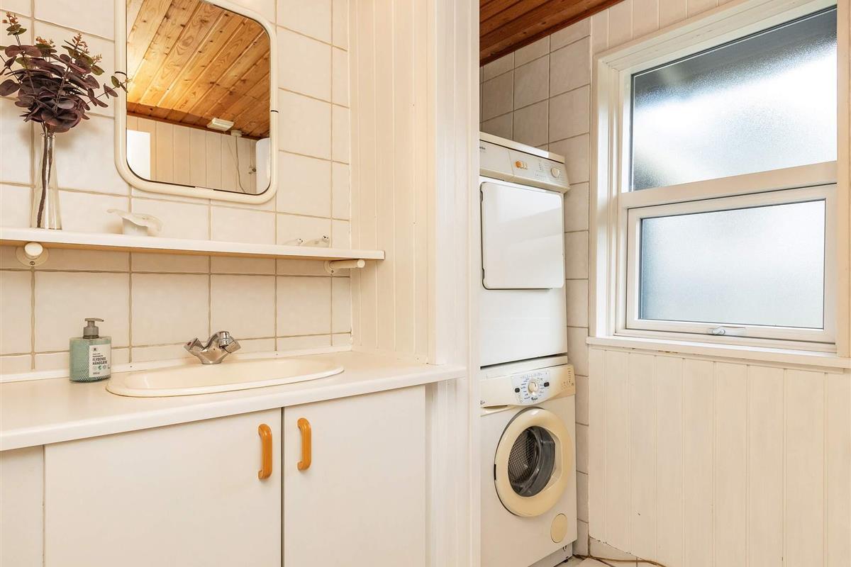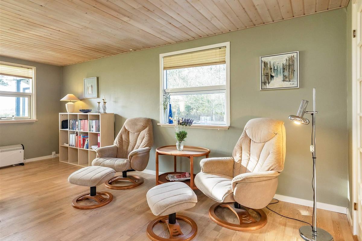 Dieses Ferienhaus liegt auf einem großen Grundstück mit Rasenfläche und unweit der Küste. Das Haus ist gut eingerichtet mit einem großen, separaten Wohnzimmer und einer Küche mit Essbereich und Holzofen. Von hier aus können Sie auch das Meeresrauschen hören, wenn der Wind aus östlicher Richtung weht. Im Haus gibt es zwei Toiletten aber nur ein Bad mit Whirlpool und Handbrause.