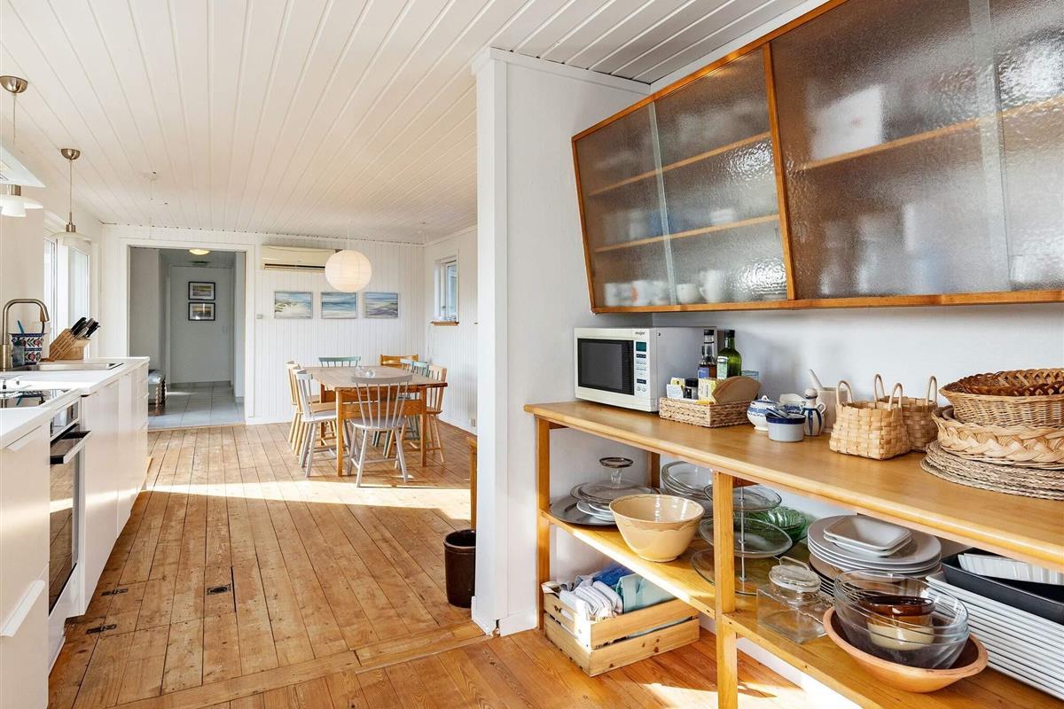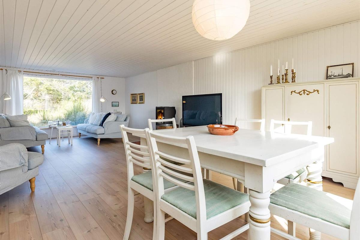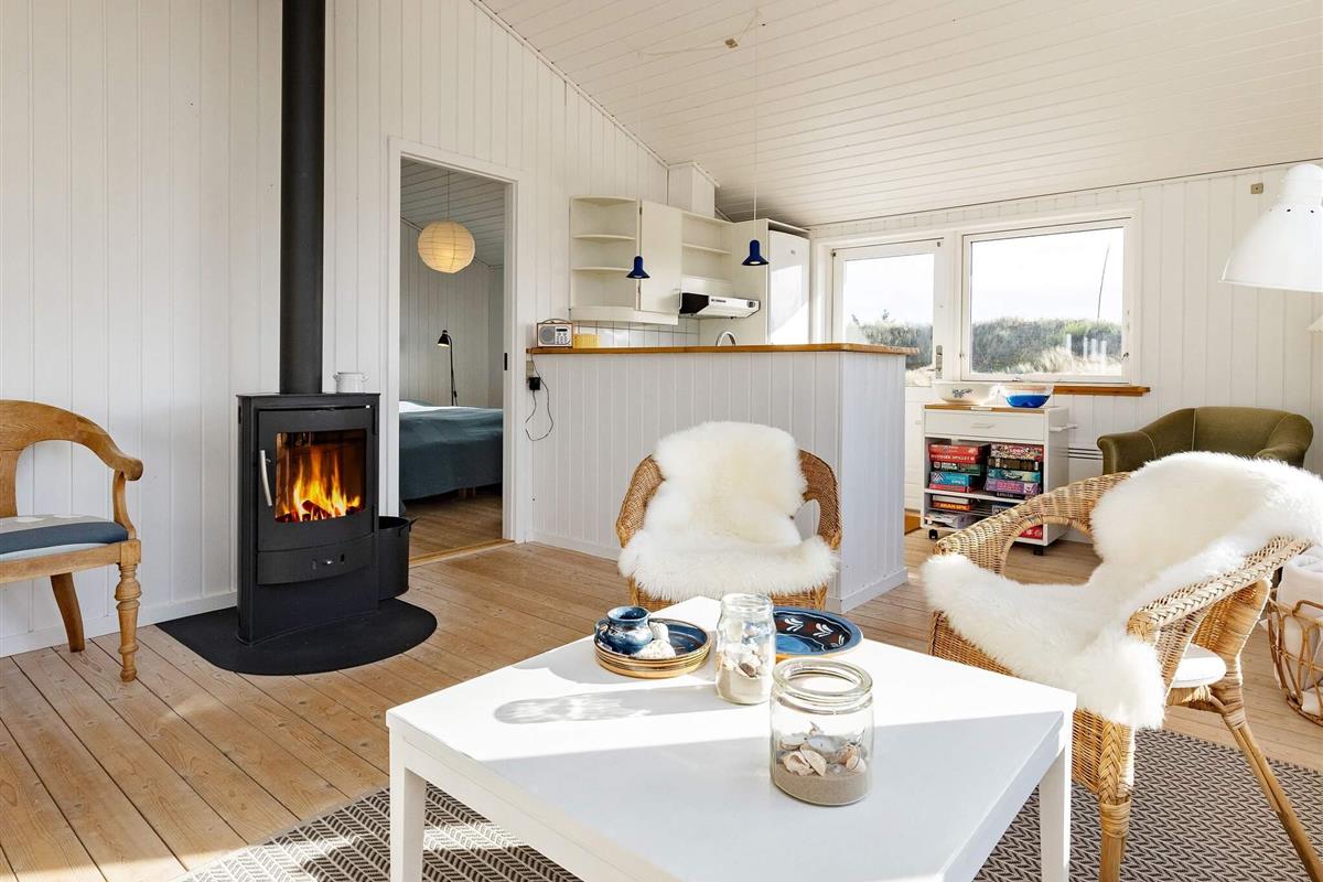In dem attraktiven Natur- und Feriengebiet bei Ålbæk liegt dieses 2018 renovierte Ferienhaus mit guter Ausstattung und schönen Außenbereichen. Die Möblierung stammt teils noch aus 1954 und verleiht dem Haus eine ruhige und charmante Atmosphäre. Zusammen mit den modernen Möbeln/Einrichtungen wird dieses Haus besonders attraktiv, komfortabel und persönlich. Das Haus ist durch die großen Fenster sehr hell und bietet schöne Aussicht nach Osten und Süden hin. Im Sommer bietet es sich an, die Schiebetüren zur Terrasse zu öffnen und im Winter bietet sich der Holzofen für kuschelige Wärme an.
