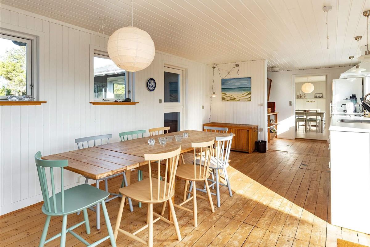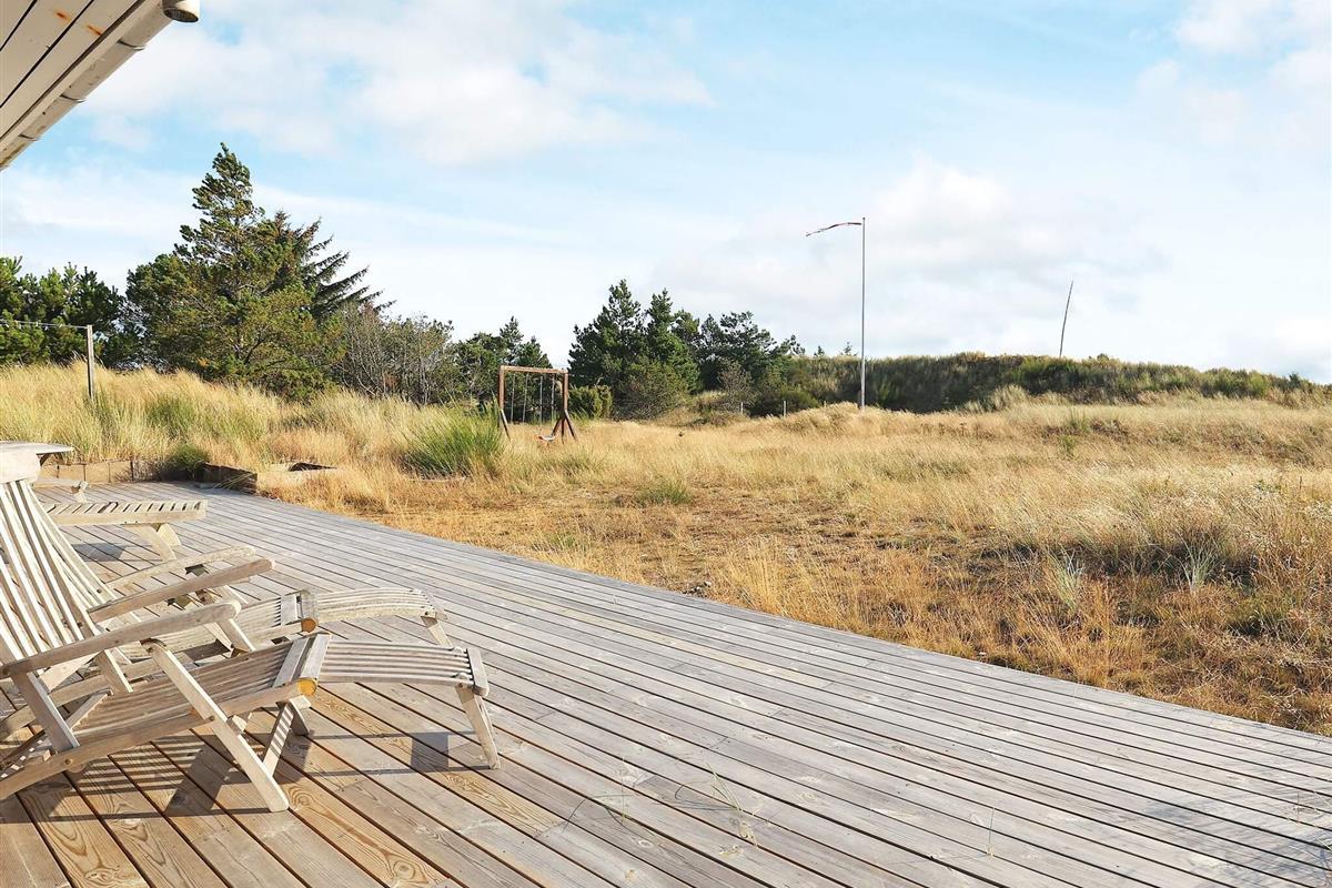 Das Haus befindet sich auf einem Dünengrundstück in erster Reihe mit eigenem Pfad über die Dünen zum kinderfreundlichen Strand hin. Es steht eine Schaukel auf dem Grundstück. Vom Haus aus können Sie das Rauschen des Meeres hören und die reiche Pflanzen- und Tierwelt betrachten. Auf der Düne steht eine Bank, von der aus Sie die Sonnenauf- und -untergänge beobachten können. Sie können bis nach Skagen und Frederikssund blicken.