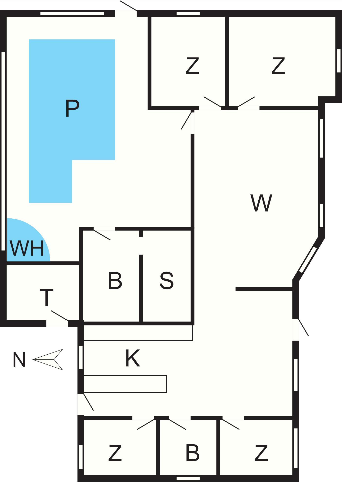 4 Schlafz.: (1DB)+(1DB)+(1B+2K)+(1B+2K), Kinderbett