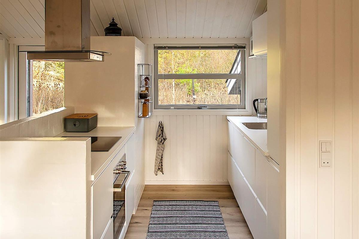 Vom Küchen-/Wohnbereich hat man Zutritt zu einer nach Süden ausgerichteten Holzterrasse davor, auf der man ab mittags und bis zum Abend die Sonne genießen kann. Zudem kleinere Terrasse an der anderen Seite des Hauses, mit Morgensonne.