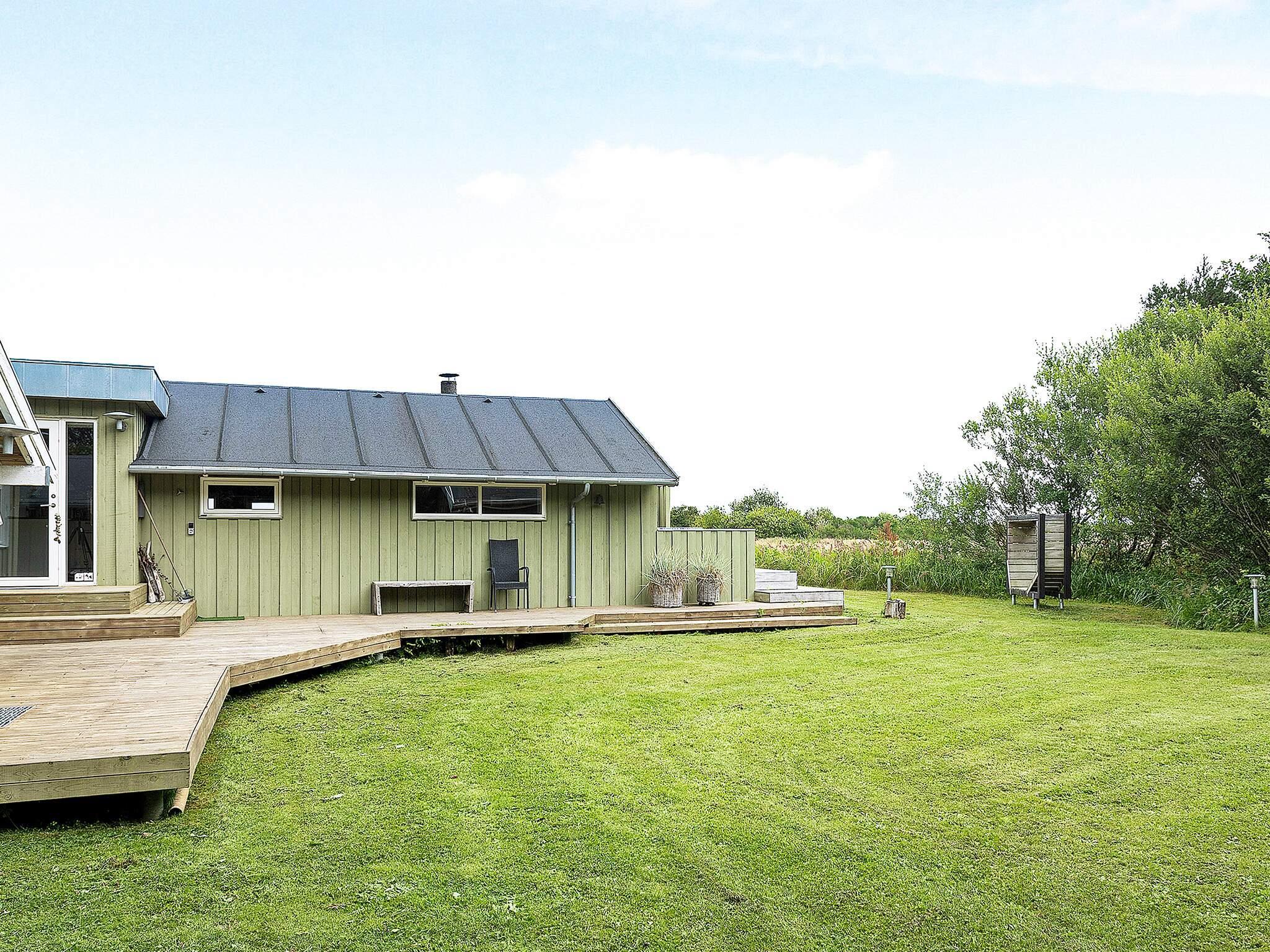 Ca. 100 m vom Badestrand entfernt liegt dieses Ferienhaus mit einem eigenen kleinen Weg, der an den Strand führt. Sie haben einen herrlichen Blick auf die Dünen und die Natur. 2014 wurde das Haus umfassend renoviert und präsentiert sich seitdem hell mit moderner Einrichtung. Innen erwarten Sie zwei Schlafzimmer mit Doppelbetten, ein Bad mit Whirlpool und Sauna, eine Küche mit Essplatz und Aussicht auf die Dünen sowie ein Wohnzimmer mit Holzofen und ebenfalls Dünenblick. Die Terrasse führt um das ganze Haus herum und lädt zu entspannenden Stunden im Freien ein. Auf der Ostterrasse gibt es auch eine Außendusche. In einem großen Annex gibt es zwei Schlafplätze und in einem kleineren Annex am Haus, gibt es ein Einzelbett.