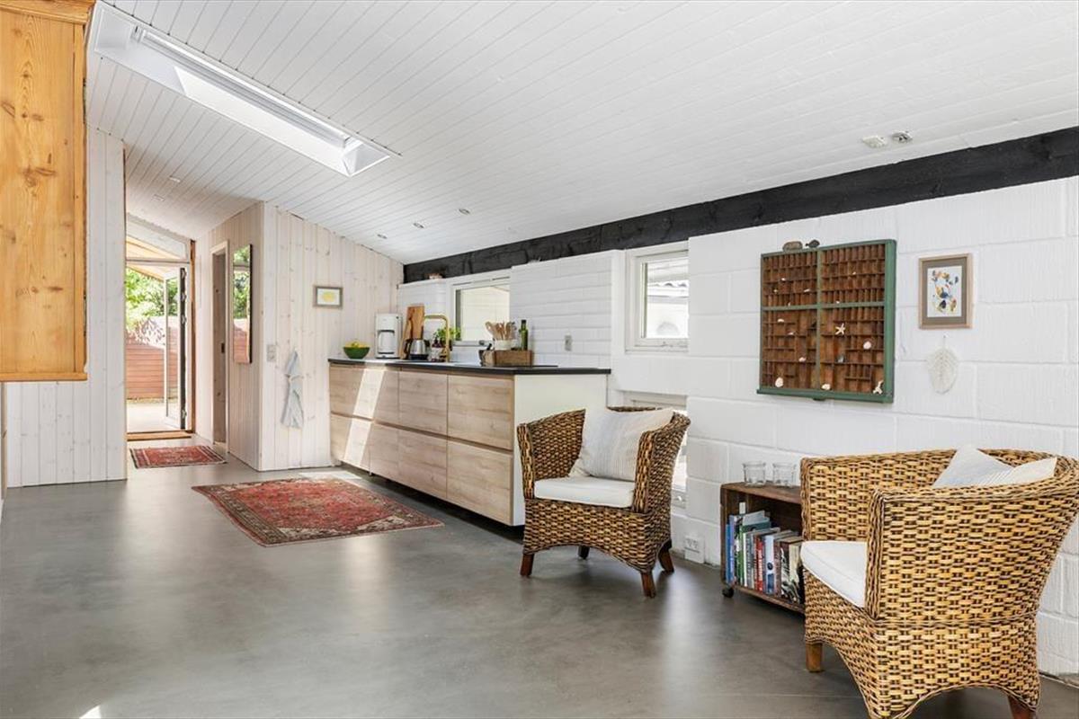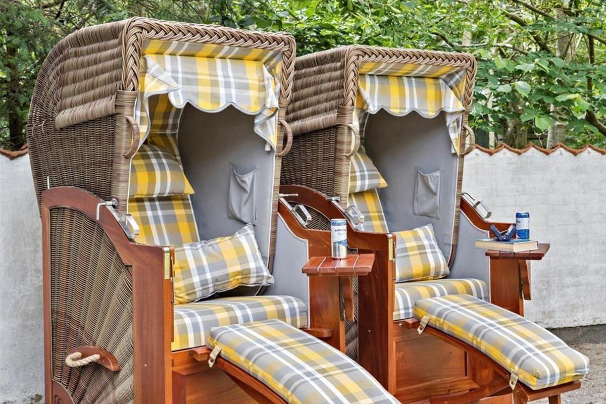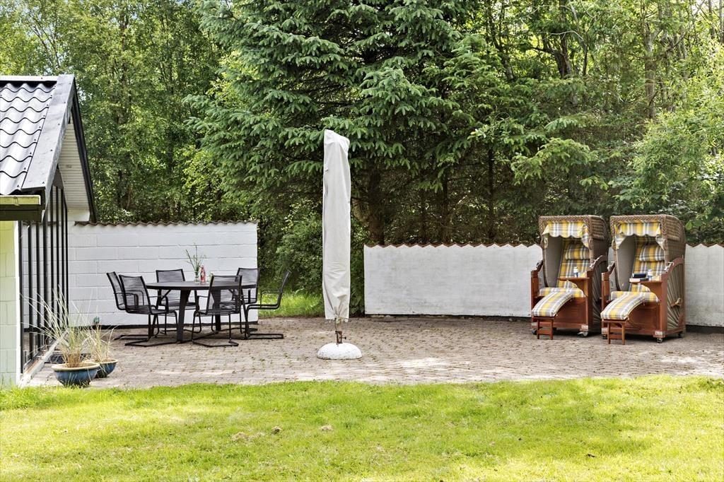 Auf einem großen, grünen und gut abgeschirmten Grundstück, 350 Meter vom kinderfreundlichen Strand bei Napstjert entfernt, begrüßt Sie dieses schöne Urlaubsdomizil zu erholsamen Urlaubstagen.