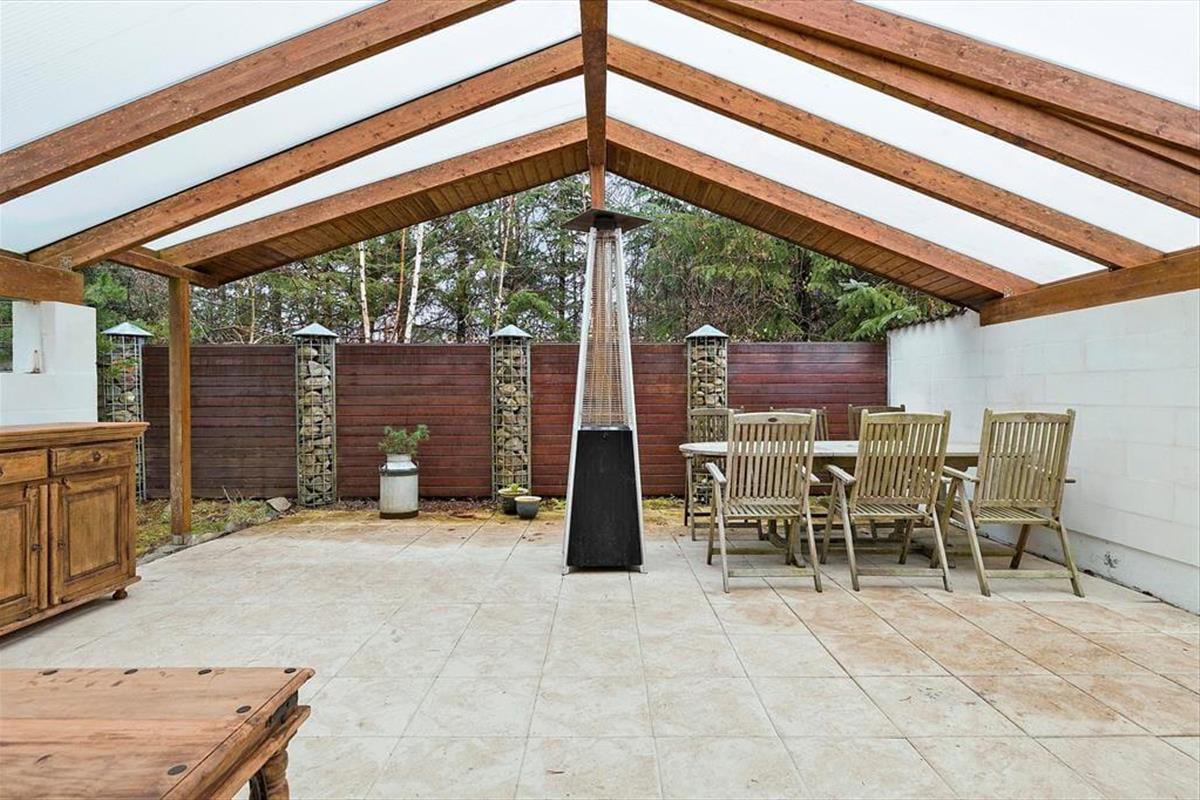An der Nordseite des Hauses, in Richtung Grundstückseinfahrt, steht ein überdachtes, geschlossenes Terrassenareal zur Verfügung. Zwei offene Terrassen schmiegen sich an die Südseite. die große Grasfläche animiert zum Umhertollen und Ballspielen. Der grüne Bewuchs schirmt die Außenbereiche gut ab, sodass Sie sich angenehm ungestört unter freiem Himmel entspannen können.