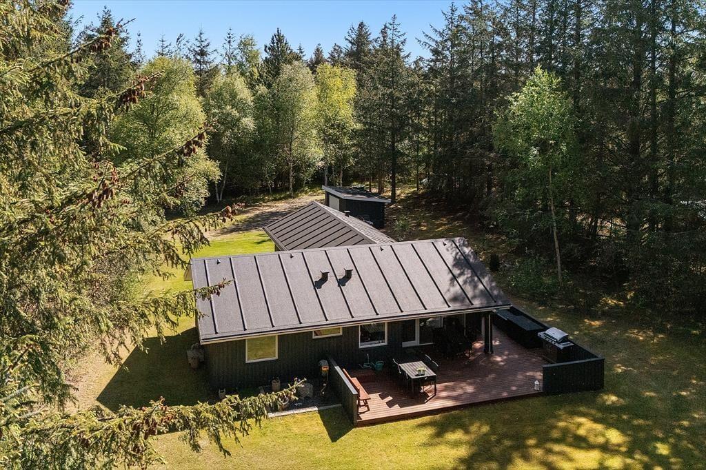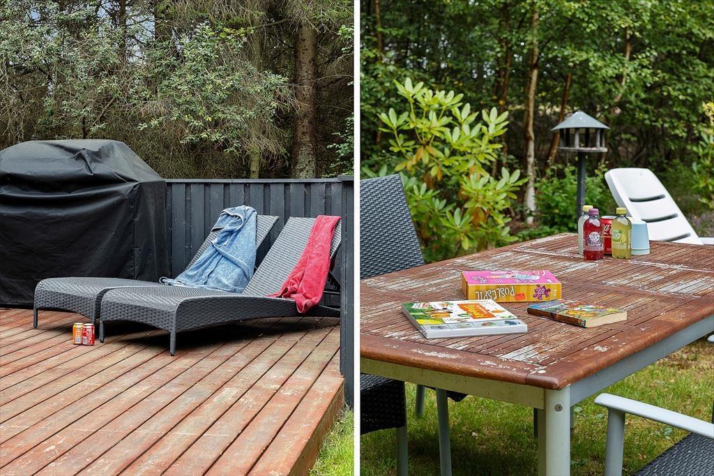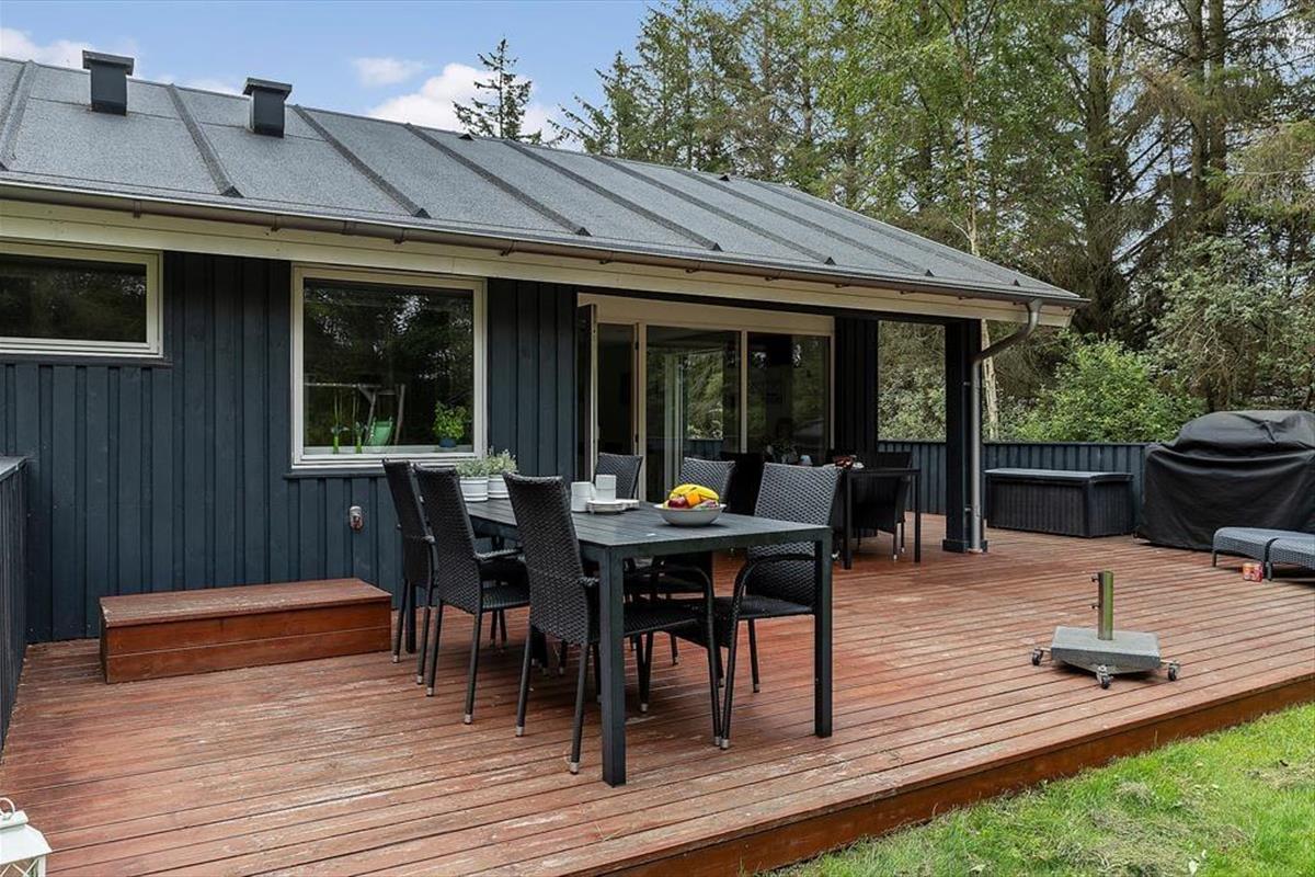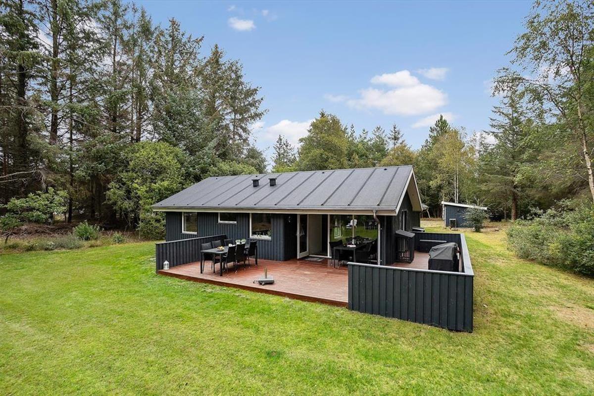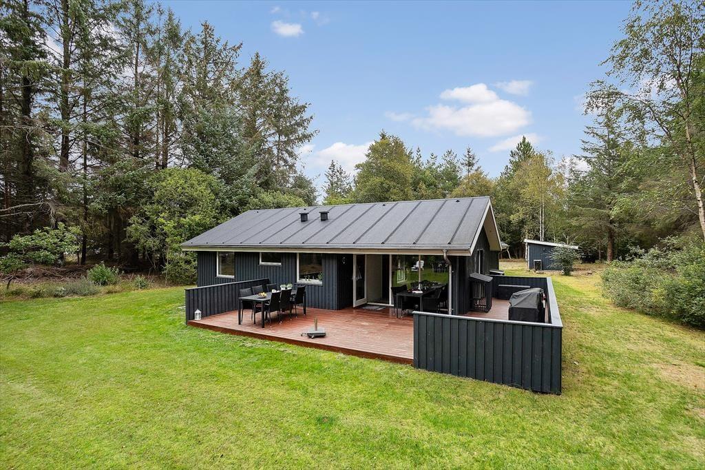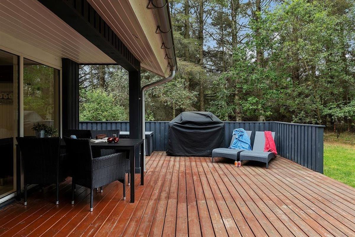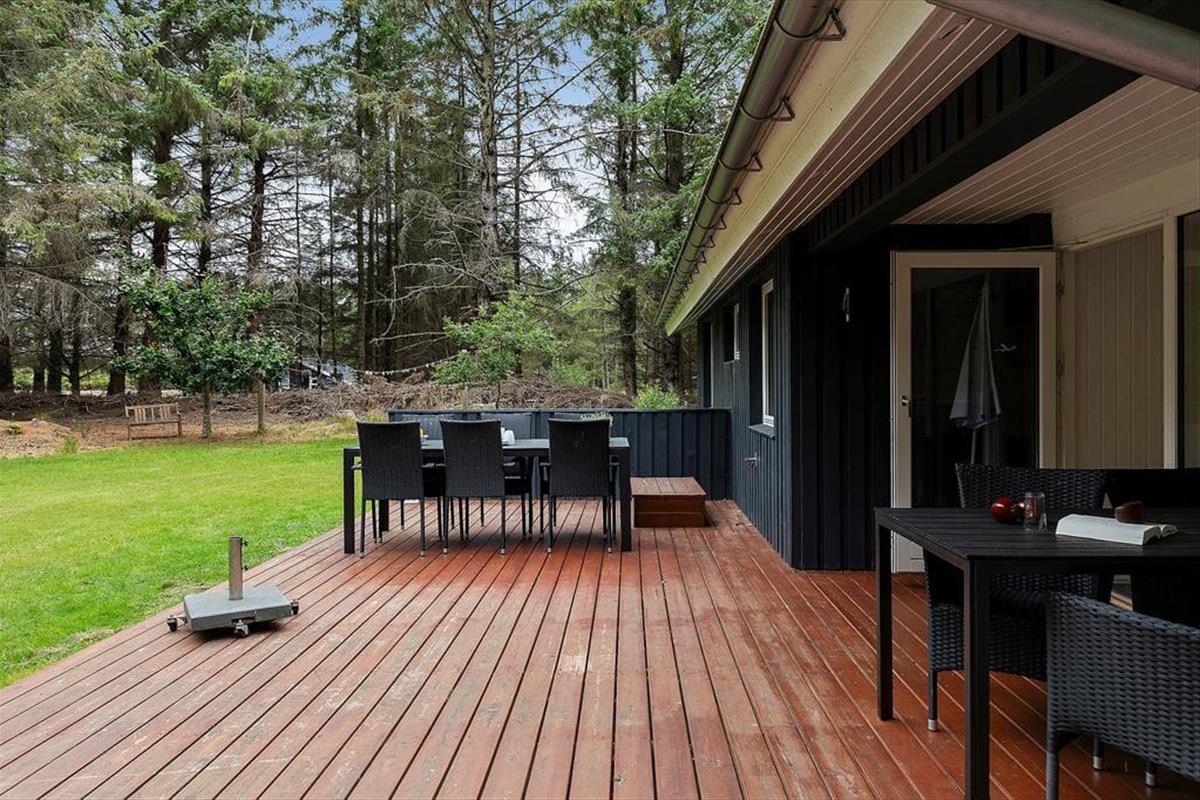 Der Außenbereich ist das Herzstück des Ferienhauses. Eine große überdachte Terrasse lädt zu langen Urlaubstagen bei Sonne und Schatten ein. Hier können Sie Ihren Morgenkaffee genießen, während die Vögel zwitschern, oder abends gemeinsam im Freien speisen. Das große Grundstück ist gut abgeschirmt, sodass Sie ruhige Ecken zum Entspannen, Spielen und für die Hunde finden. Die windgeschützten Plätze machen die Terrasse bei jedem Wetter attraktiv. Die Lage in Tranebærvej garantiert eine friedliche Atmosphäre, in der Sie die Geräusche der Natur und die frische Meeresluft genießen können.