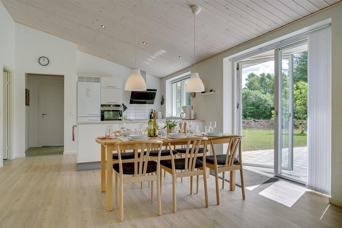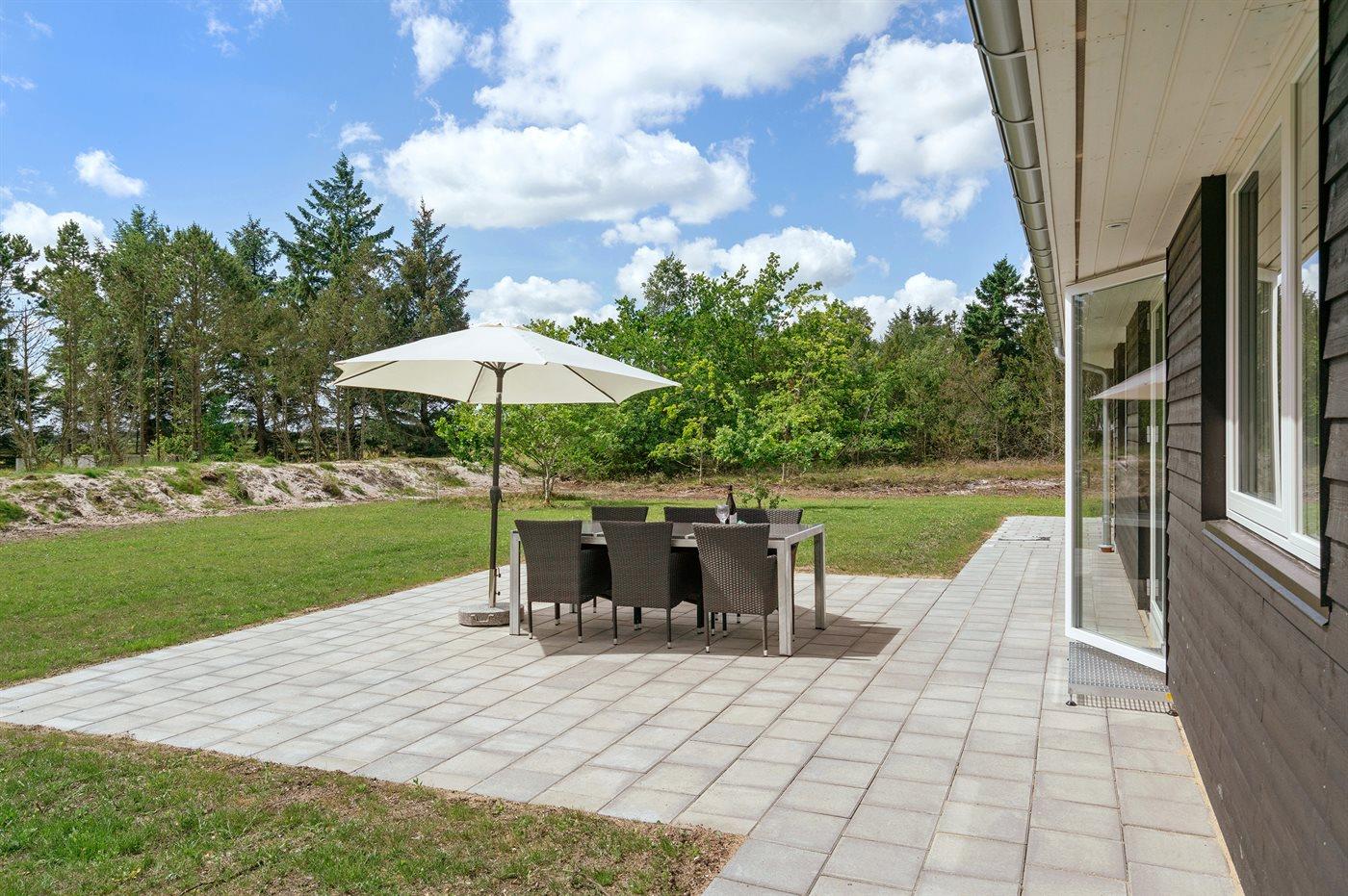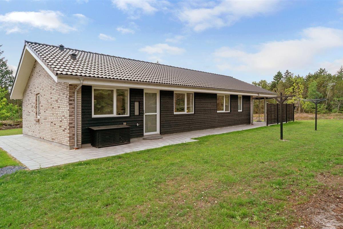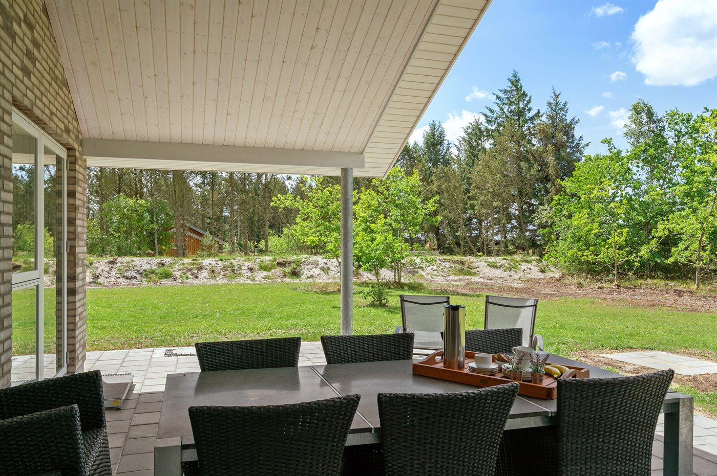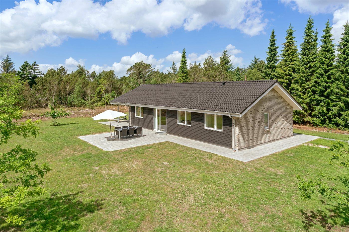 Modern vakantiehuis vlak bij zee met overdekt terras en ruime tuin in Jerup, Denemarken.