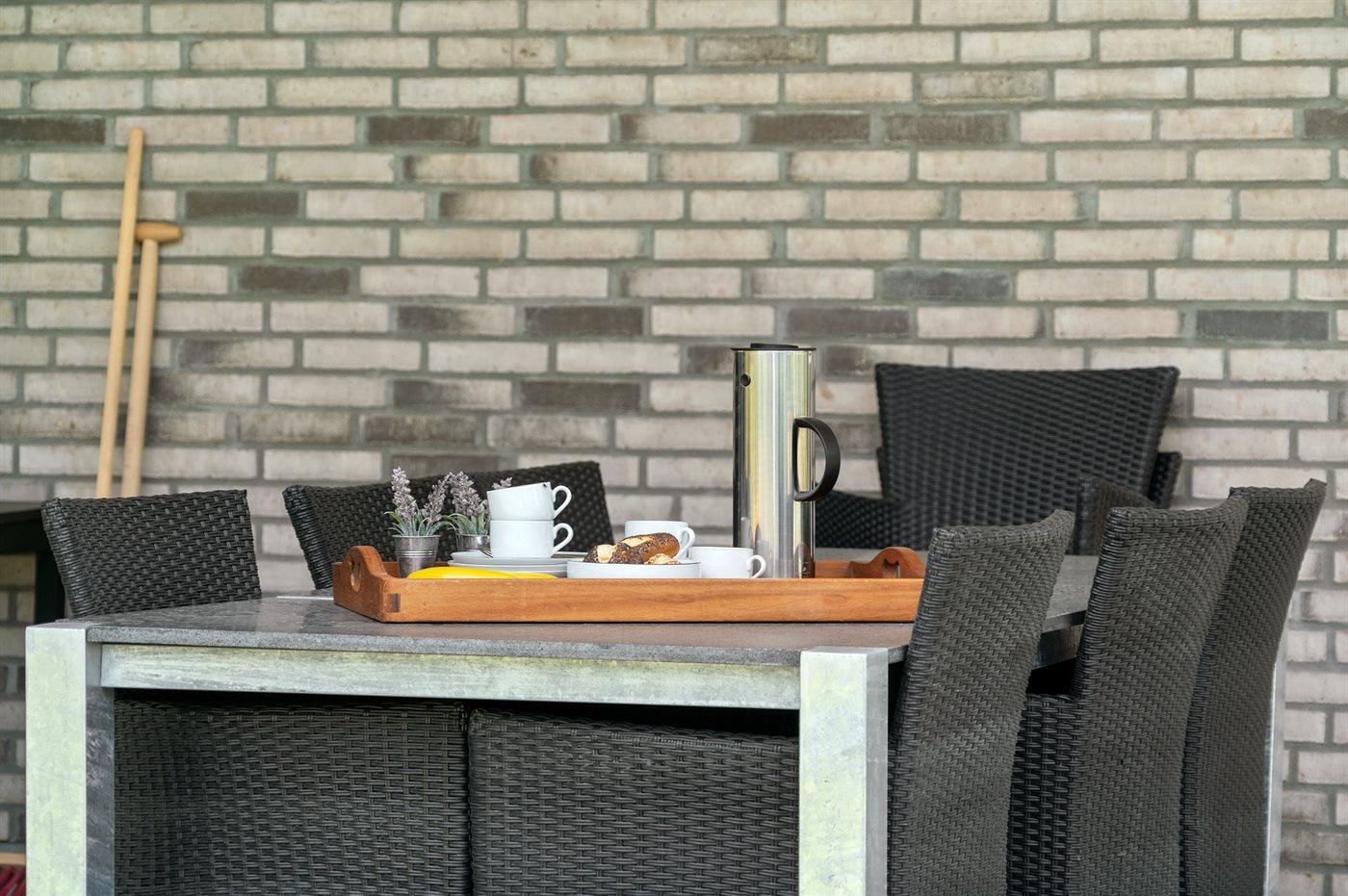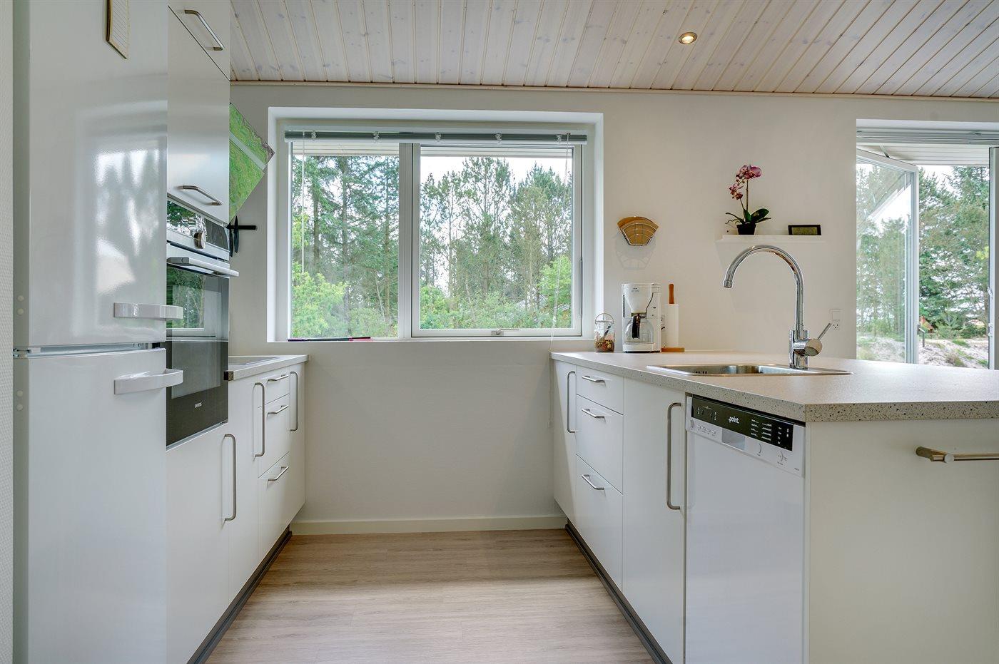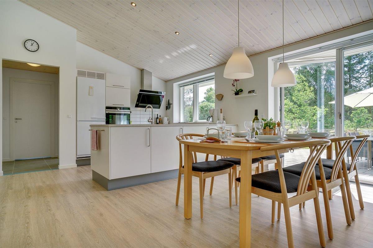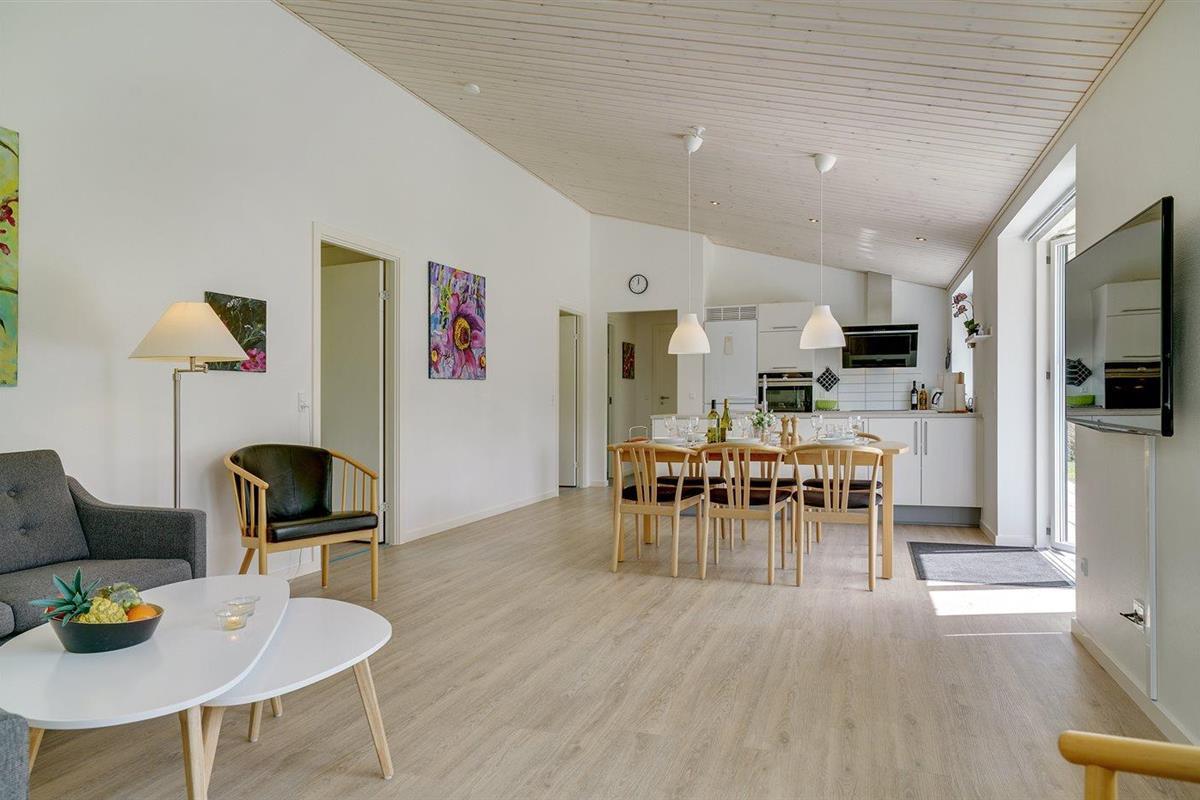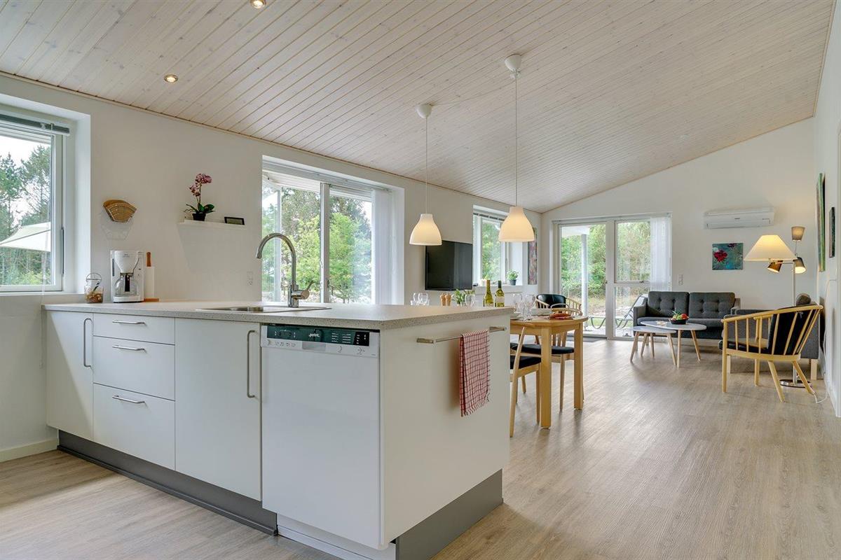 Modern vakantiehuis vlak bij zee met overdekt terras en ruime tuin in Jerup, Denemarken.