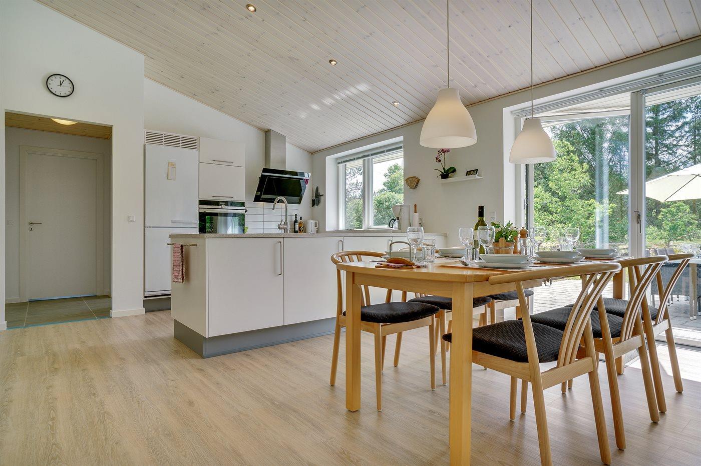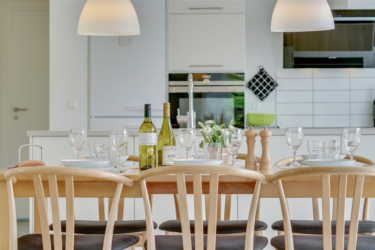 De keuken is uitgerust met koelkast Er is 4 inductiekookplaten, heteluchtoven, magnetron en vaatwasser.