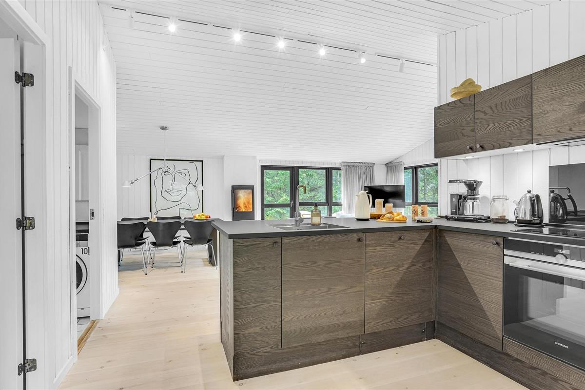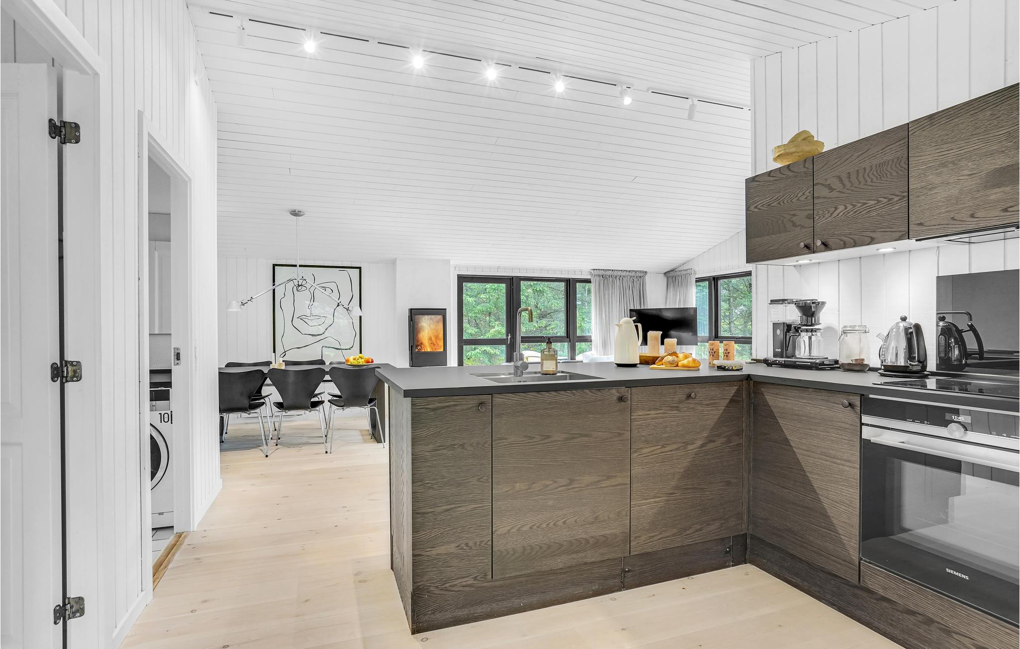 Ten zuiden van Skagen en dicht bij het gezellige vissersdorp Ålbæk ligt dit vakantiehuis op een prachtig terrein met activiteitenmogelijkheden voor het hele gezin. Het keukengedeelte staat in verbinding met de woonkamer, die met goede meubels is ingericht. Dit maakt het huis geschikt voor 2 gezinnen. De badkamer heeft zowel een whirlpool als een sauna.