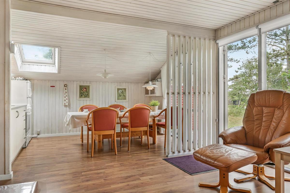 Dit aantrekkelijke vakantiehuis met sauna wacht op je op een afgelegen natuurgrondstuk ten zuiden van Ålbæk. Het huis heeft een lichte en vriendelijke sfeer en ligt op slechts een korte wandeling van het prachtige strand. Er is veel ruimte voor gezelligheid, quizzen, samen koken en nog veel meer. Gebruik de open woonkamer als centraal ontmoetingspunt voor de familie.