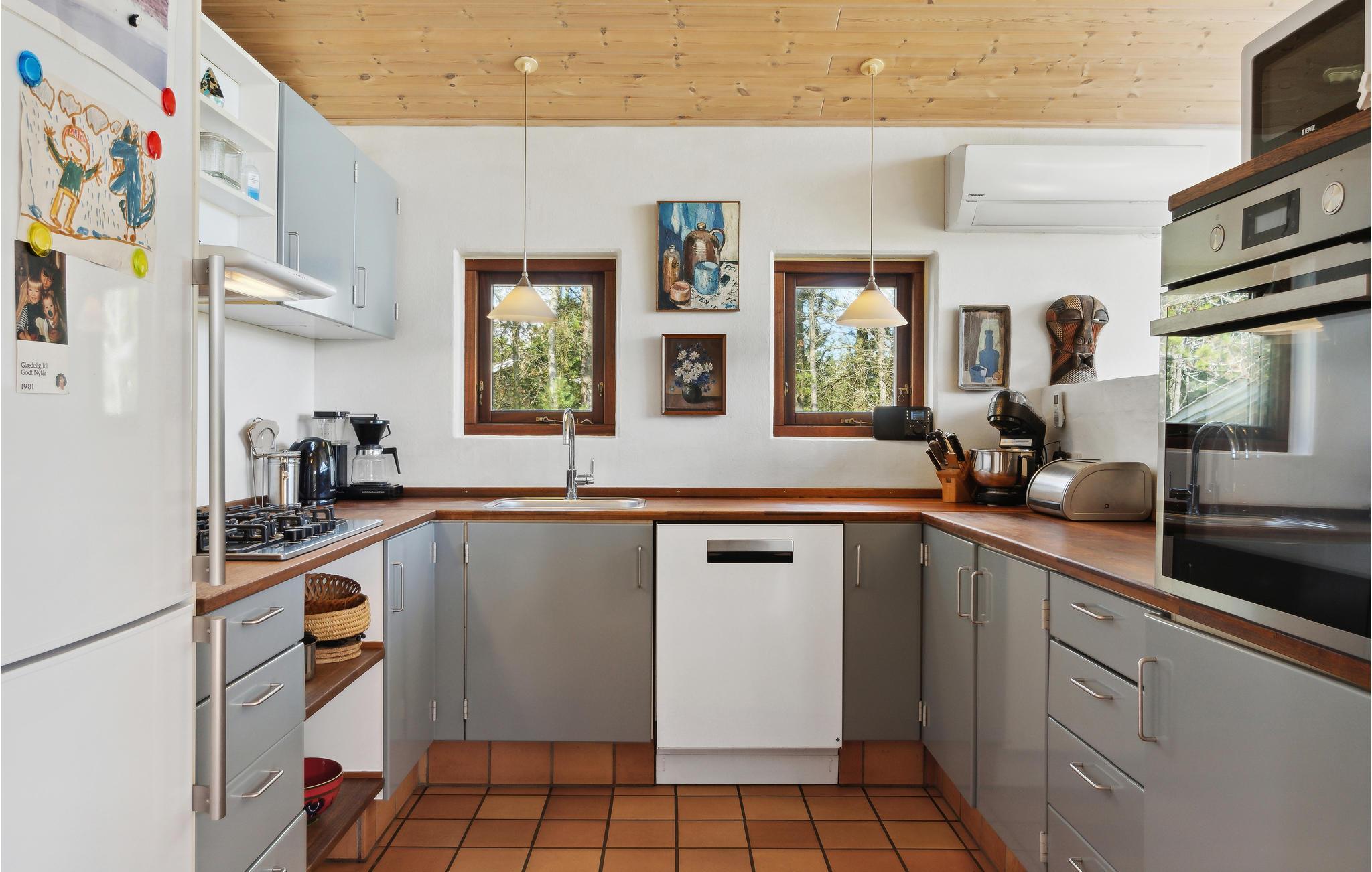 Ontsnap aan het dagelijkse leven en ontspan in dit prachtige huis met een prachtig uitzicht op het duinlandschap en het blauw van het Kattegat. Dankzij de grote ramen kun je tijdens alle activiteiten in het woongedeelte genieten van dit unieke panorama. De individuele inrichting wordt gekenmerkt door een rustieke touch en maakt het gemakkelijk voor je om je hier vanaf de eerste dag thuis te voelen. Na een heerlijke vakantiedag kun je neerstrijken in de zithoek, je favoriete serie streamen of gewoon nog lang napraten terwijl de vlammen knetteren in de houtkachel.