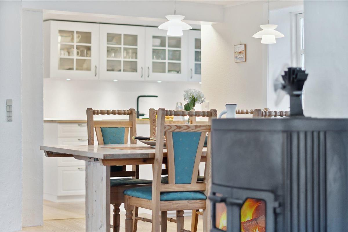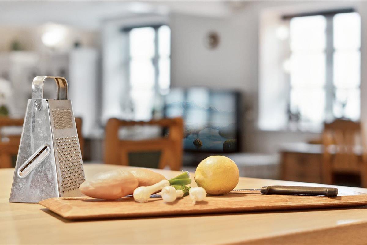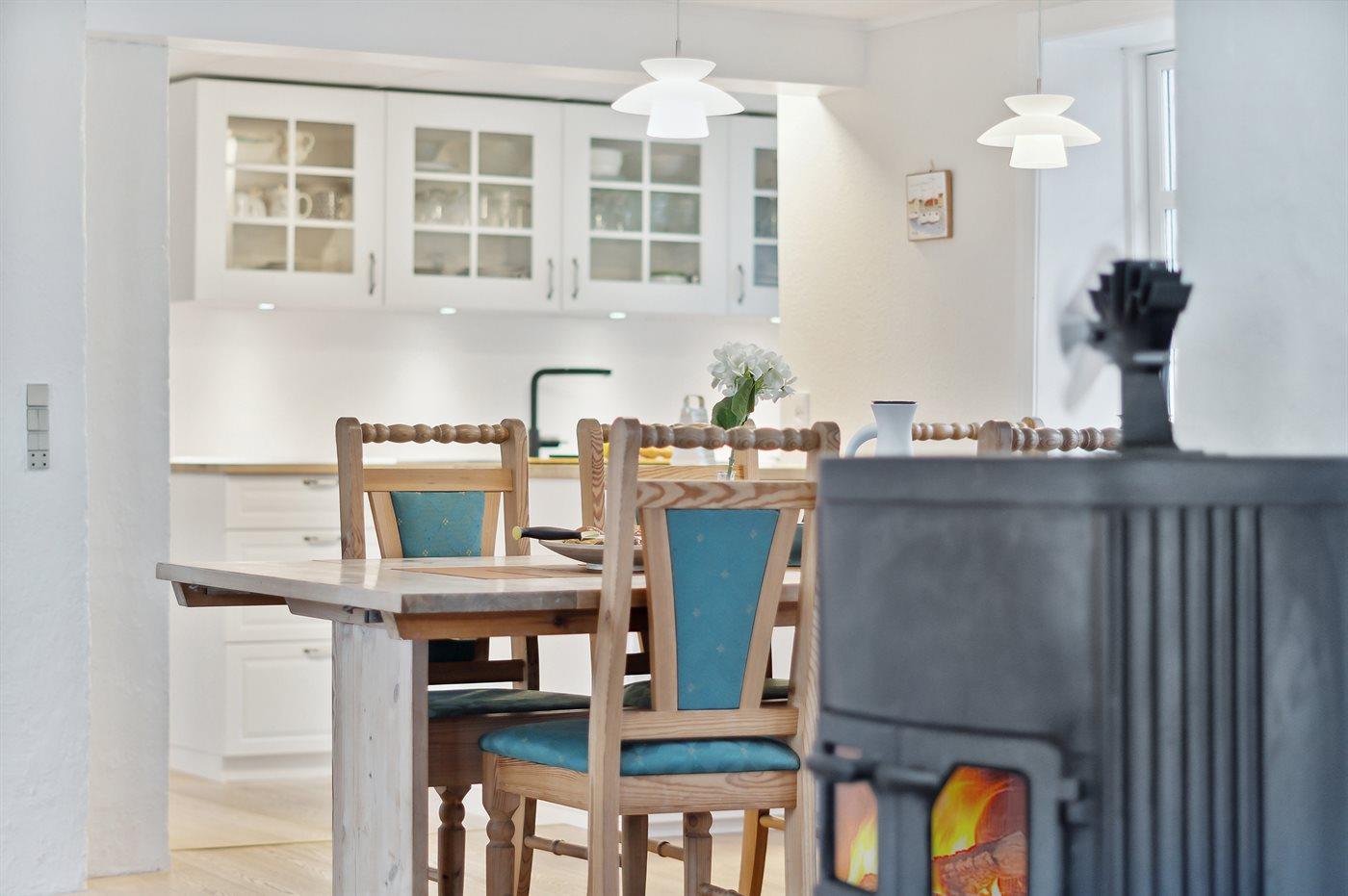 De keuken is uitgerust met koelkast Er is 4 inductiekookplaten, heteluchtoven, magnetron en vaatwasser.