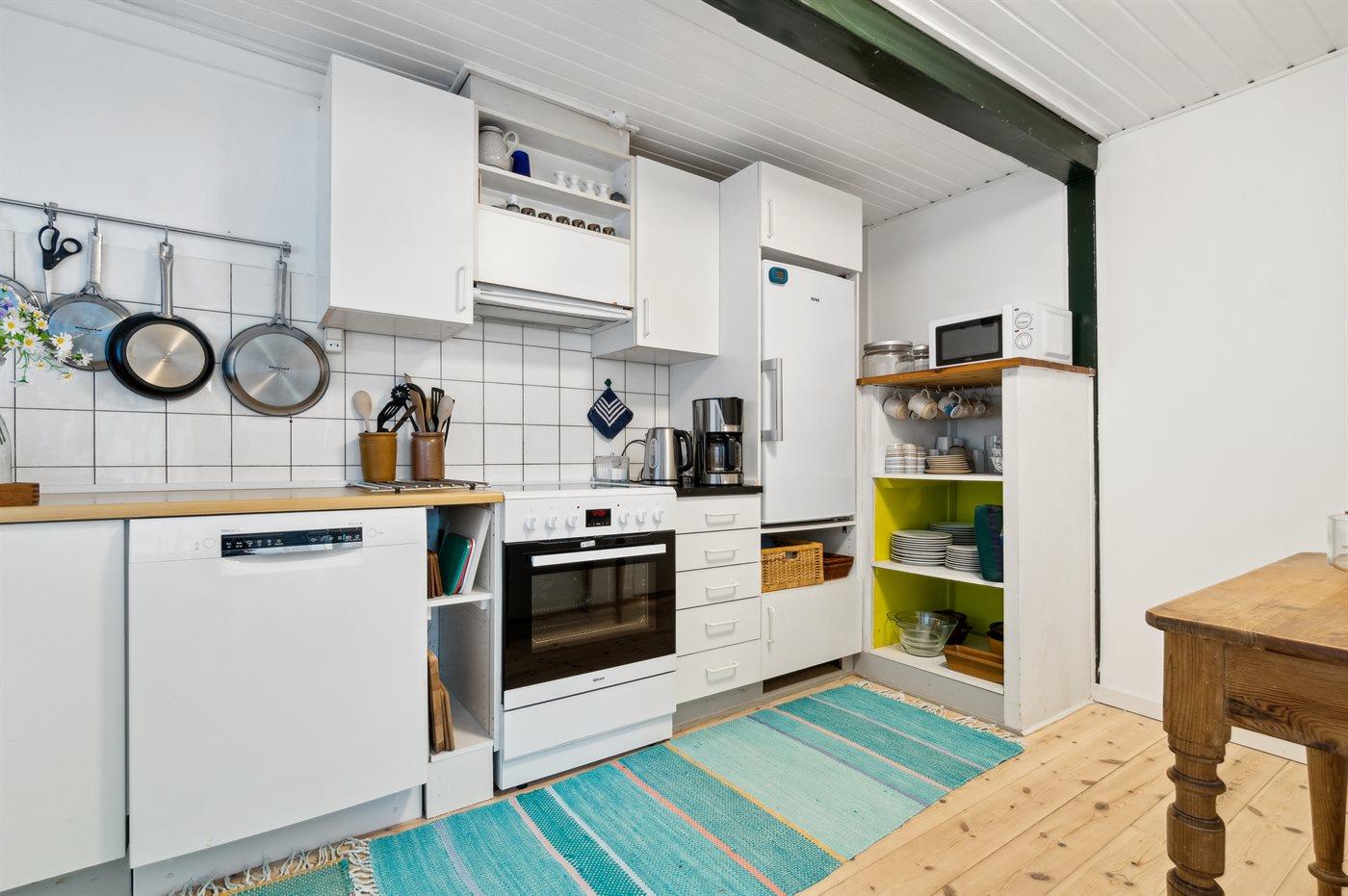 De keuken is uitgerust met koelkast Er is 4 elektrische kookplaten, heteluchtoven, magnetron en vaatwasser.