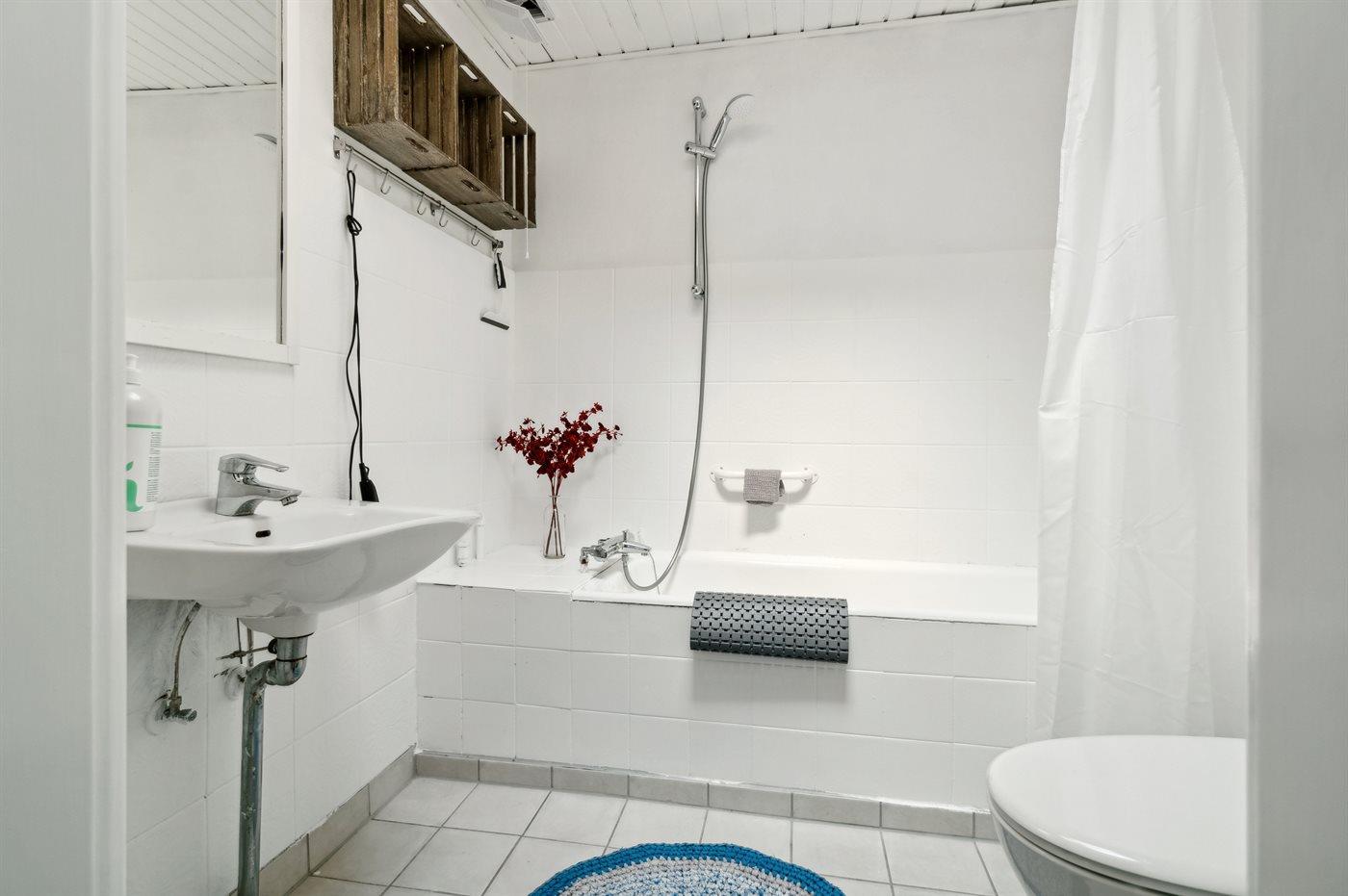Er is 1 badkamer met douche en 1 toilet.. Er is vloerverwarming in 1 badkamer.. Badkuip.