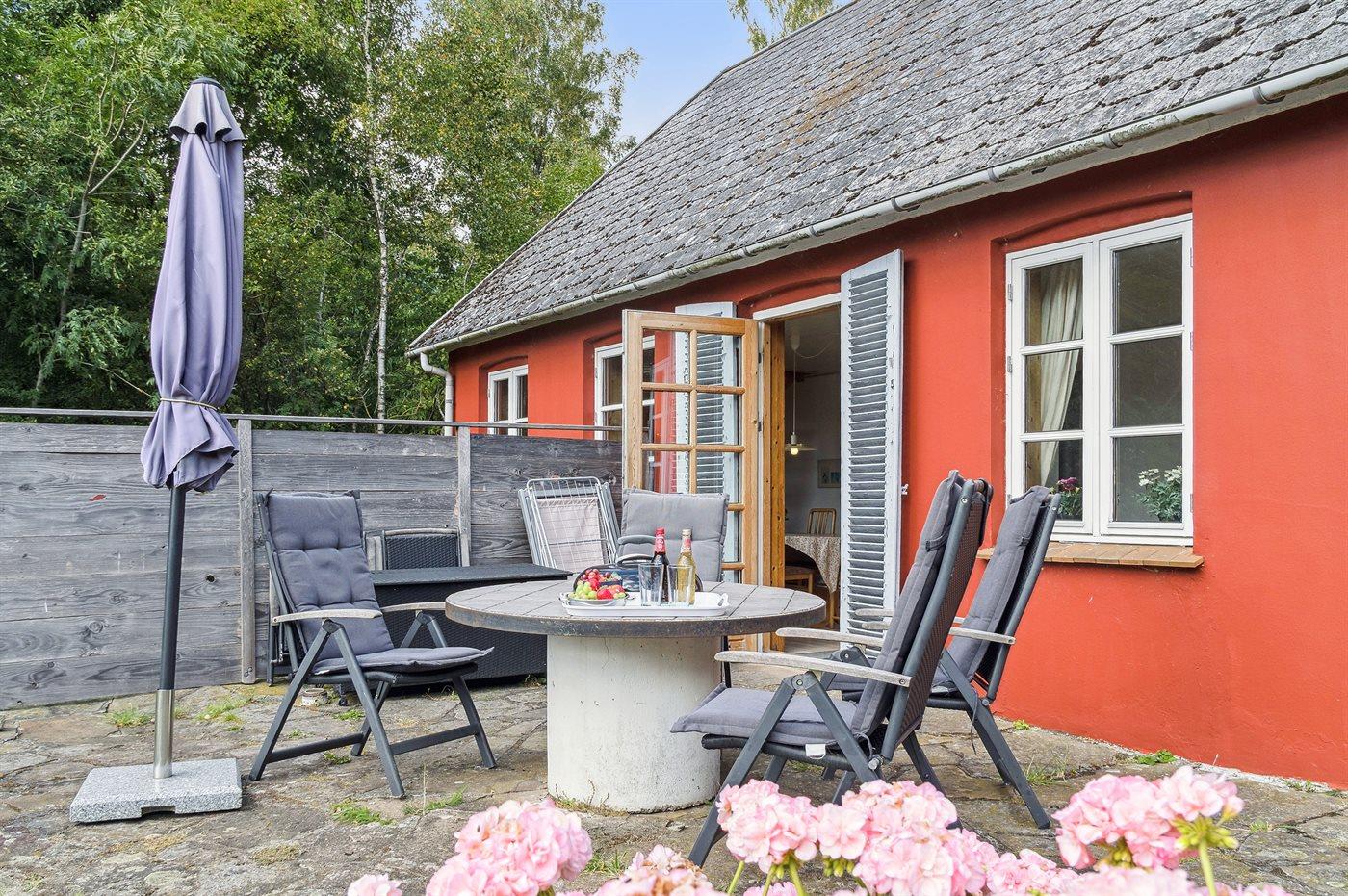 Rustig vakantiehuis in Svaneke met 3 slaapkamers, houtkachel en groot bosrijk terrein.