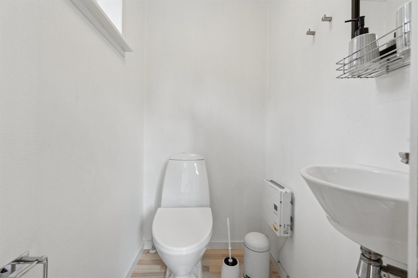 Er is 1 badkamer met douchehok en 2 toiletten, waarvan 1 gastentoilet. Er is vloerverwarming in 1 badkamer.