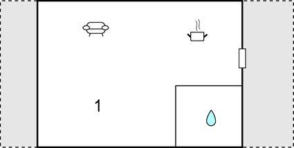 Woonkamer met open keuken - 2 Slaapplaatsen. (2-persoonsbed(den)).