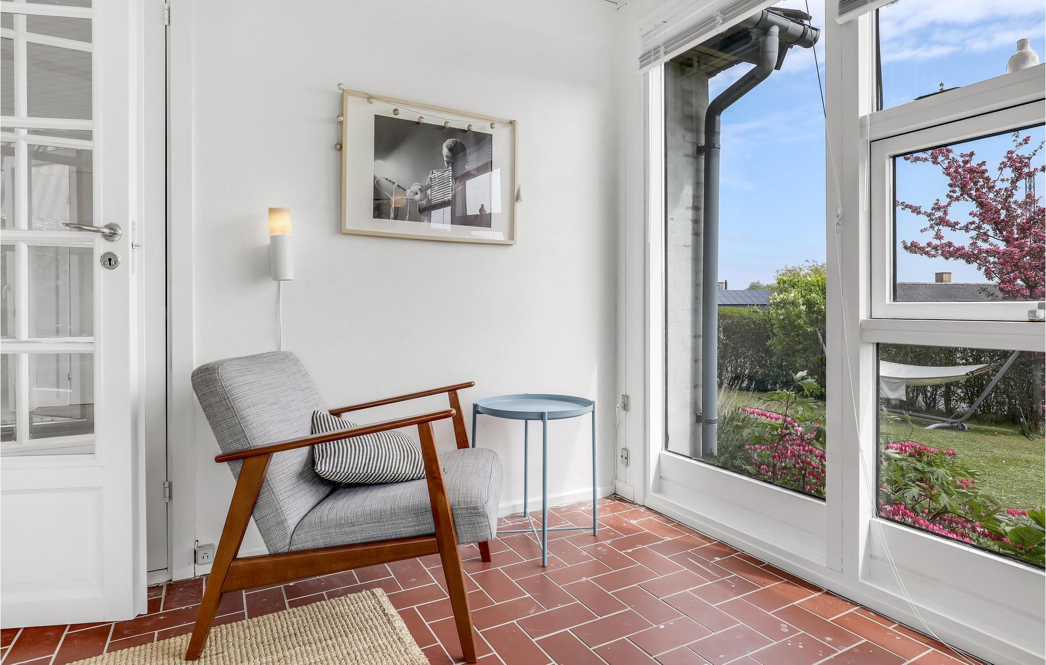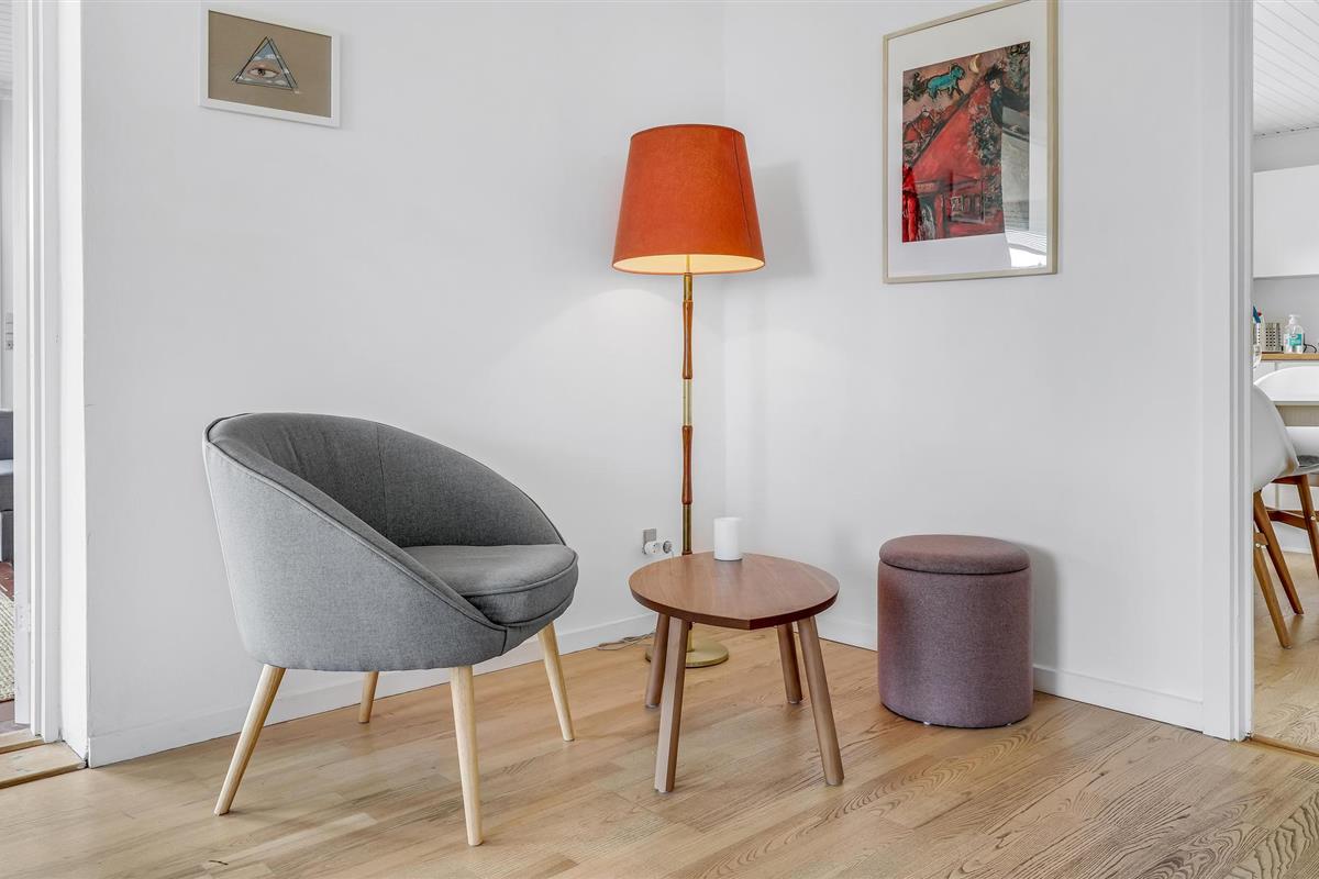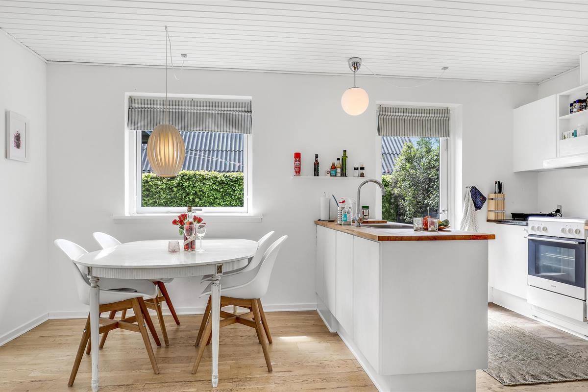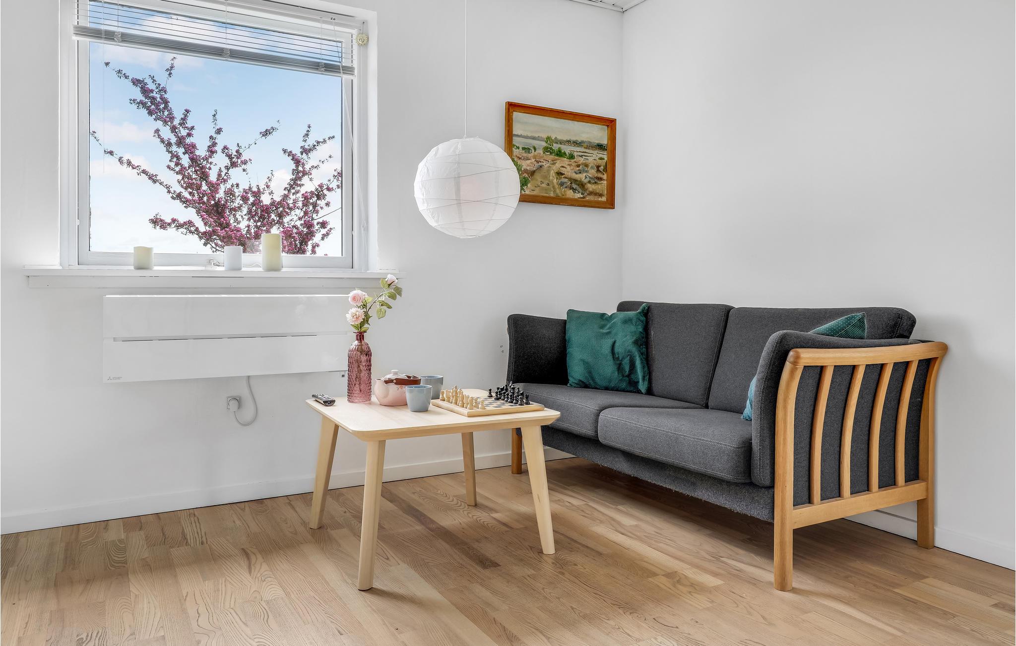 Deze villa met uitzicht op zee ligt in het kleine vissersdorp Årsdale, ca. 3 km ten zuiden van Svaneke. Het interieur van het huis is ingericht in lichte kleuren.