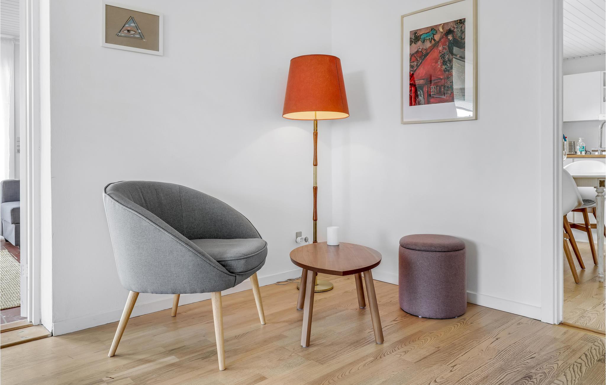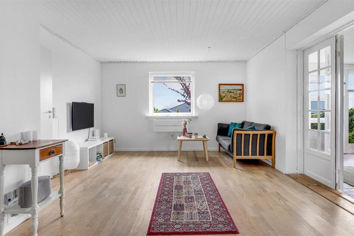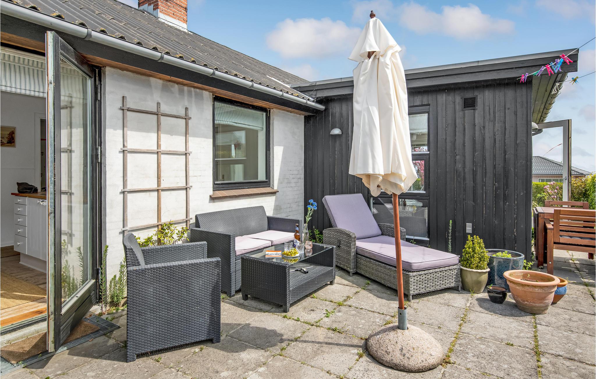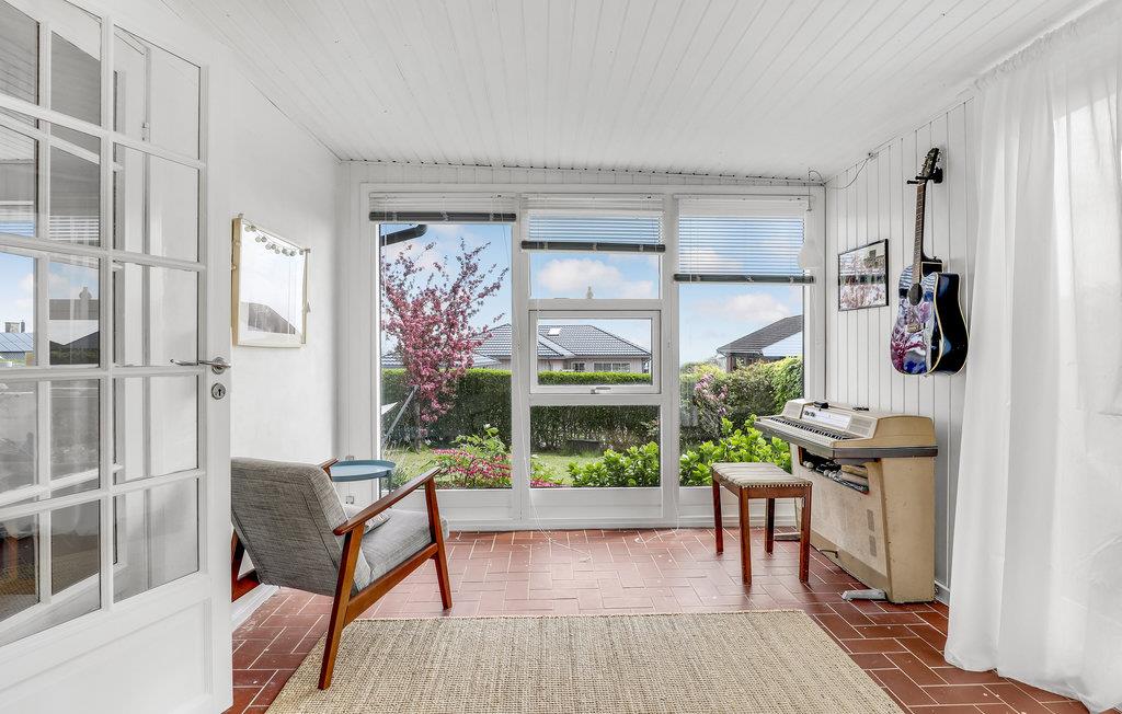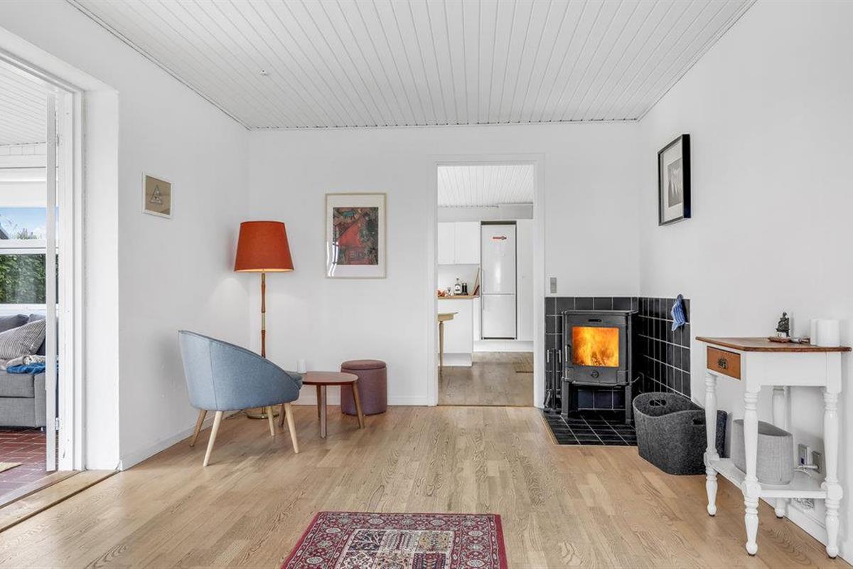 Deze villa met uitzicht op zee ligt in het kleine vissersdorp Årsdale, ca. 3 km ten zuiden van Svaneke. Het interieur van het huis is ingericht in lichte kleuren.