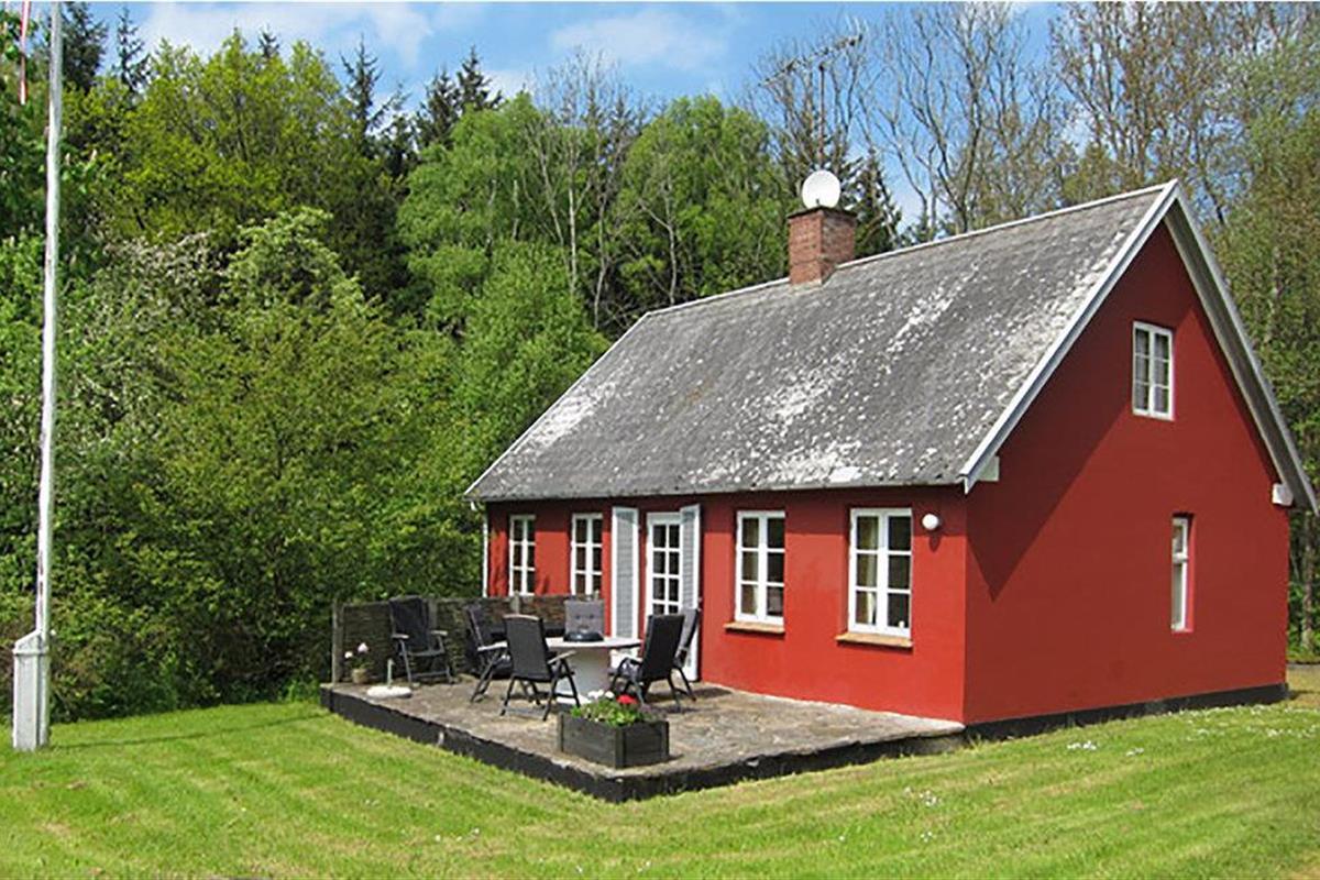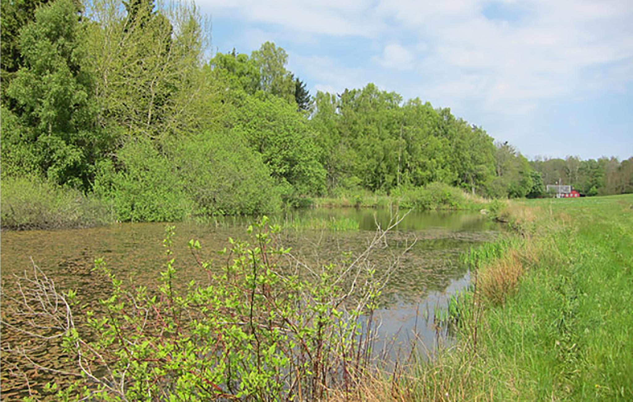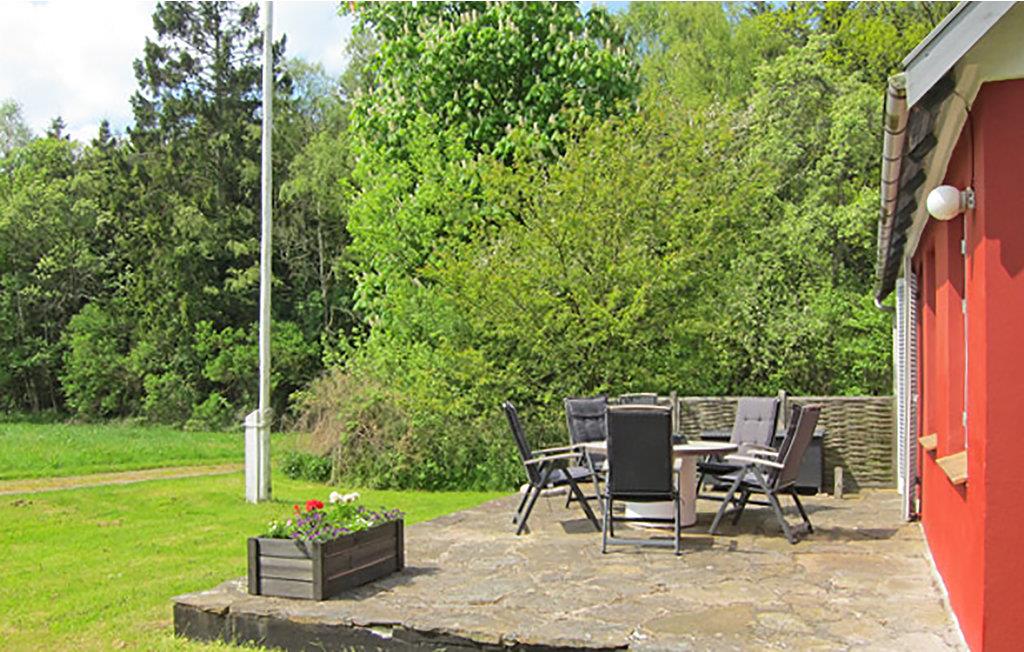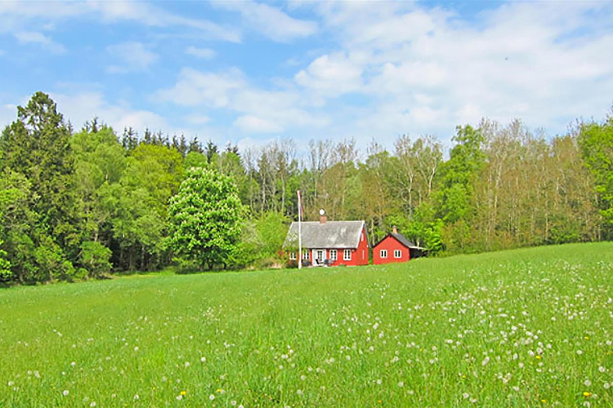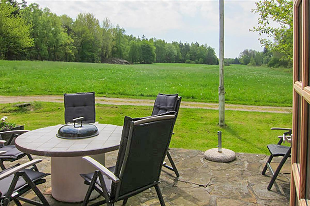 Rustig gelegen landhuis nabij Svaneke met privé visvijver, houtkachel en terras in een groene omgeving.