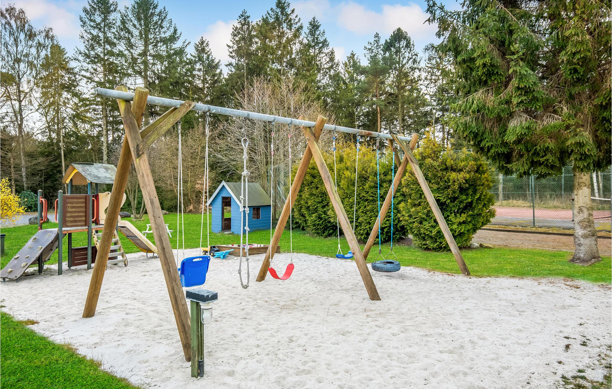 Welkom bij Dueodde Feriepark in het zuidoosten van het zonnige eiland Bornholm. Gelegen op een bosrijk terrein vol groen, voelt u direct de vertraagde, ontspannen vakantiesfeer. Ontdek de verschillende vrijetijdsactiviteiten op het parkterrein: Begin je dagen, afhankelijk van de tijd van het jaar, met een duik in het binnen- of buitenzwembad, een bezoekje aan de fitnessapparatuur, een partijtje tafeltennis, tennis of jeu de boules. Overdag zullen de kinderen met je willen spelen in de speeltuin, en 's avonds kun je ontspannen in de sauna bij het binnenzwembad en nagenieten van weer een actieve dag.