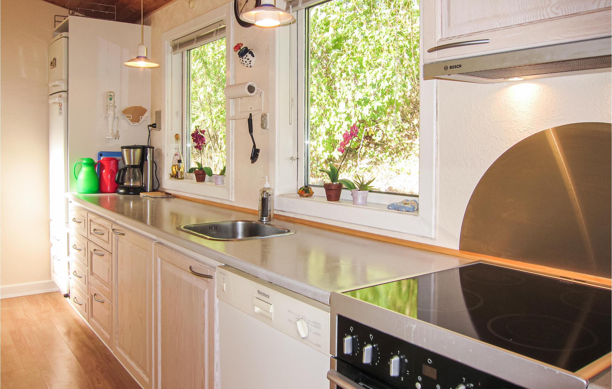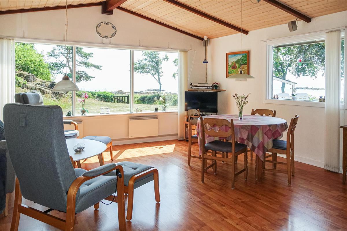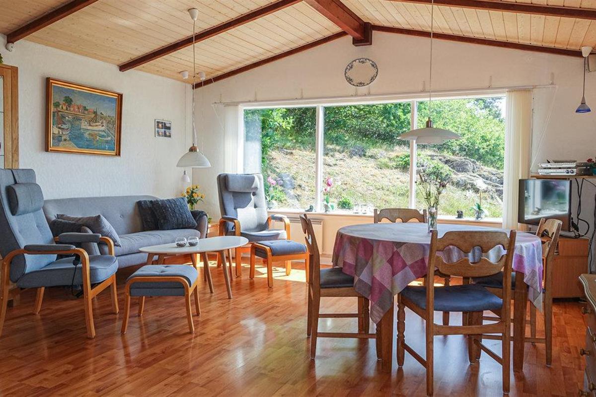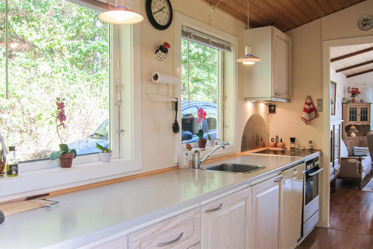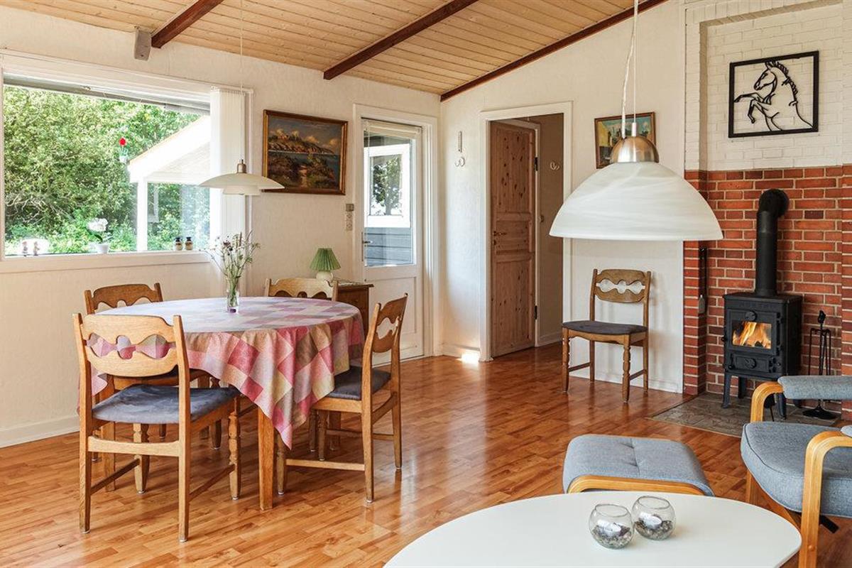 Het huis is goed uitgerust met twee slaapkamers - merk op dat de kleinere kamer alleen geschikt is voor kinderen. De woonkamer heeft een warme en gezellige sfeer, mede gecreëerd door vele mooie elementen in de vloer, het plafond en de gemetselde houtkachelruimte. In de keuken heeft u meer dan genoeg ruimte om te koken.