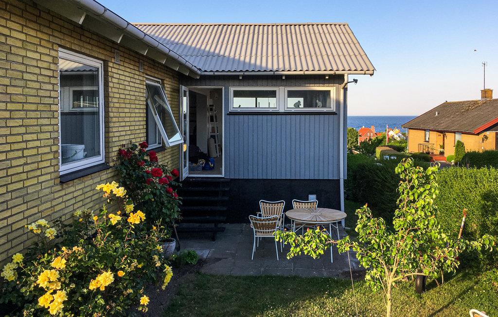 Vanuit de woonkamer heb je toegang tot een fantastisch houten terras met uitzicht op zee, tuinmeubilair en een grote parasol. Een ander terras met middagzon ligt aan de andere kant van het huis. Je kunt de avond afsluiten op het idyllische terras op de binnenplaats, waar je kunt genieten van je avondmaaltijd op het overdekte terras met uitzicht op de Baltische Zee. Hier vind je ook de gasbarbecue.