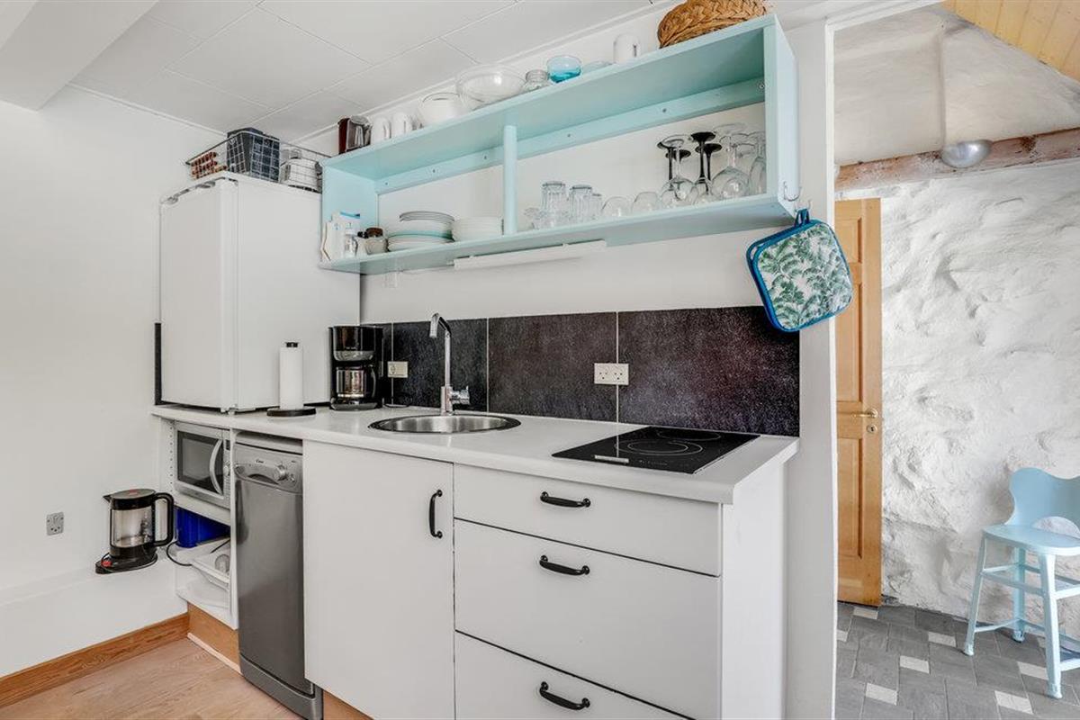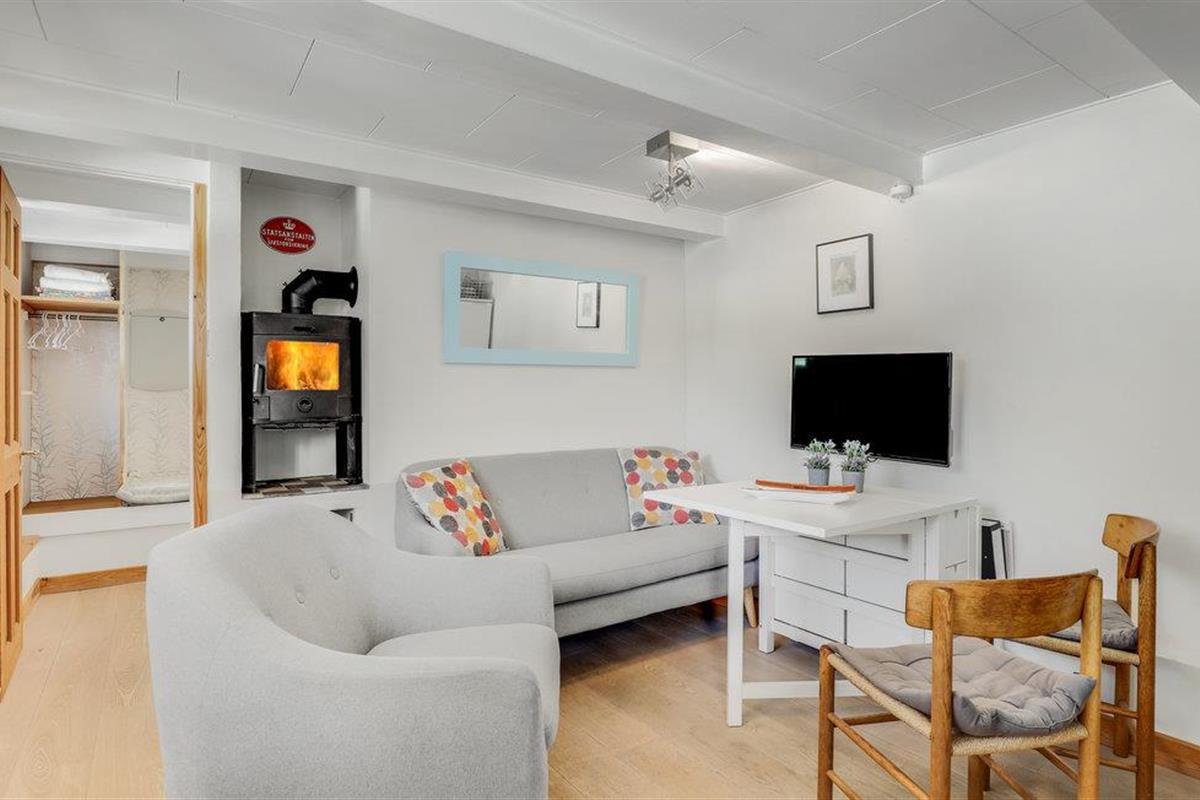 Het huis is liefdevol en charmant ingericht en biedt ruimte aan een klein gezin met twee volwassenen en een kind. Verheug je op de gezellige woonkamer, waar je ook de keuken direct naast vindt. Hier kun je ontspannen na een actieve dag in de natuur of een wandeling door de stad, en de kachel aansteken als het weer wat koeler is.