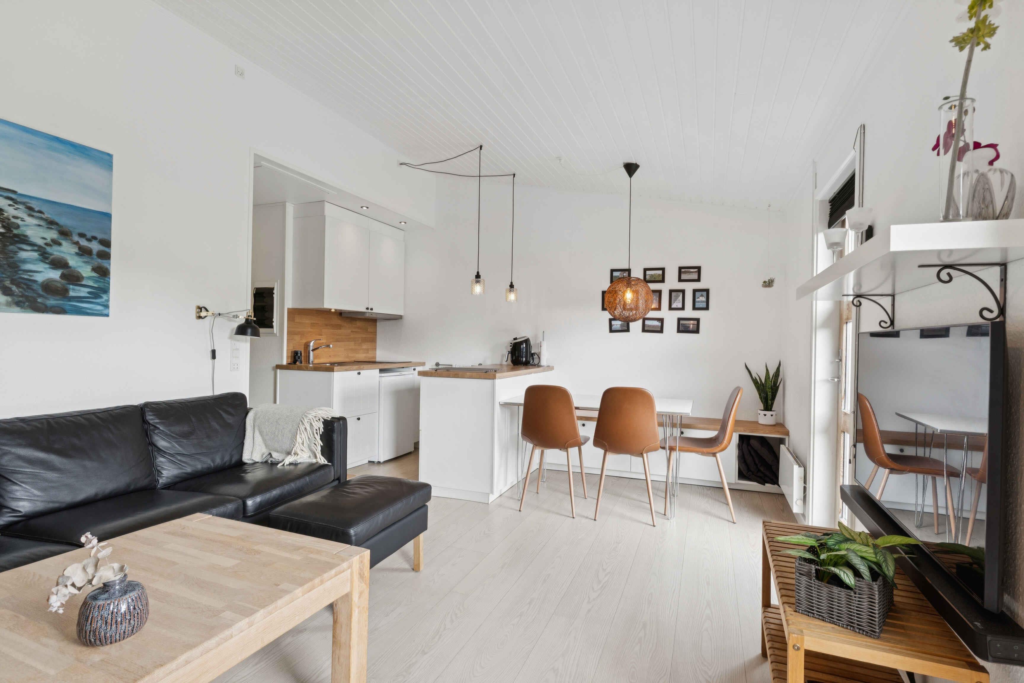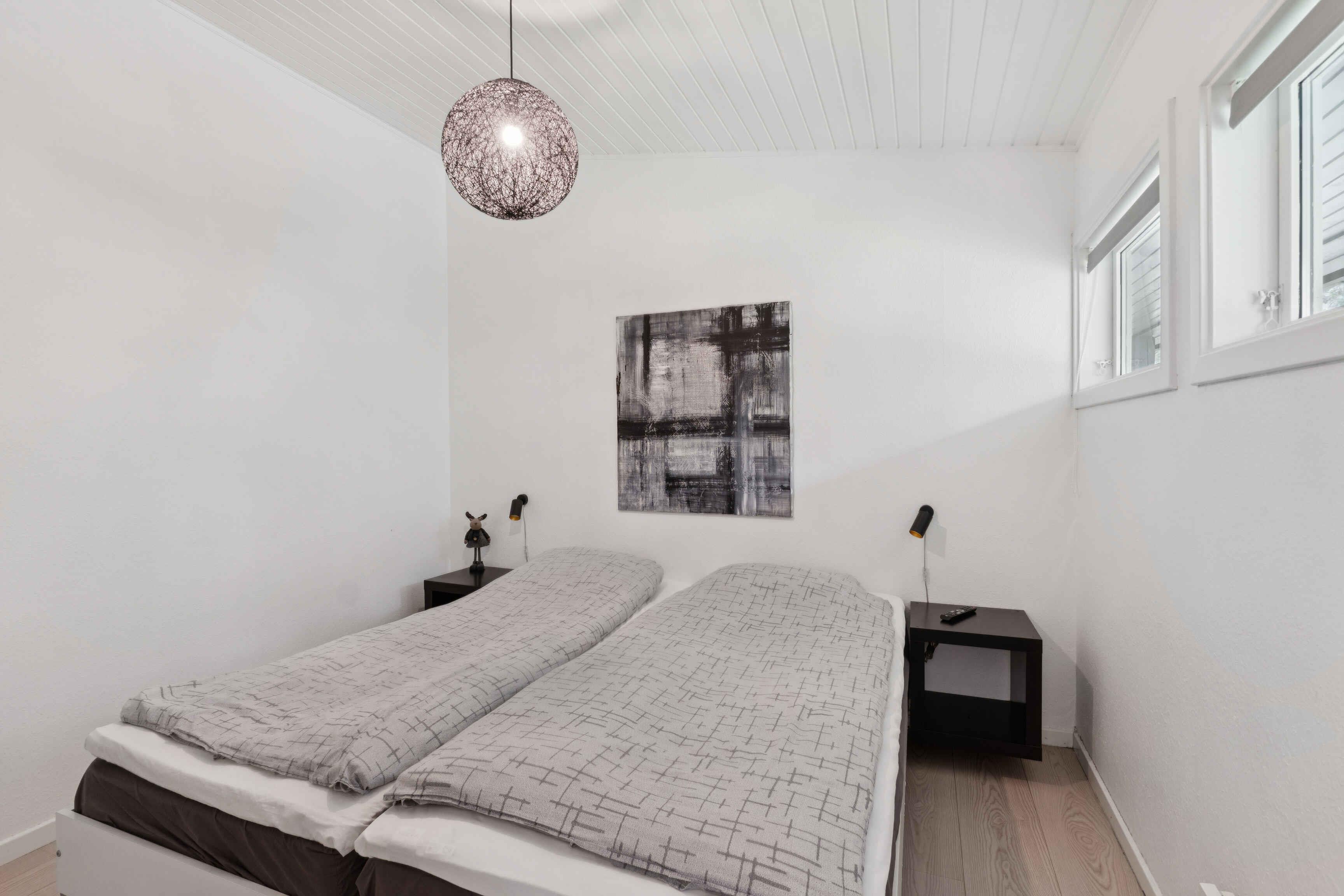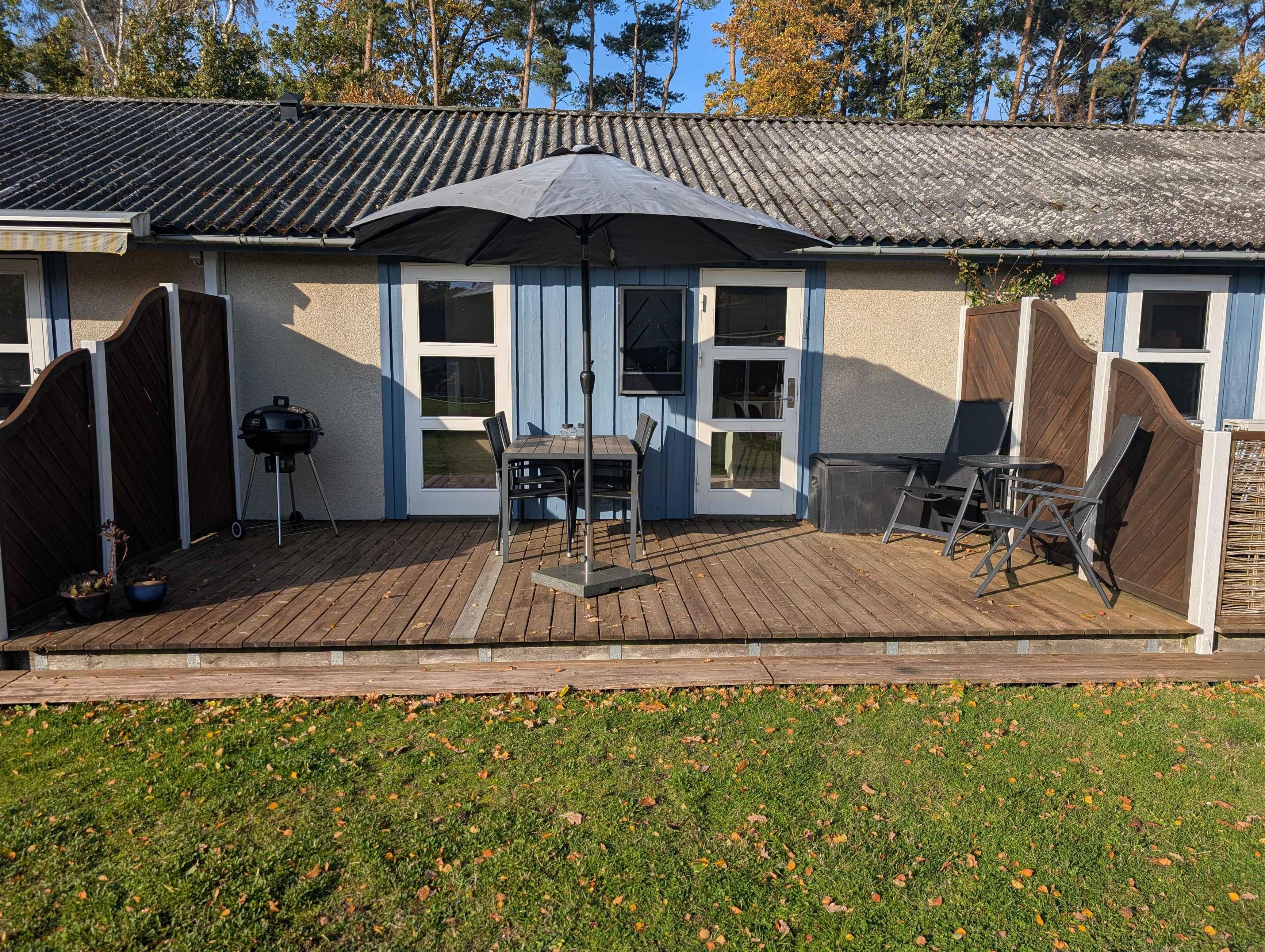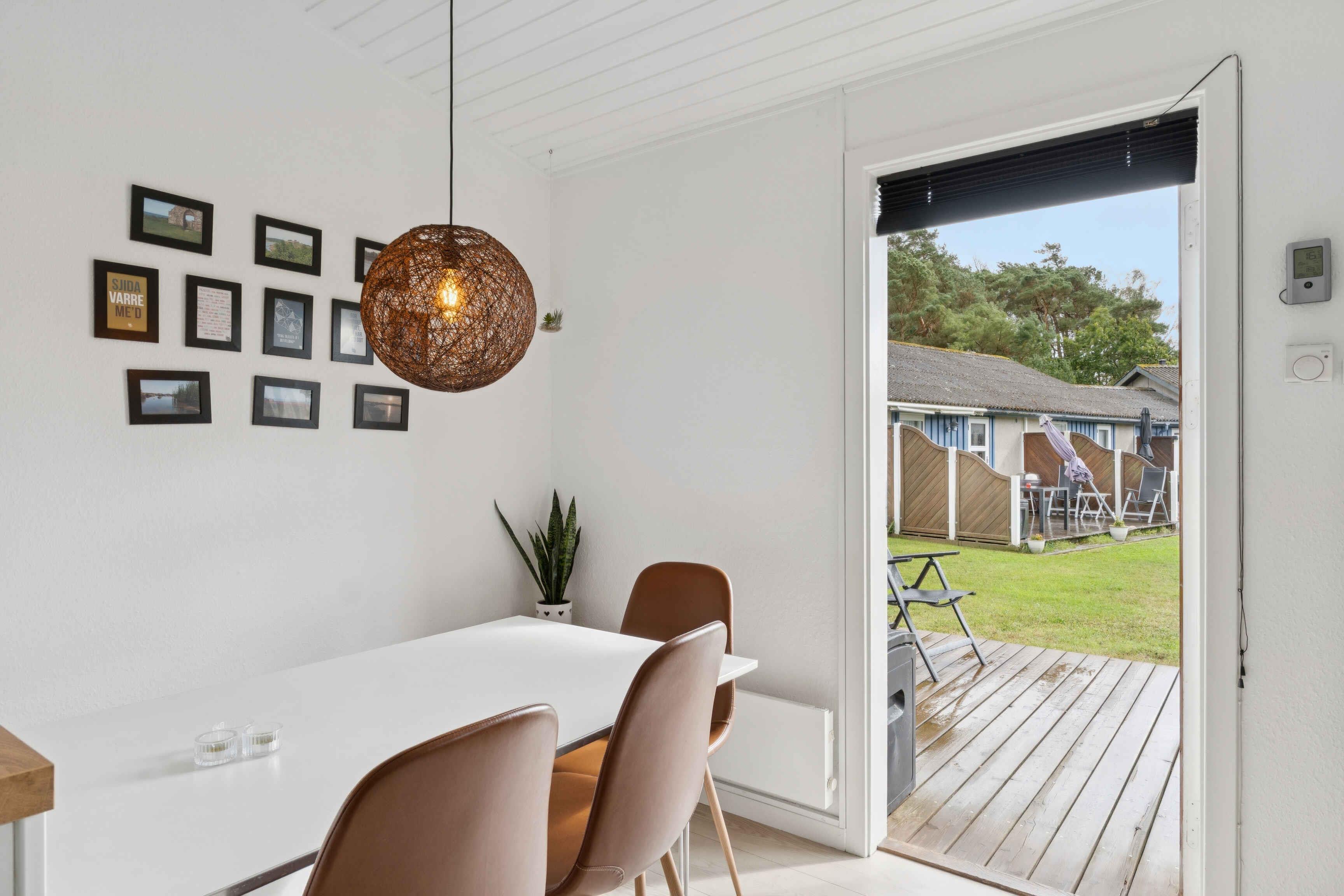 Het appartement ligt in een rustige, natuurlijke omgeving vlak bij Dueodde Strand – een van Bornholms populairste zandstranden. Slechts 200 meter van het water, ideaal om te zwemmen of langs de kust te wandelen. Het 42?m² verblijf is geschikt voor vier personen. Er is één slaapkamer met tweepersoonsbed en een dubbele slaapbank in de woonkamer. De inrichting is licht en modern, en de woonkamer opent naar een gemeubileerd terras met barbecue. Als gast hebt u toegang tot de gedeelde voorzieningen van het vakantiepark: binnen- en buitenzwembad, sauna, fitnessruimte, tennisbaan, jeu-de-boulesbaan en speeltuin. Het binnenzwembad is geopend van april tot oktober, het buitenbad in de zomerperiode. De omgeving biedt veel vakantiekansen. Dueodde Strand staat bekend om het witte, zachte zand en ondiep water – ideaal voor kinderen en volwassenen. De duinen nodigen uit tot wandelingen, en in de buurt zijn fietspaden en routes door bos en duinen. Dichtbij gelegen plaatsen als Nexø en Snogebæk bieden restaurants, rookhuizen, lokale winkels en een zomerse sfeer. Ook zijn er ambachtslieden en markten te bezoeken, allemaal dicht bij het appartement. Het appartement is geschikt voor koppels en gezinnen die rust, strandgevoel en goede faciliteiten zoeken. Geen verhuur aan jeugdgroepen, wat een ontspannen sfeer garandeert.