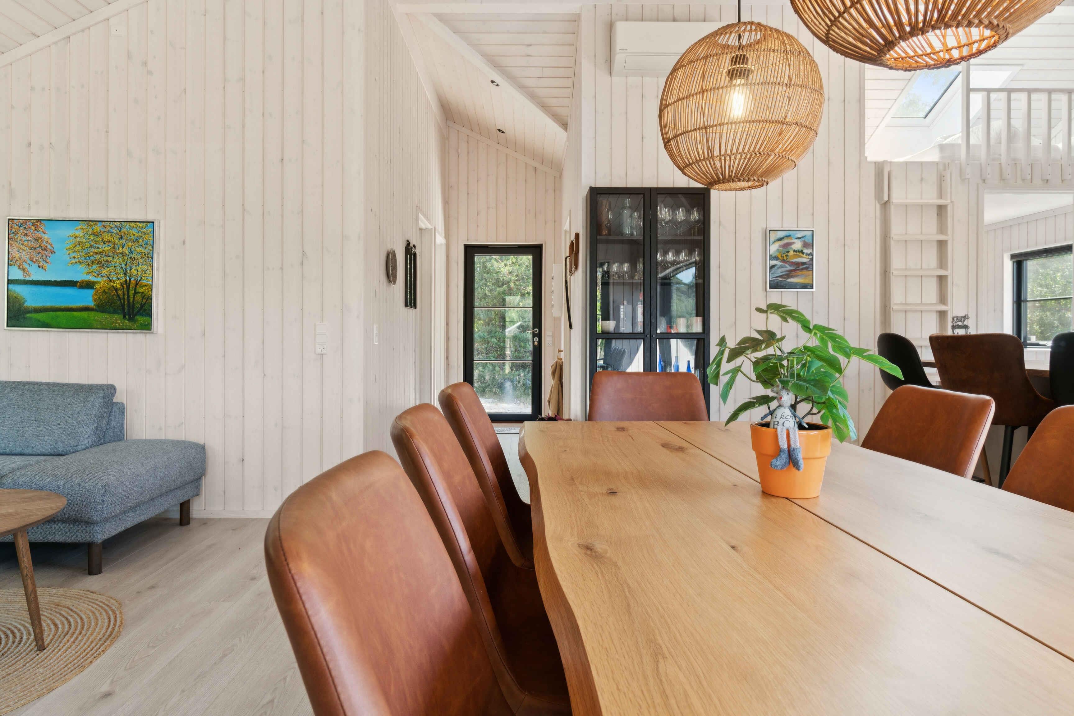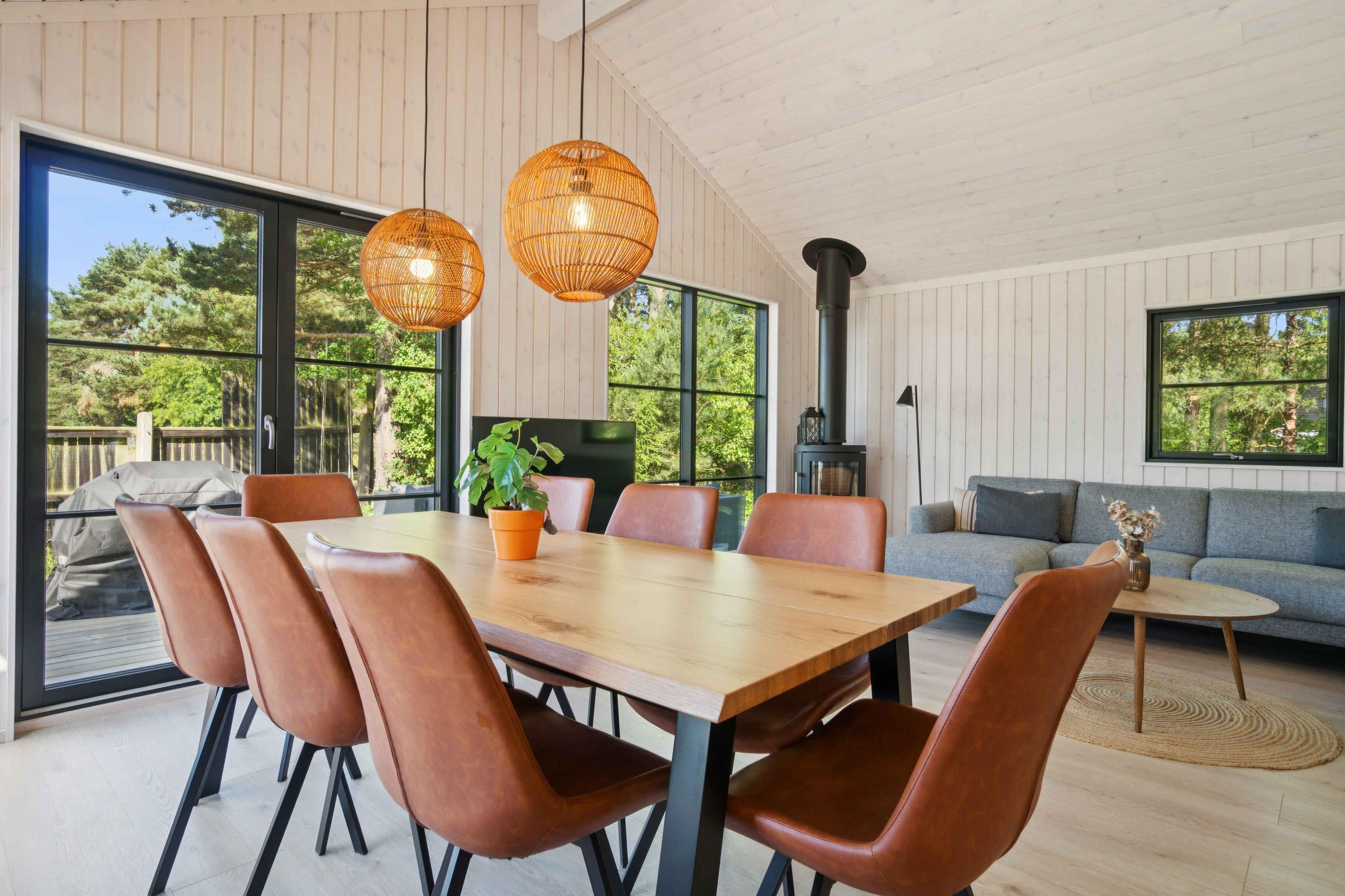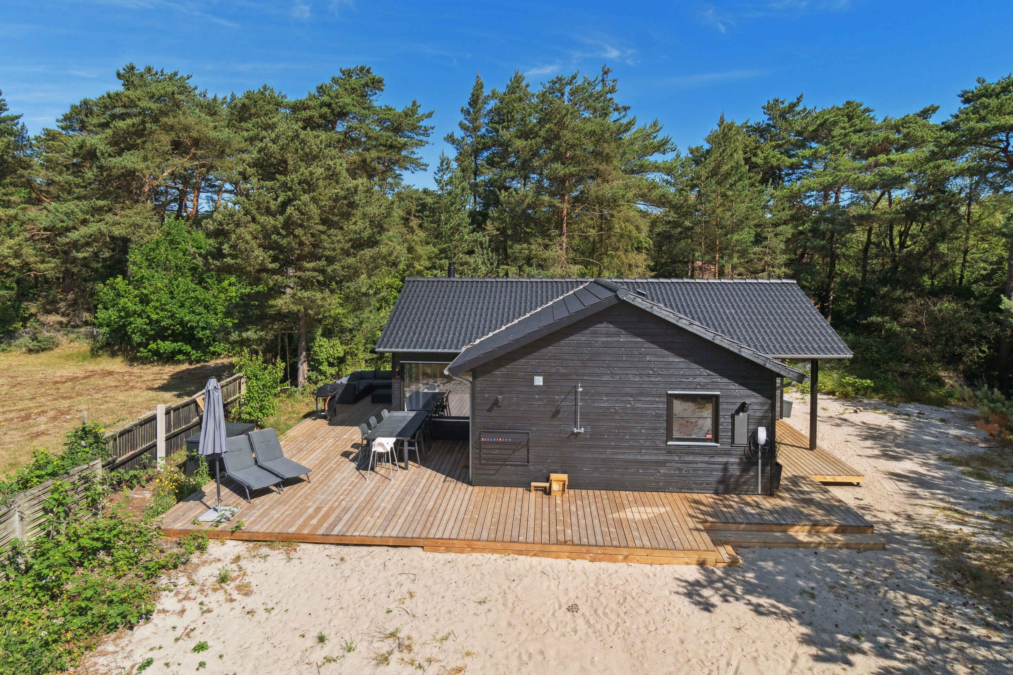 Modern vakantiehuis met groot terras en houtkachel, vlak bij het strand en natuur op Bornholm.
